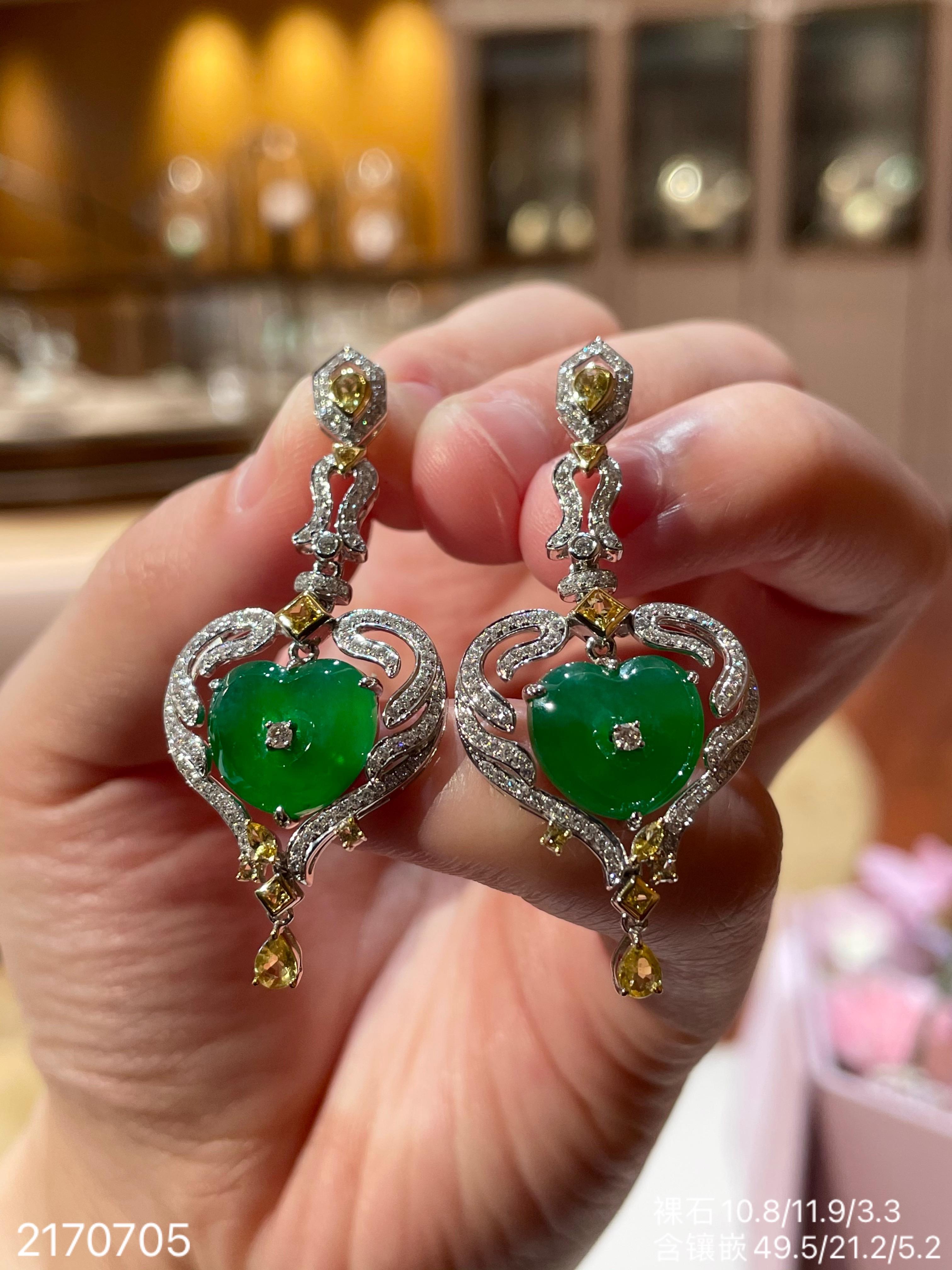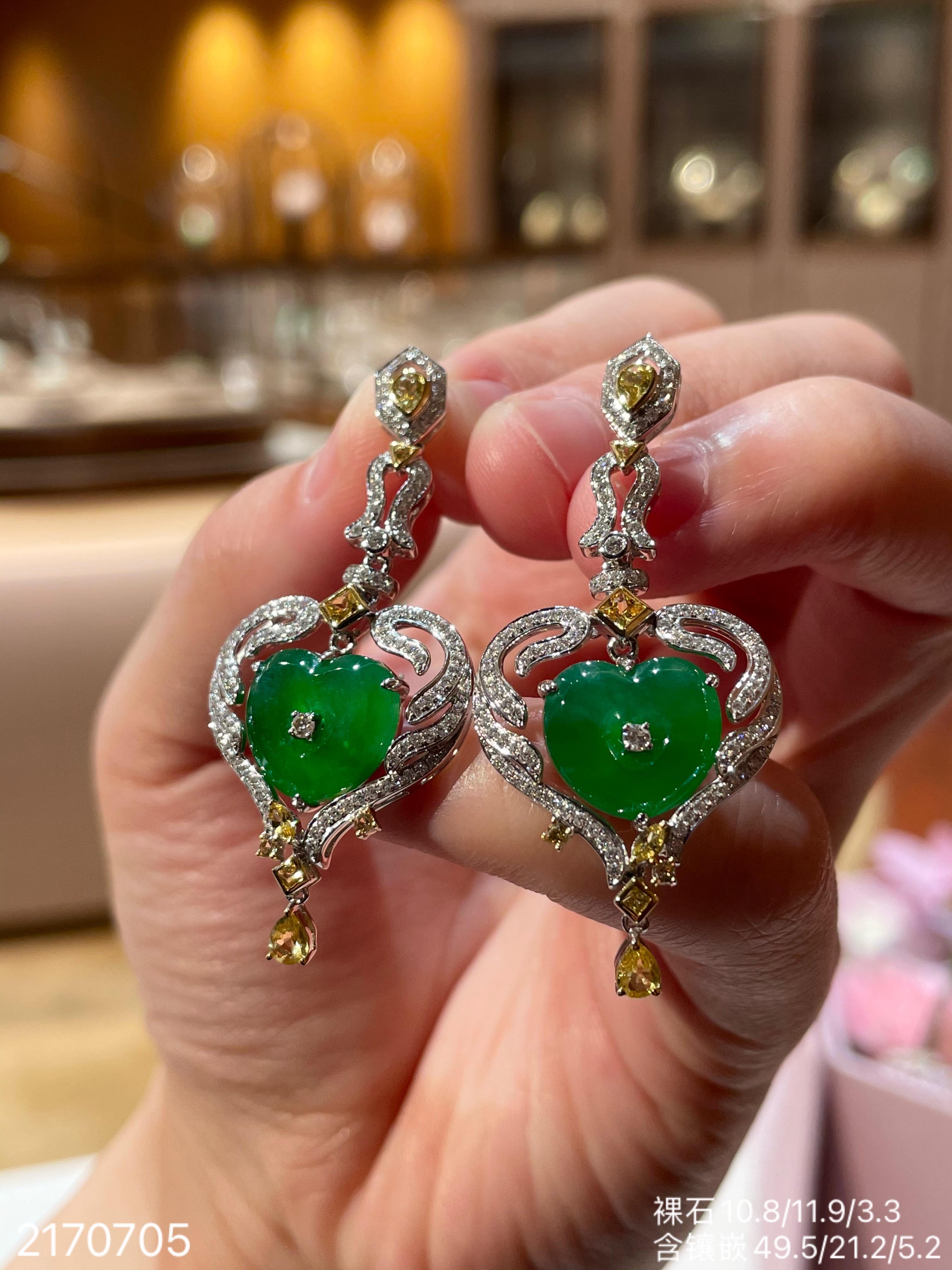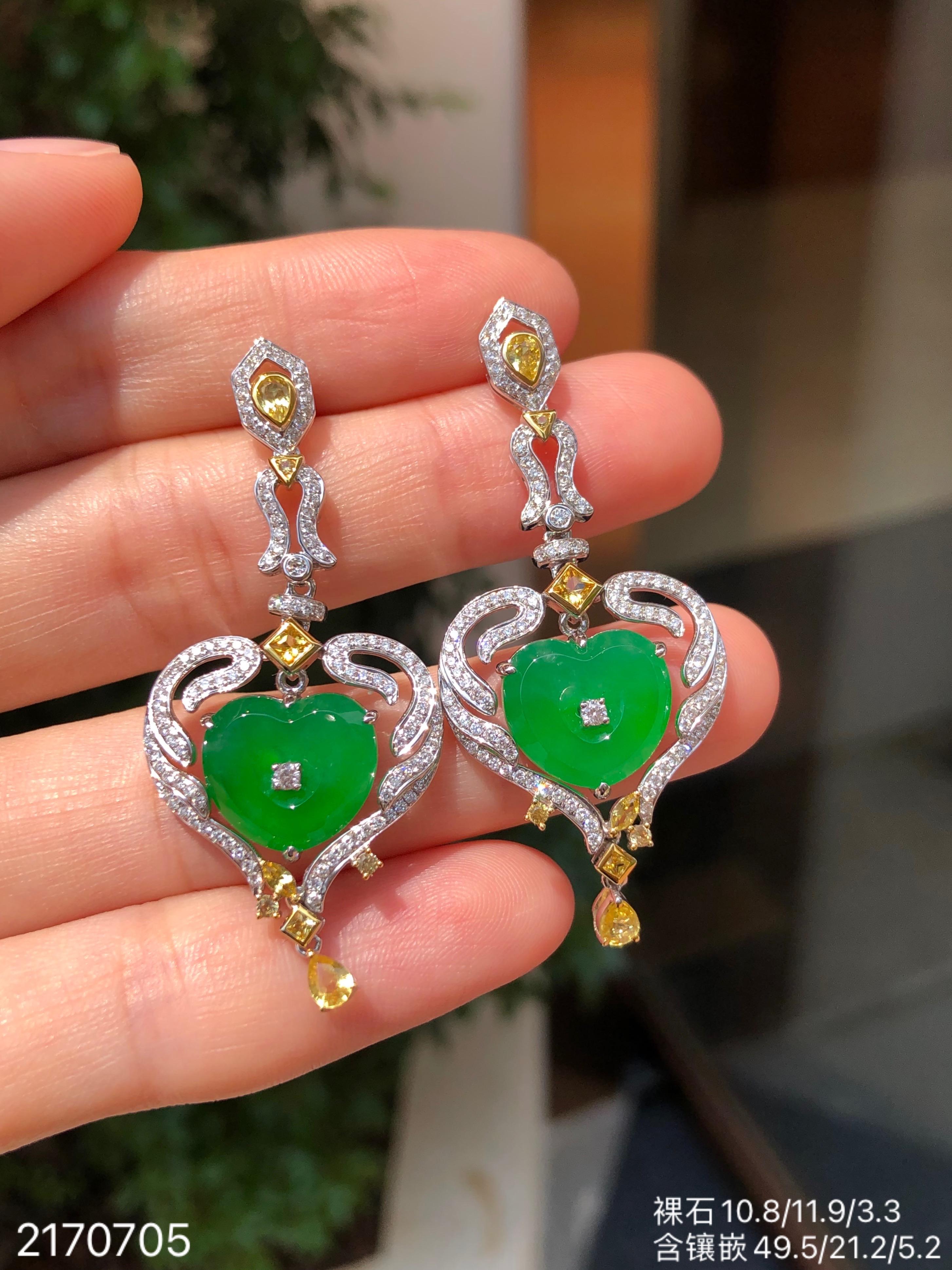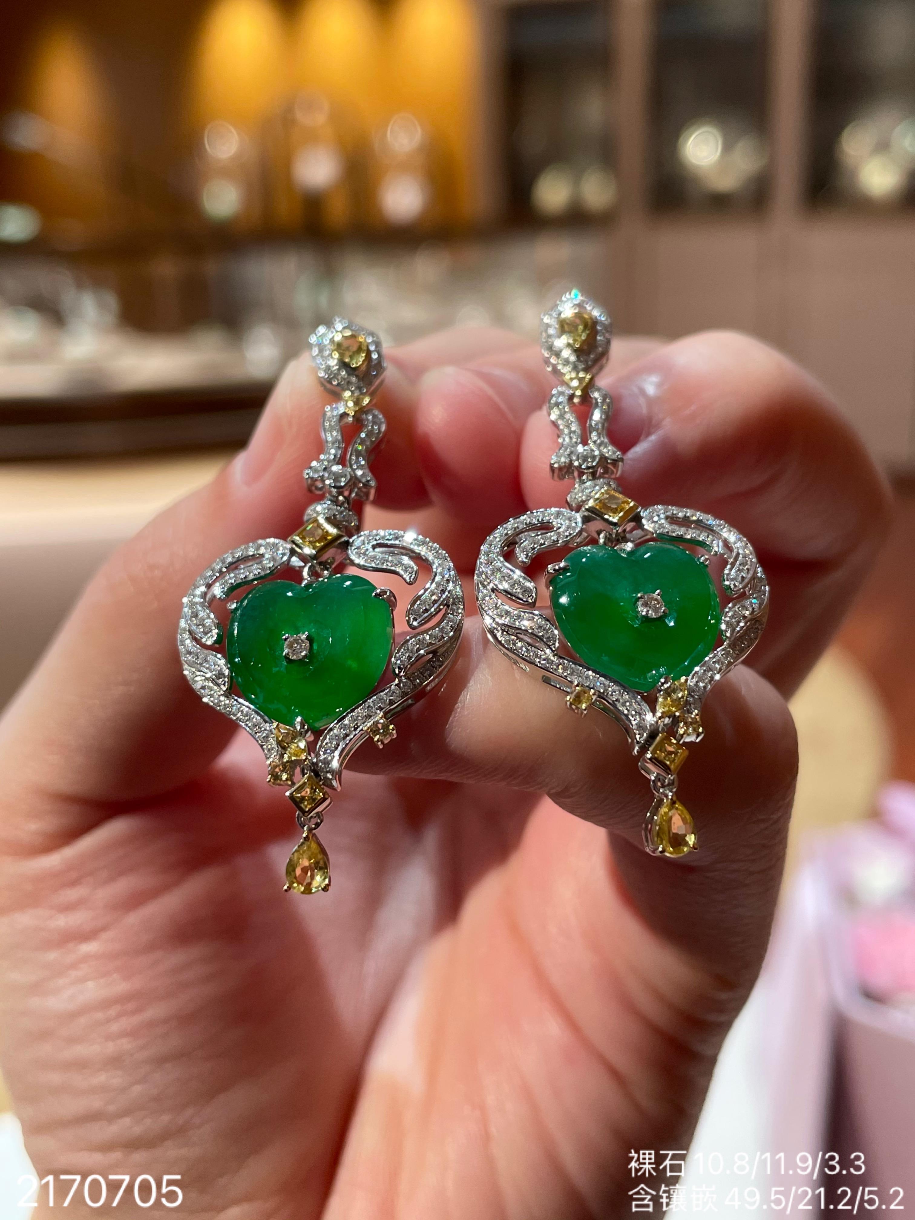 高冰种艳绿葫芦耳坠 72999【6024304】