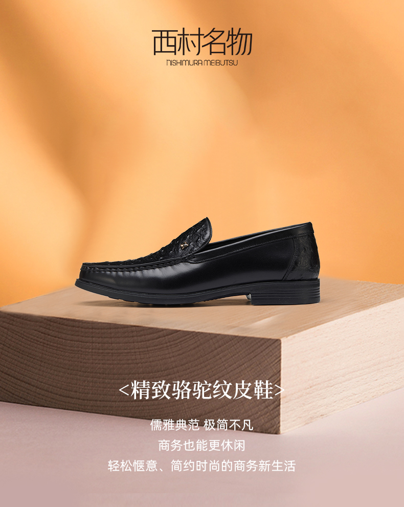 西村名物2023年春夏季款英伦商务男鞋商场同款精致骆驼纹皮鞋X13AV12821