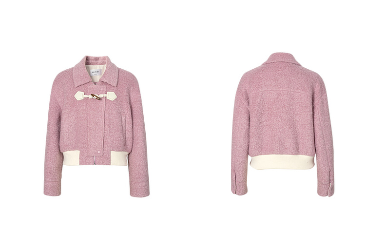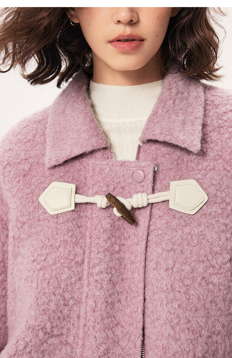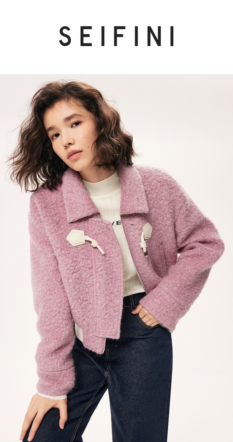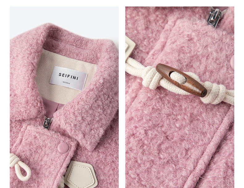 【严选】诗凡黎秋撞色下摆设计牛角扣装饰毛毛外套SE9410171