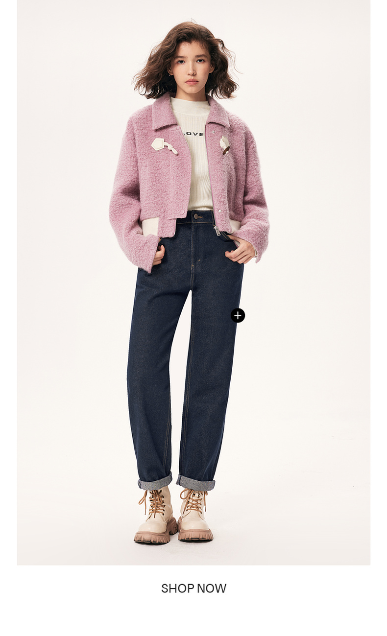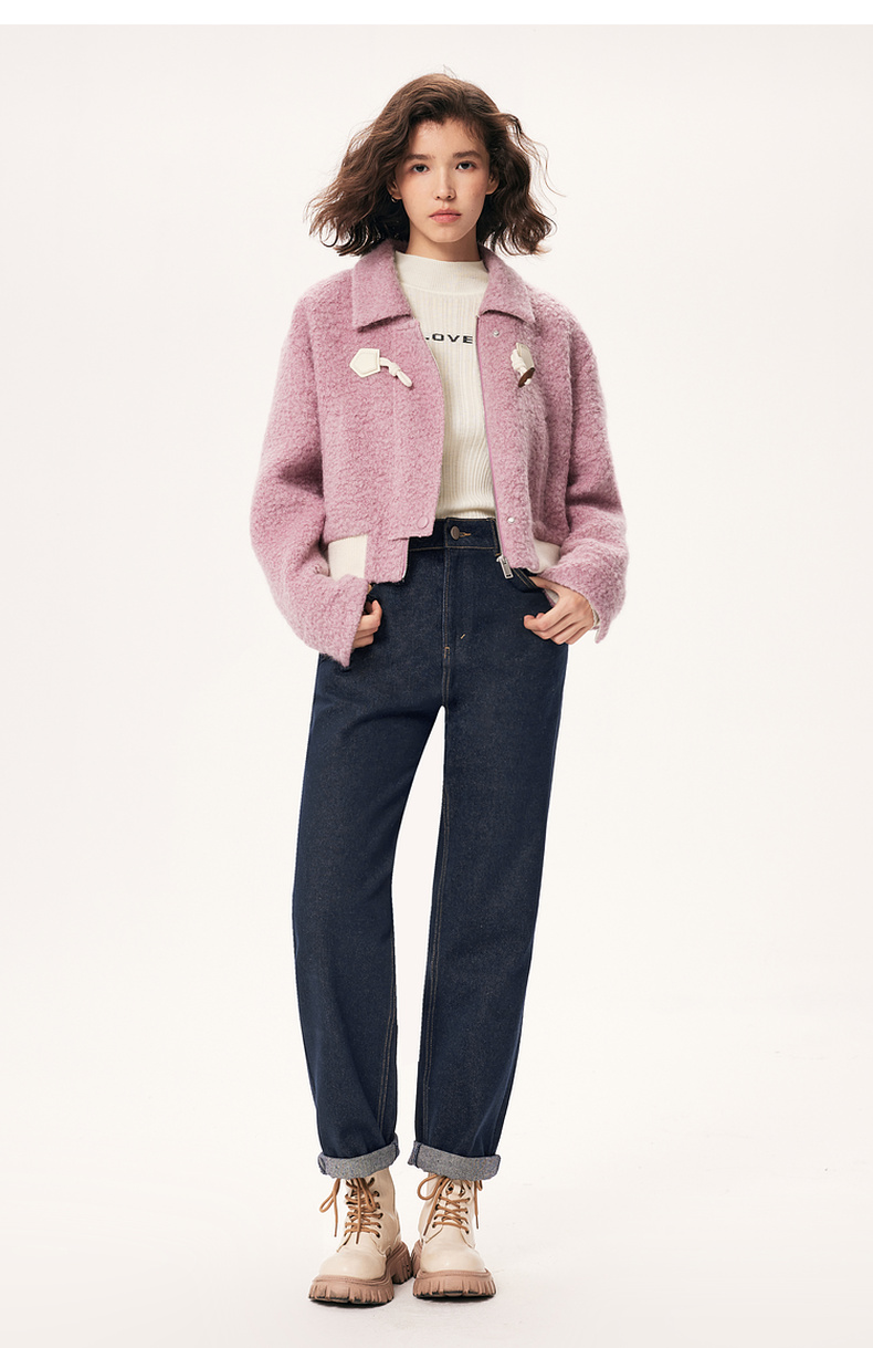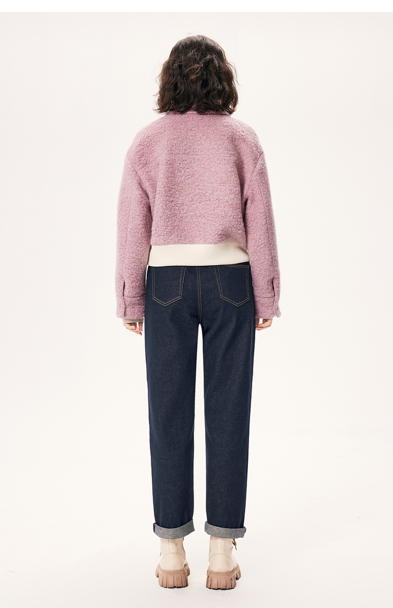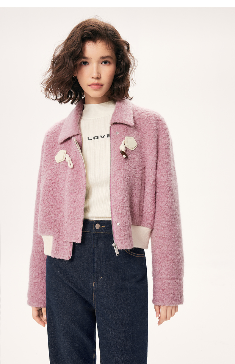 【严选】诗凡黎秋撞色下摆设计牛角扣装饰毛毛外套SE9410171