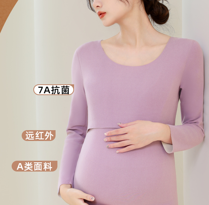 【草本初色】高弹秋衣7A抑菌舒适冬季打底保暖孕妇哺乳套装喂奶专用