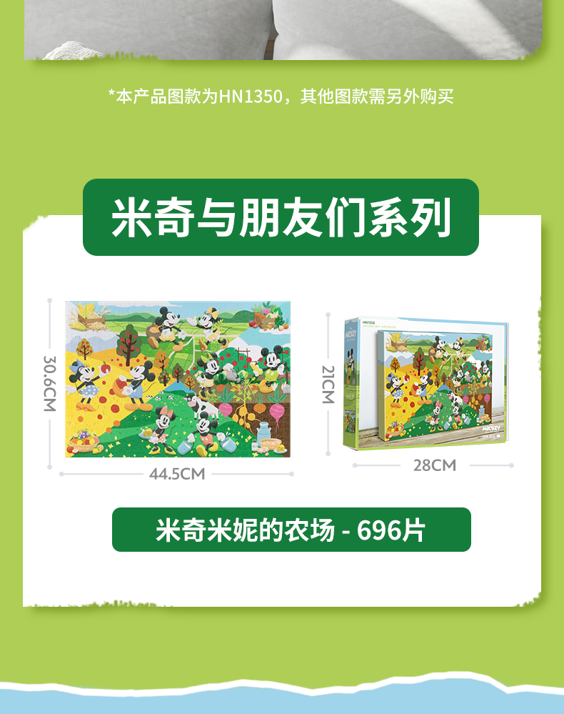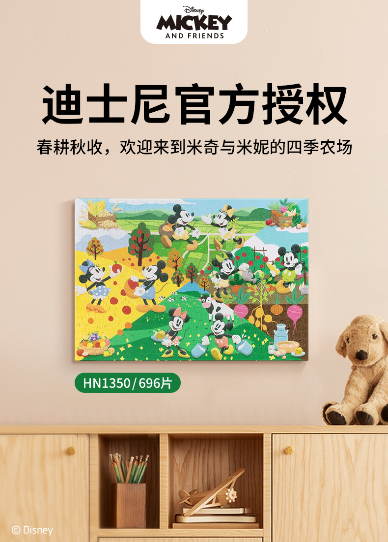 【折扣商品 不退不换】696片 无框塑料拼图 HN1350 米奇与朋友们系列-米奇米妮的农场