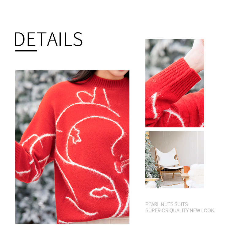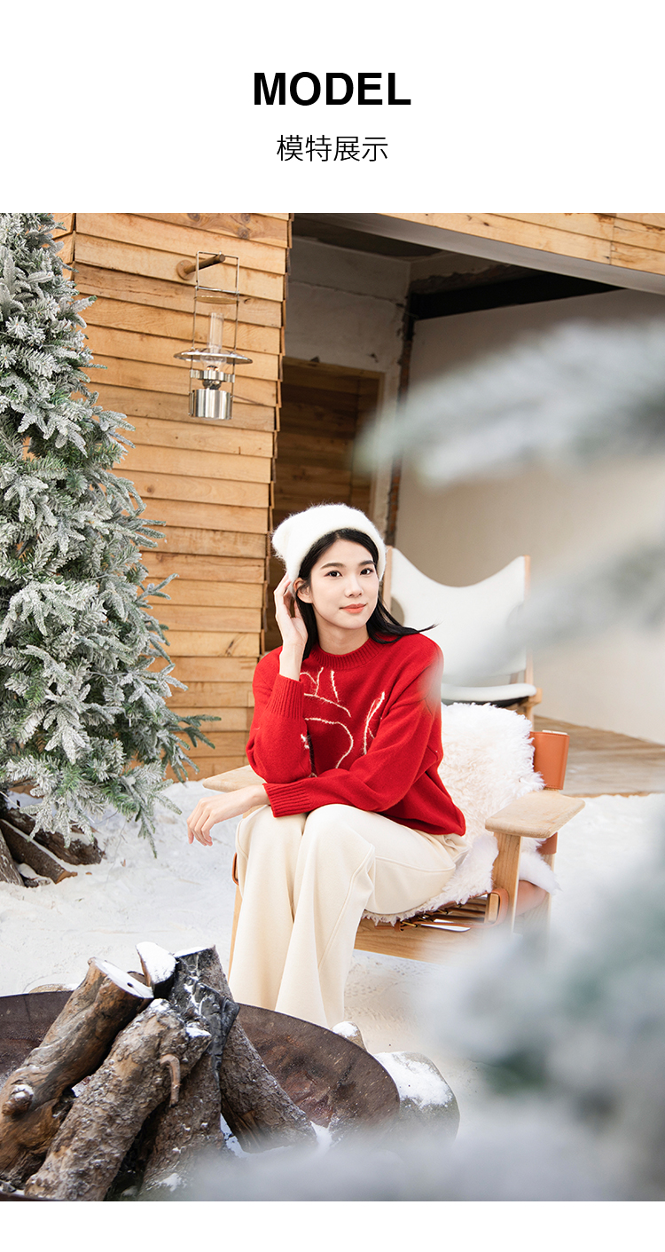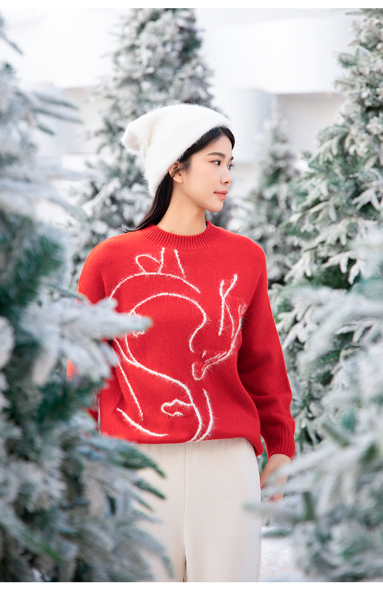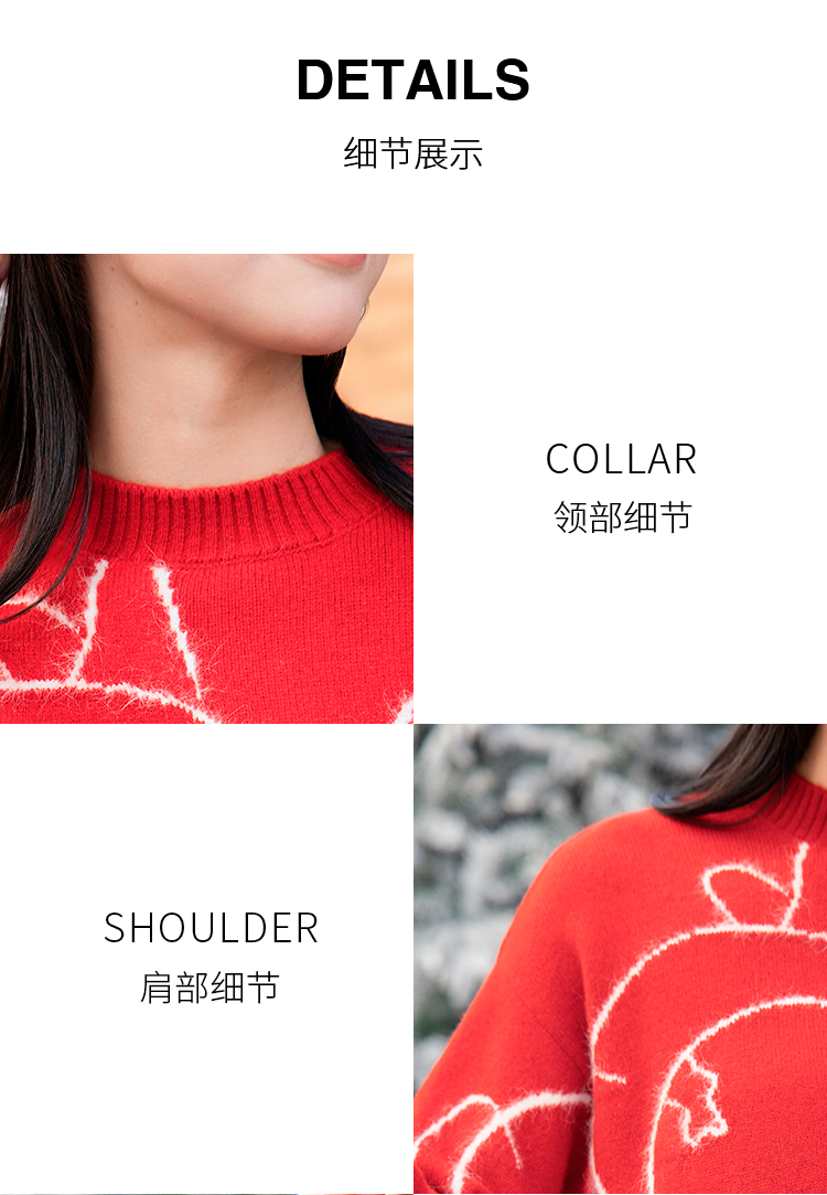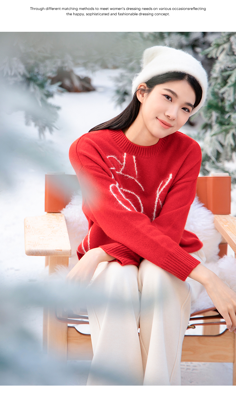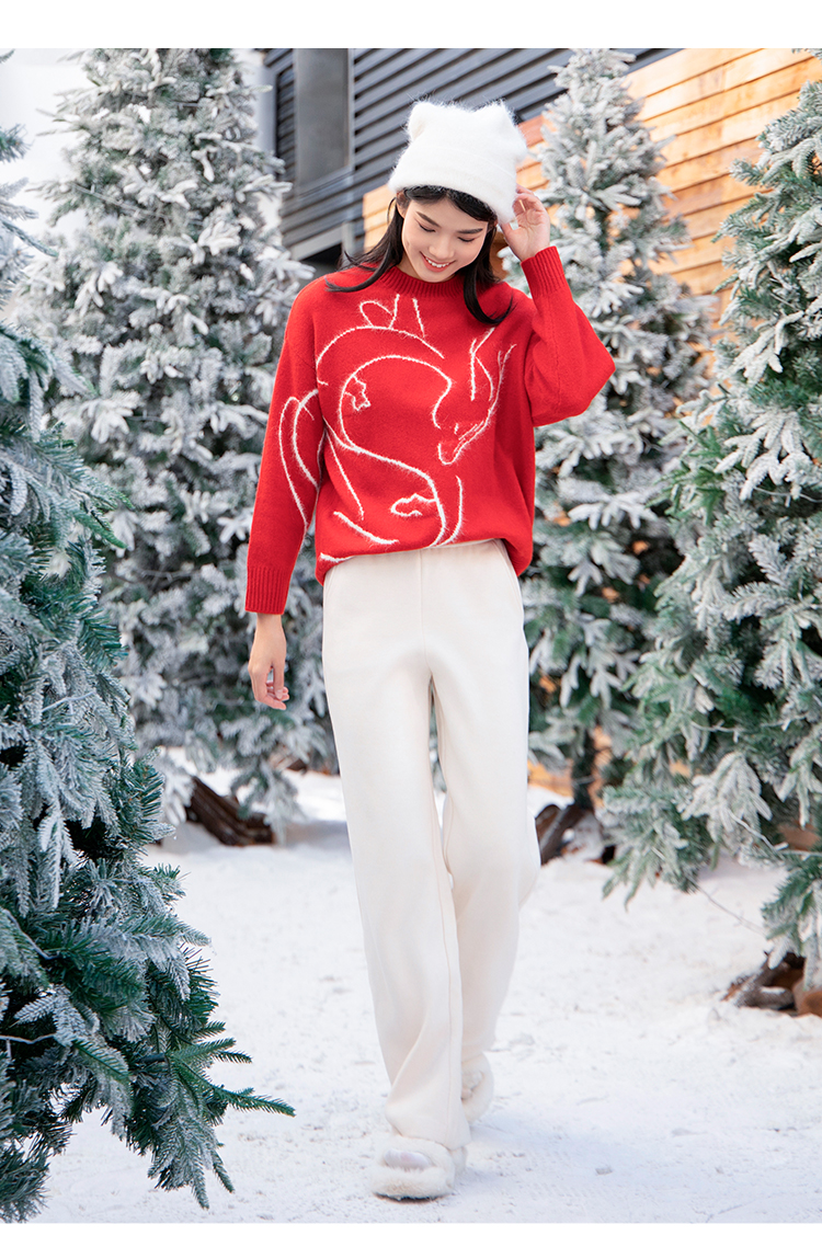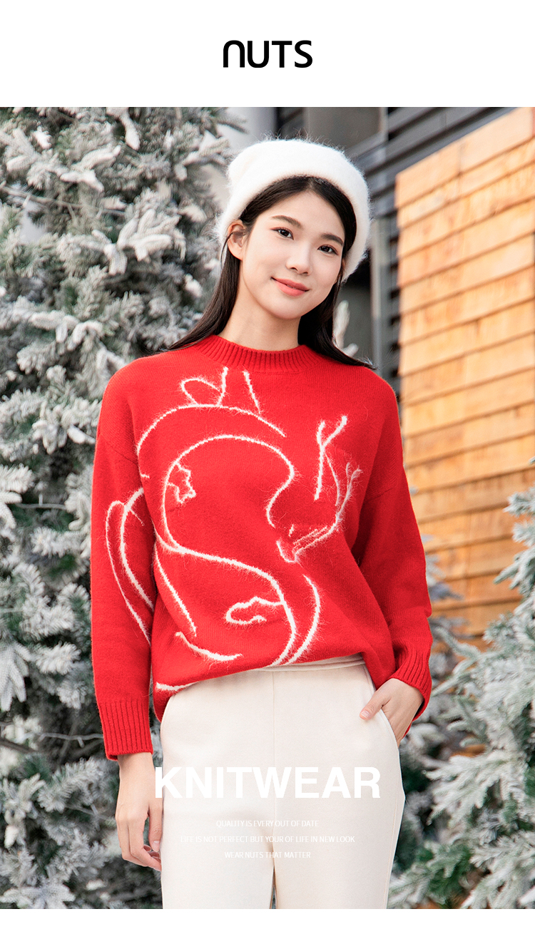 NUTS商场同款冬季圆领提花休闲百搭时尚保暖毛织套头衫女4450501A1