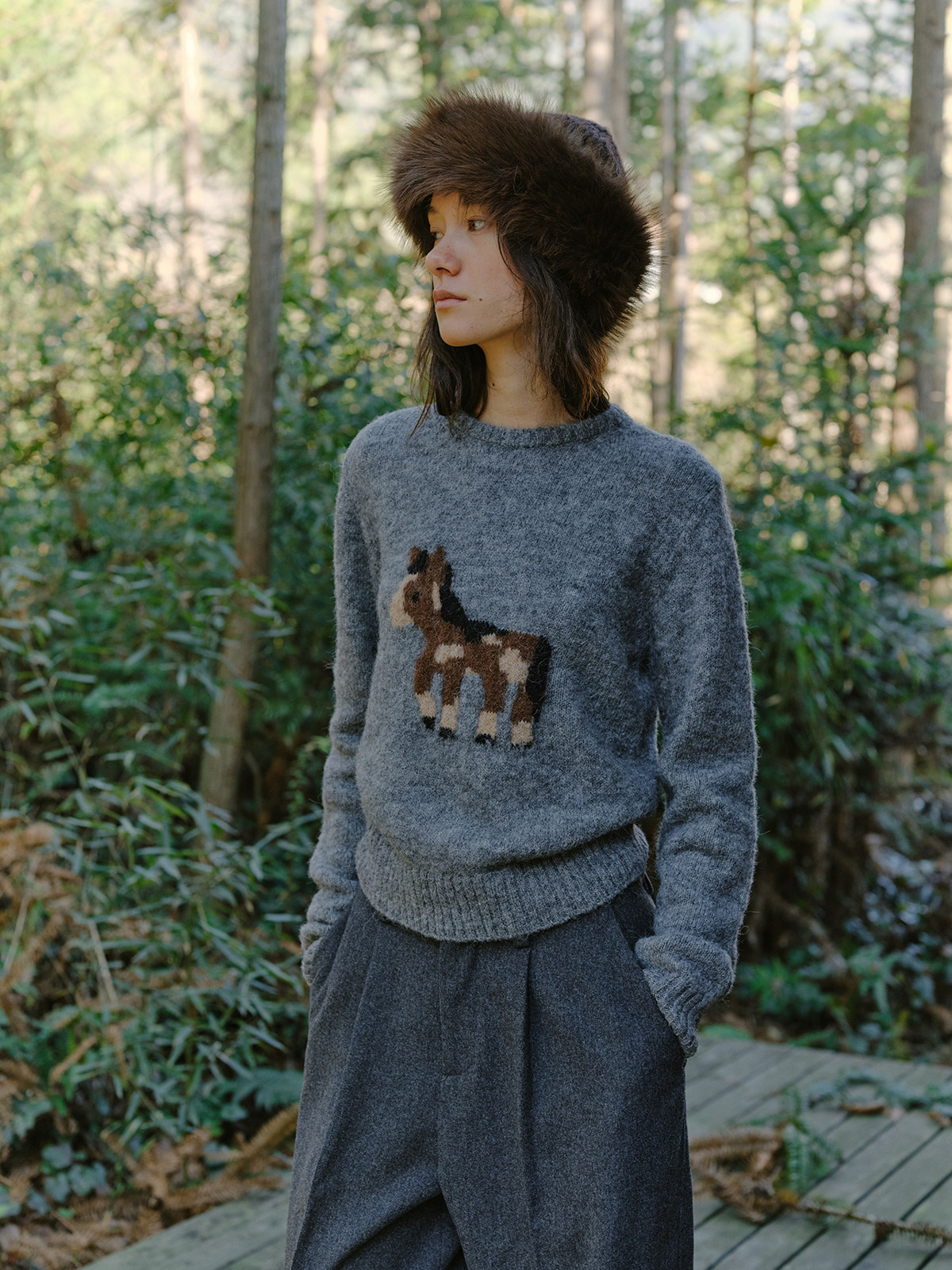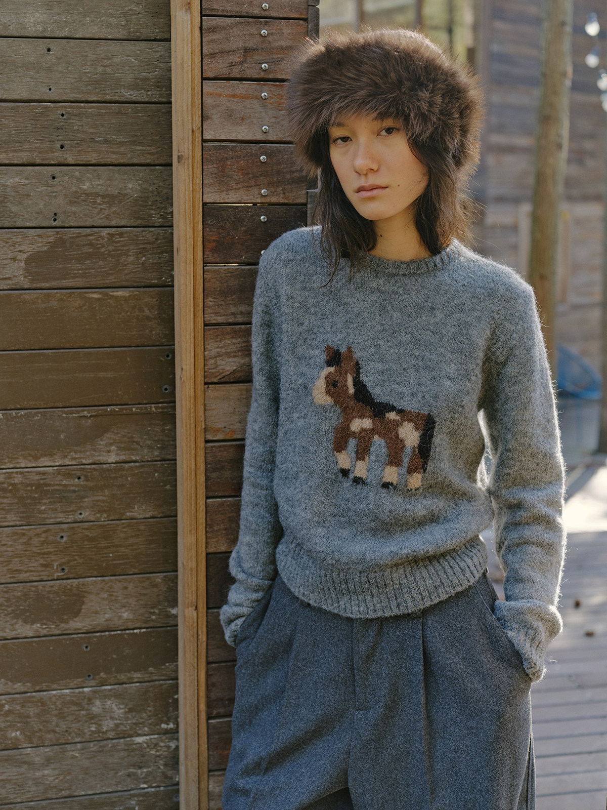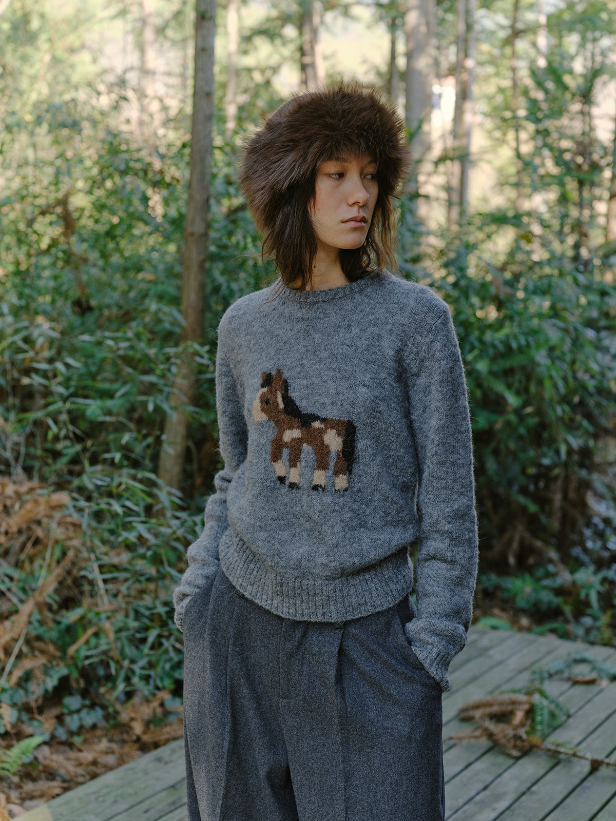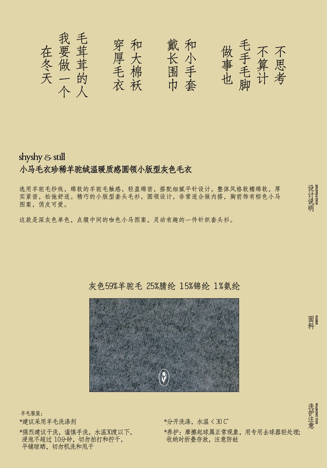 shyshystill/shy202510046/小马毛衣珍稀羊驼绒小版型灰色毛衣