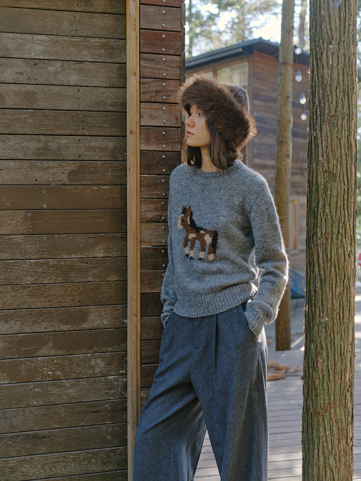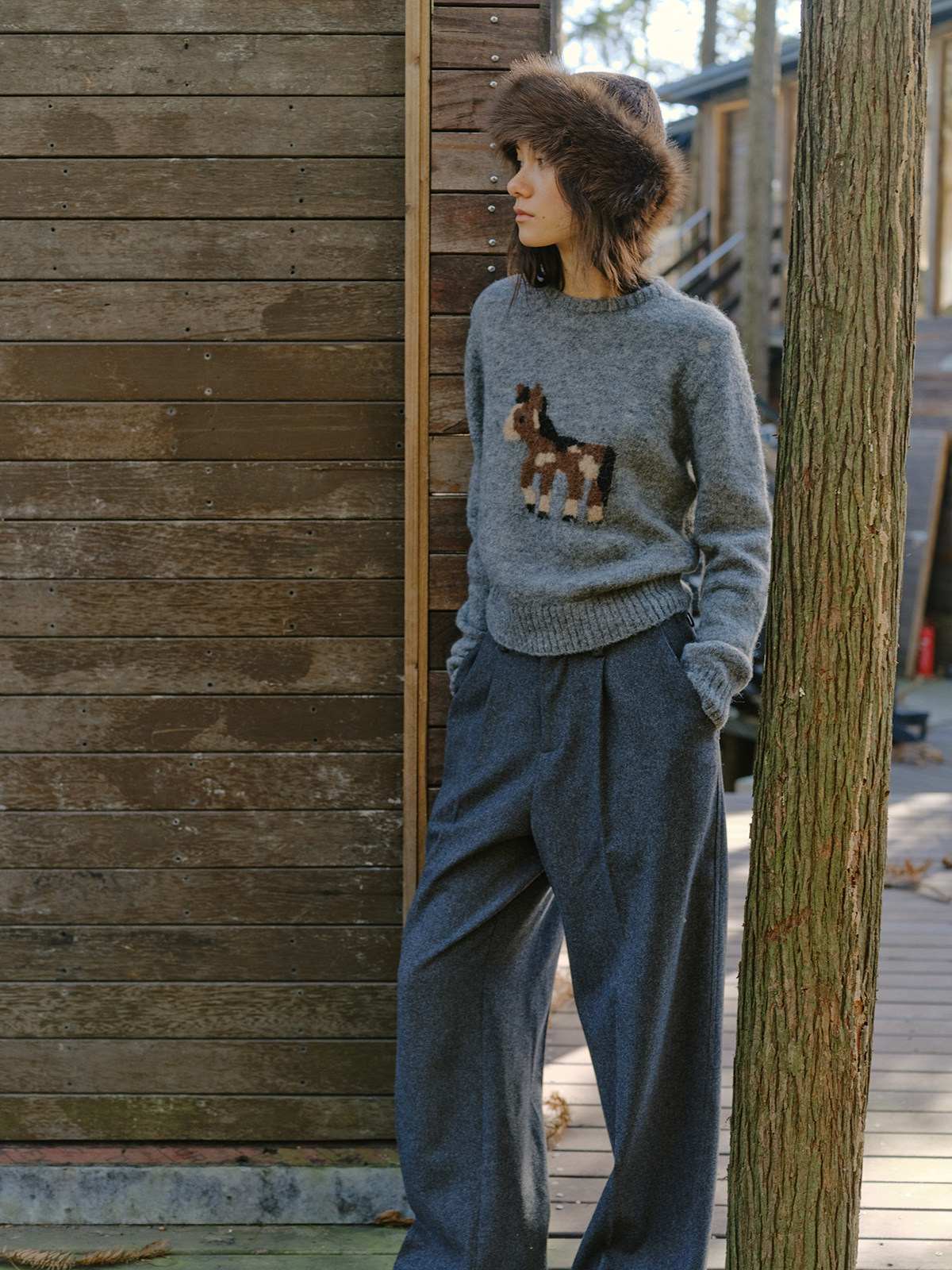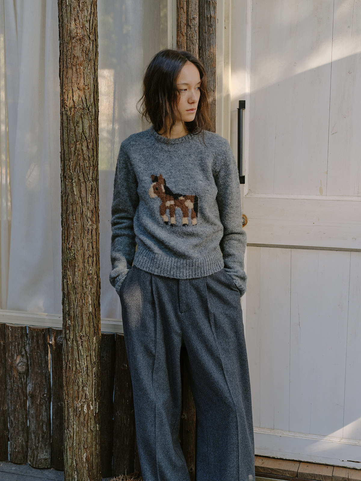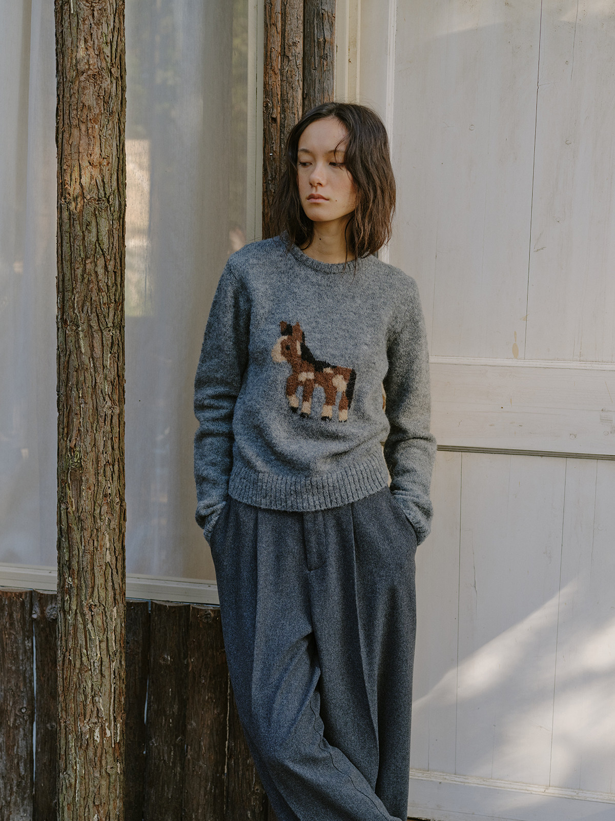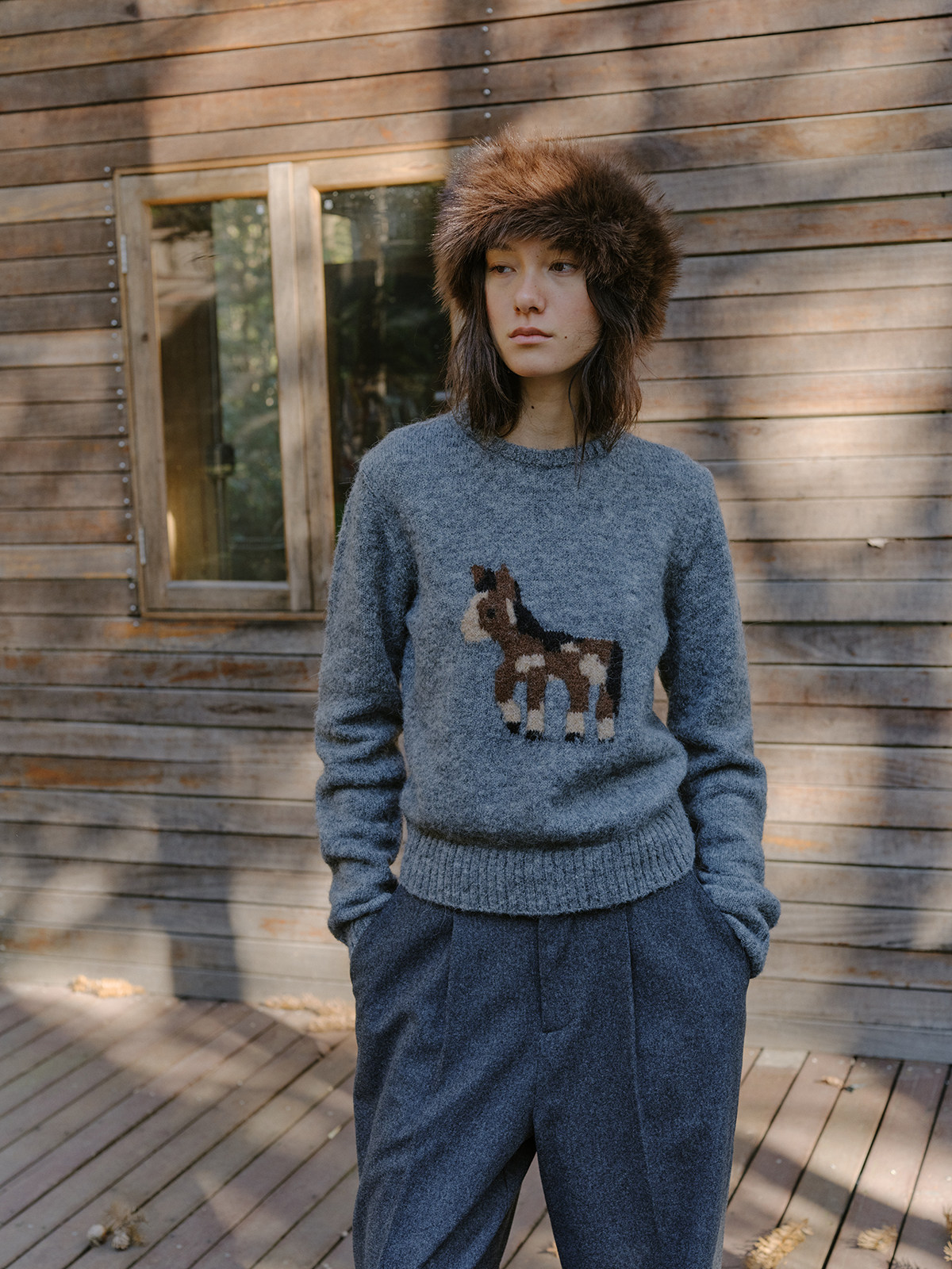 shyshystill/shy202510046/小马毛衣珍稀羊驼绒小版型灰色毛衣