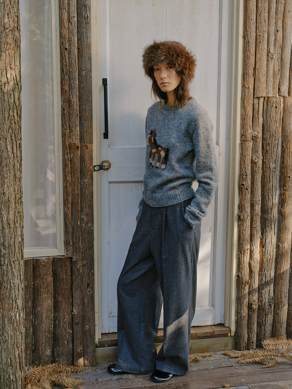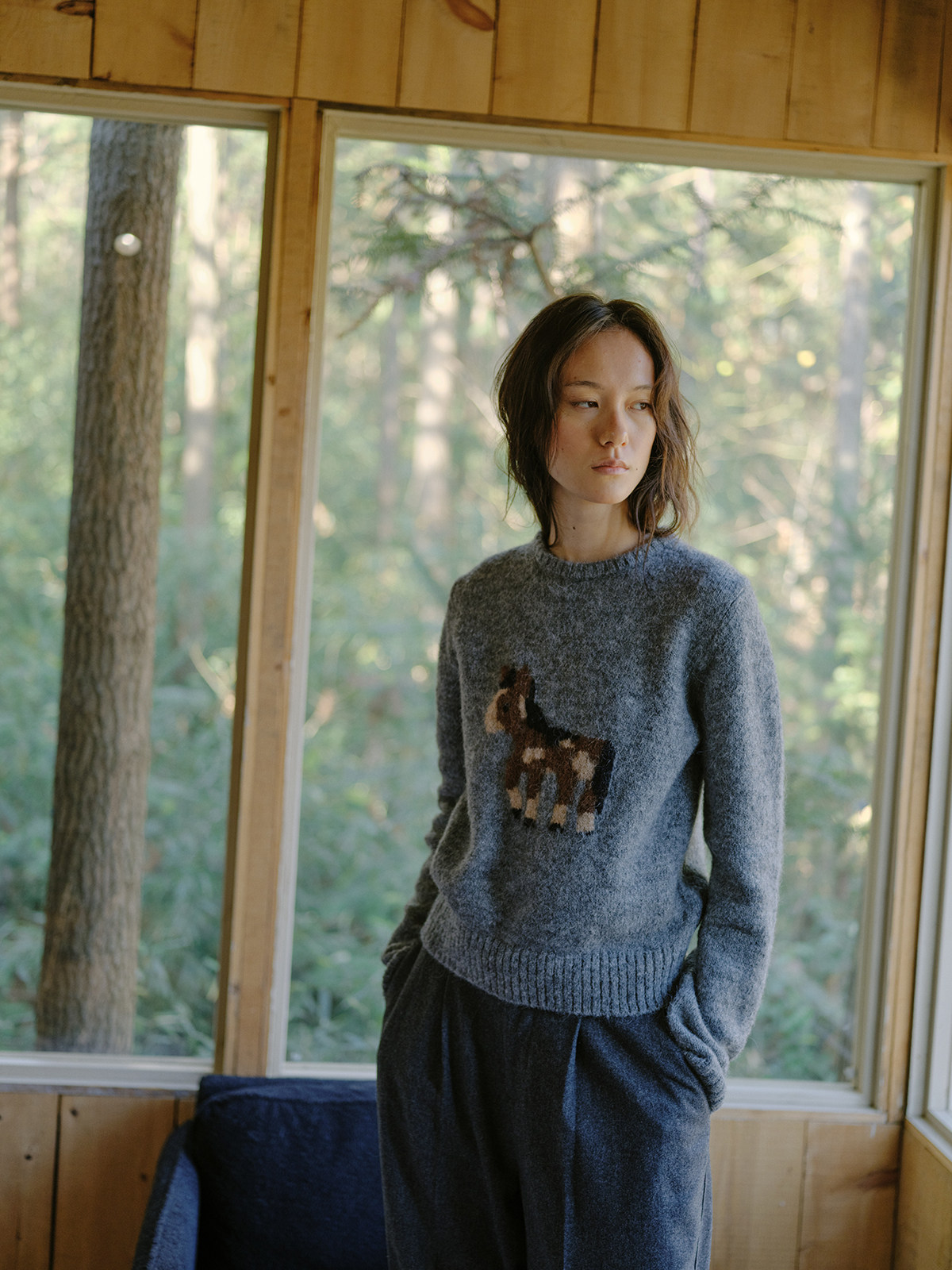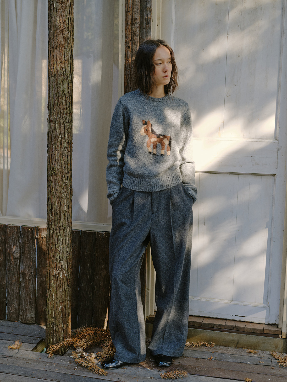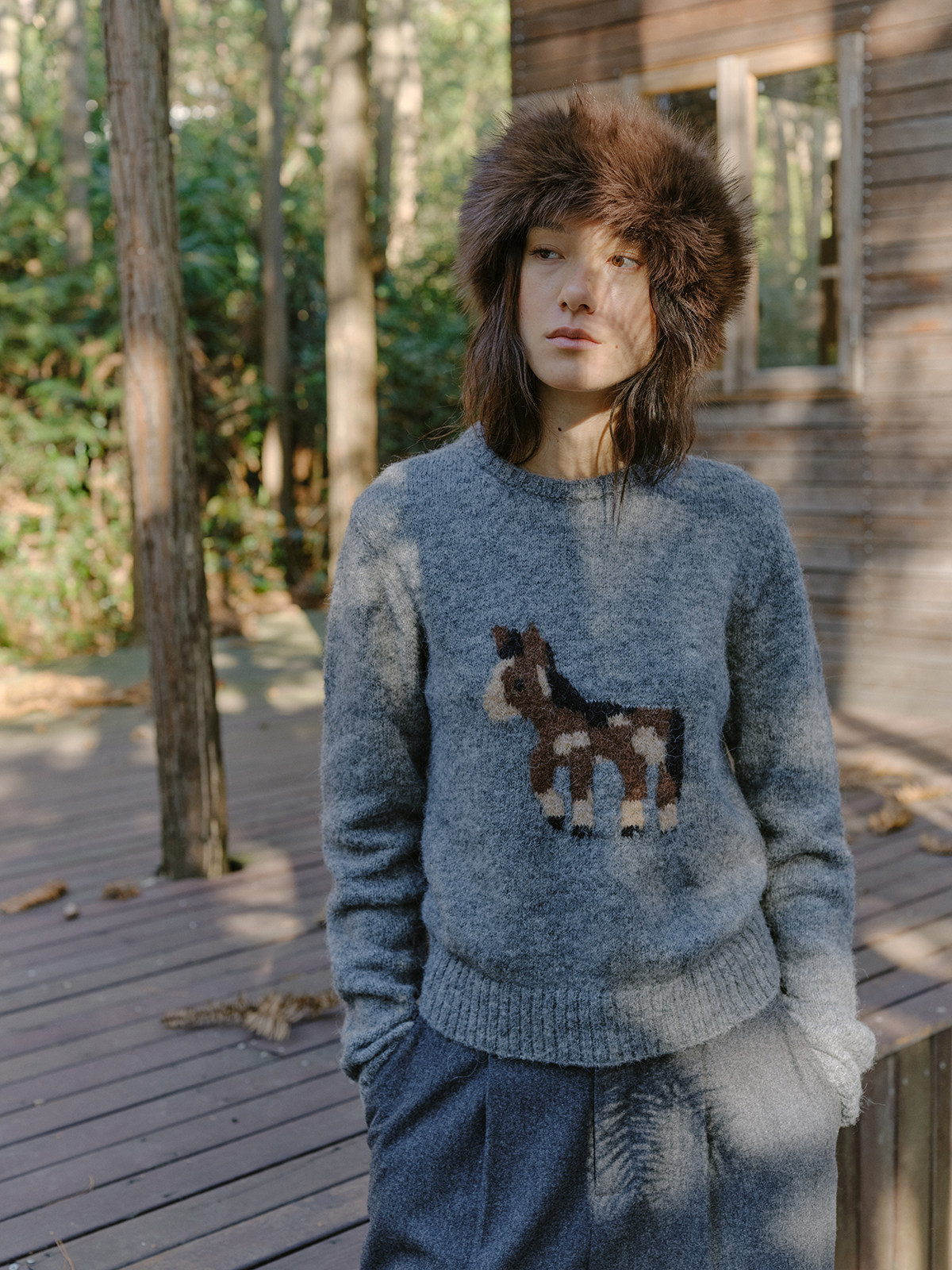 shyshystill/shy202510046/小马毛衣珍稀羊驼绒小版型灰色毛衣