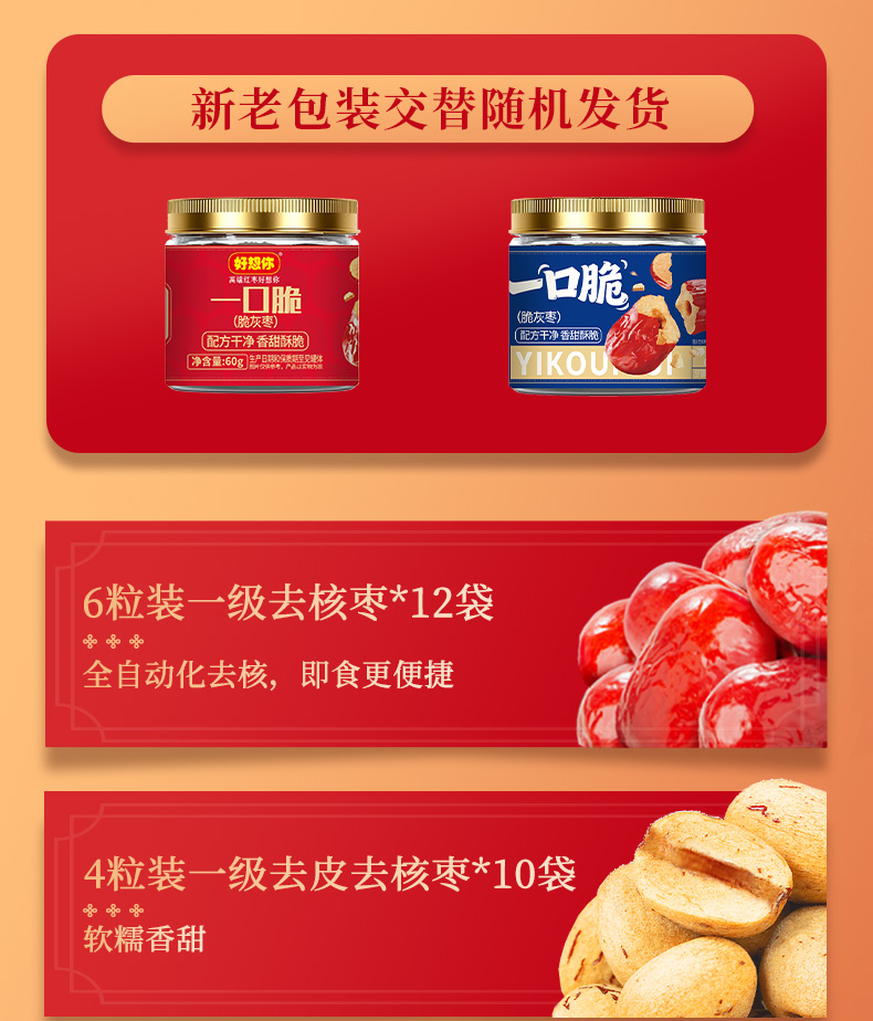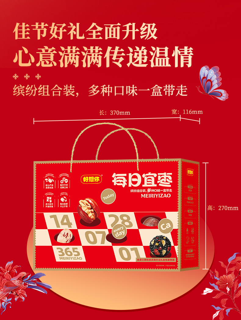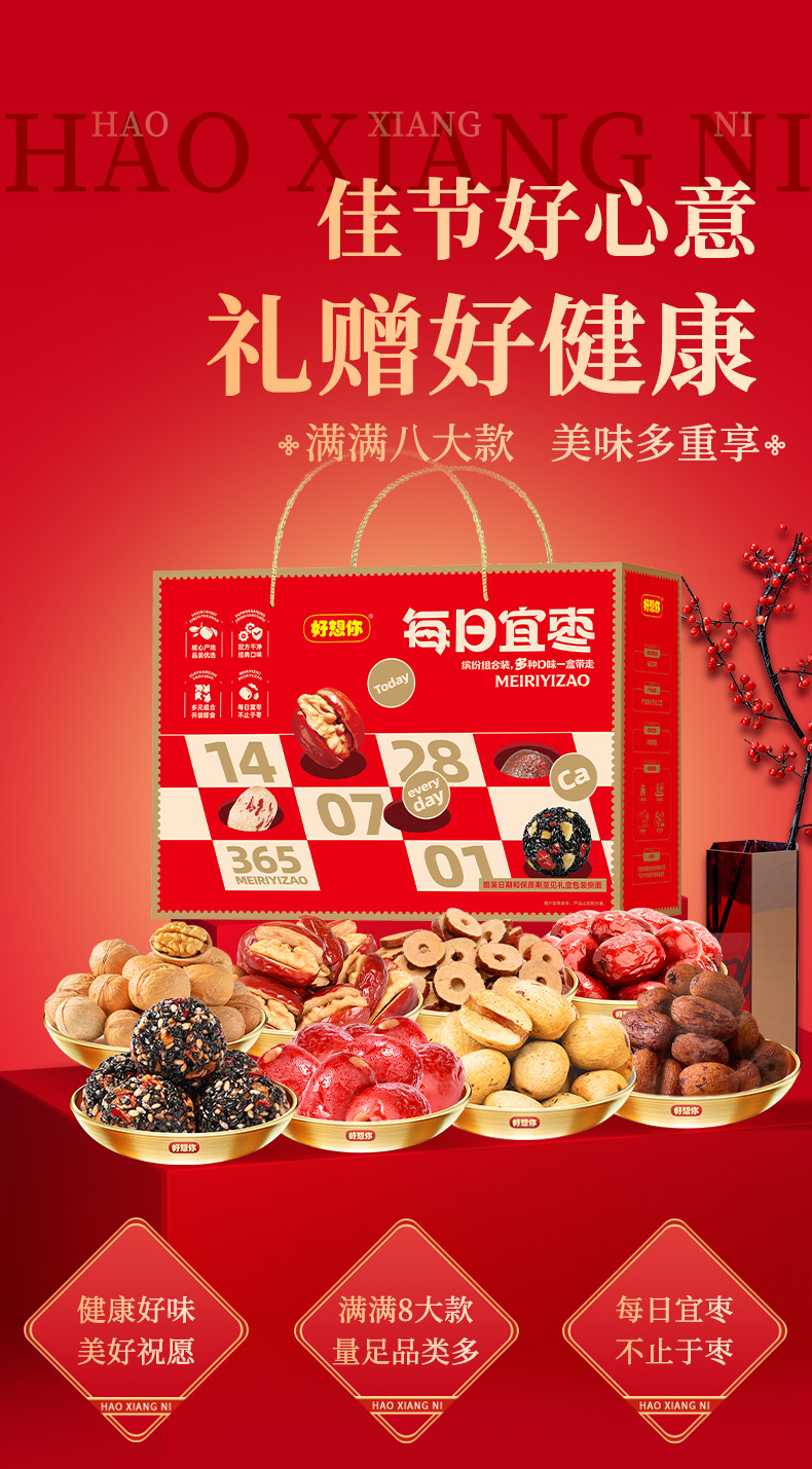 【好想你】1000g每日宜枣去皮去核枣枣夹核桃红枣礼盒过节送亲戚