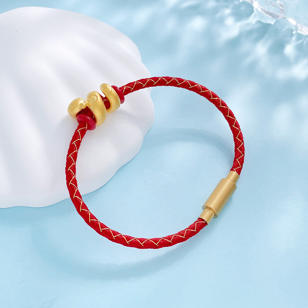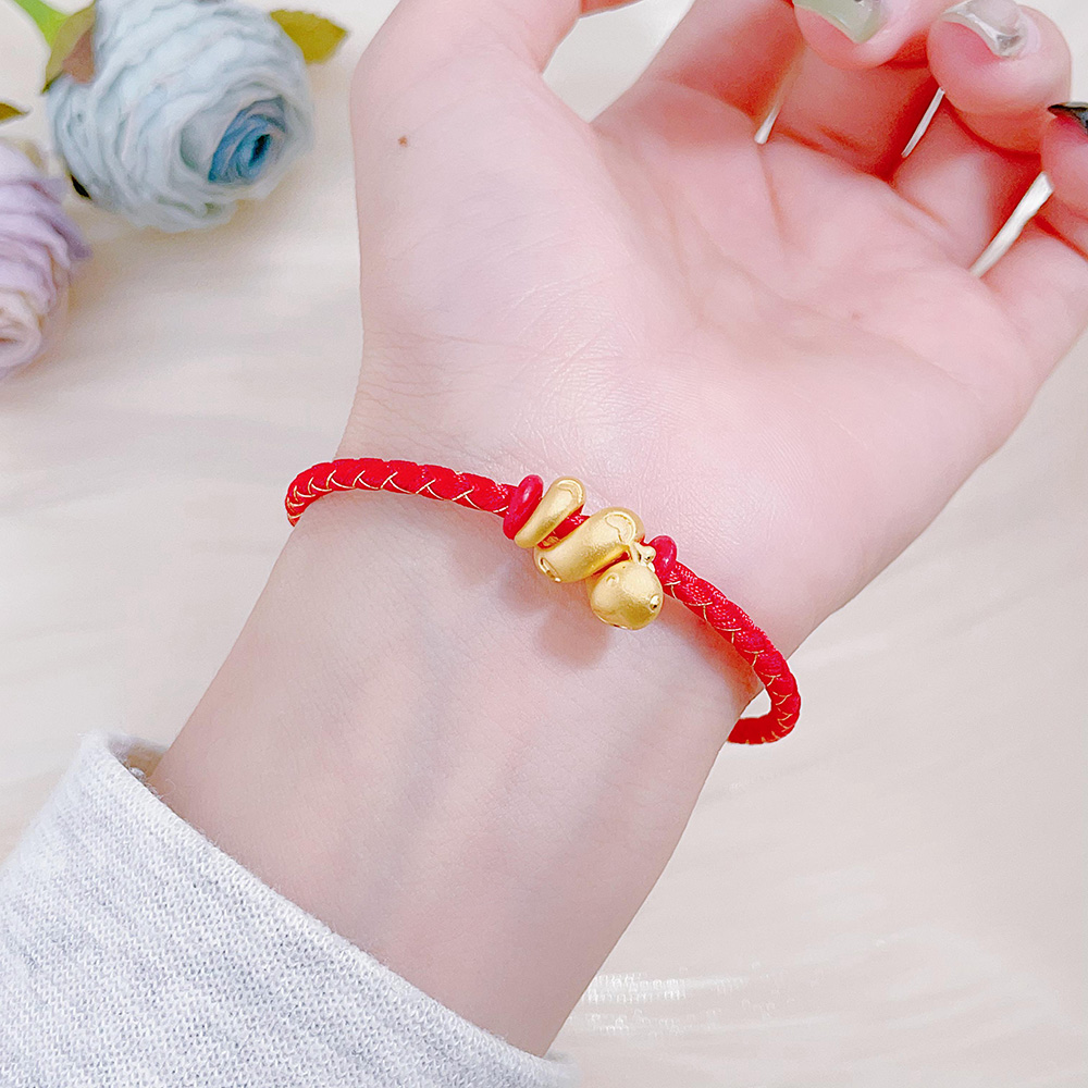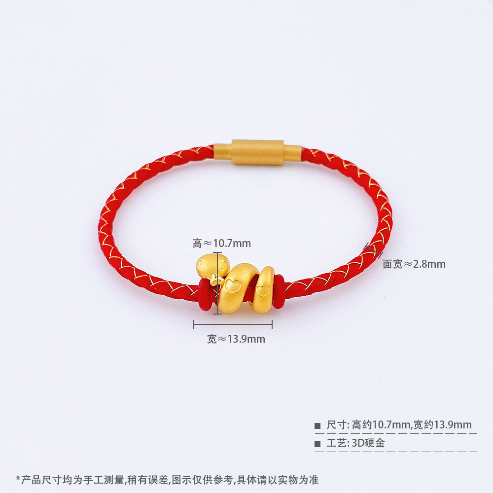 【限时7.5折】【定价黄金】足金 #蛇年新品 3D硬金蛇年生肖转运红绳手串爱心灵蛇宝宝进口龙麟绳手链成品手串(红绳扣饰为合金扣)(RFXJB0082)(预售产品下单后不退款不退货不换货不补差价)