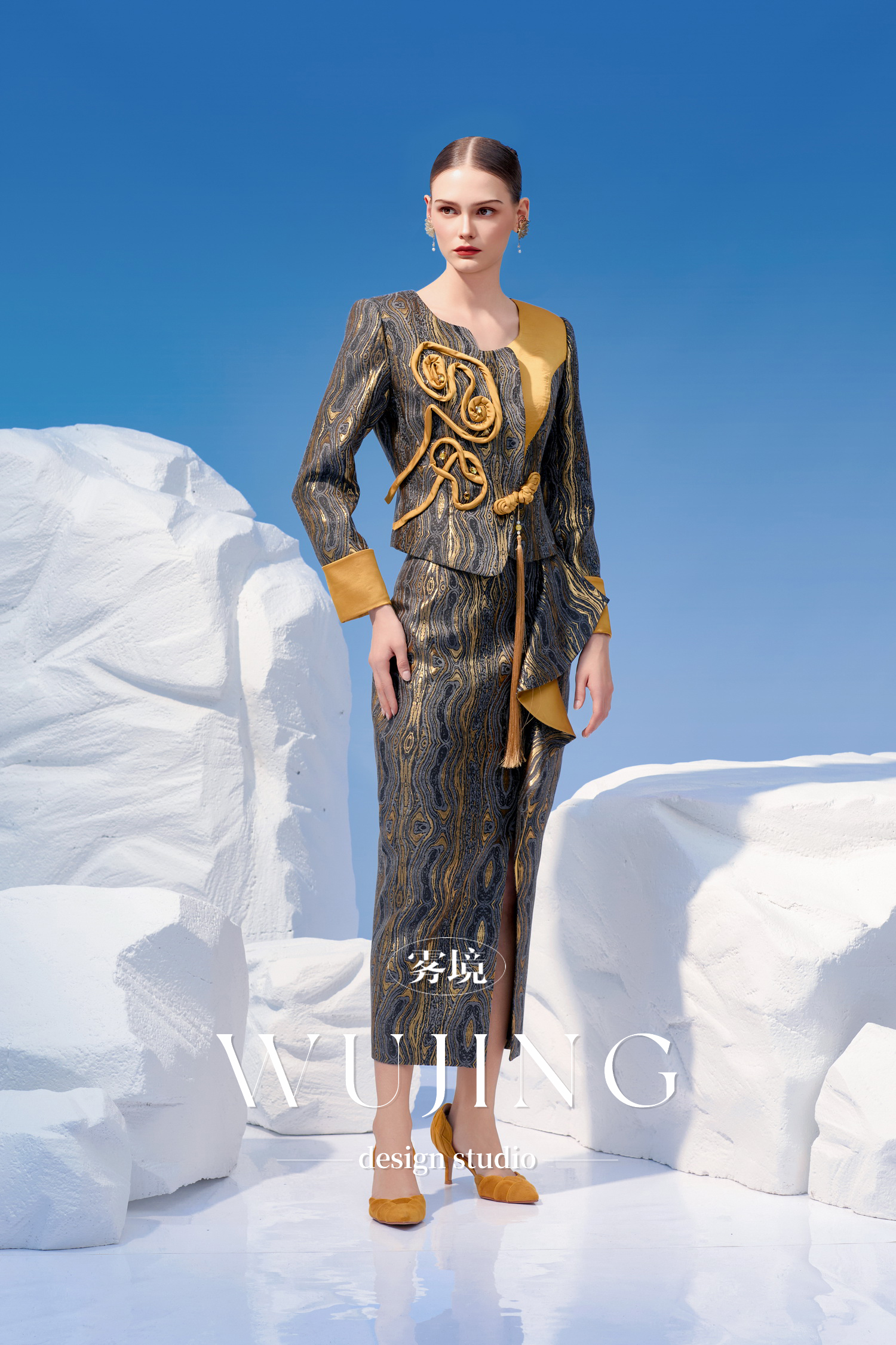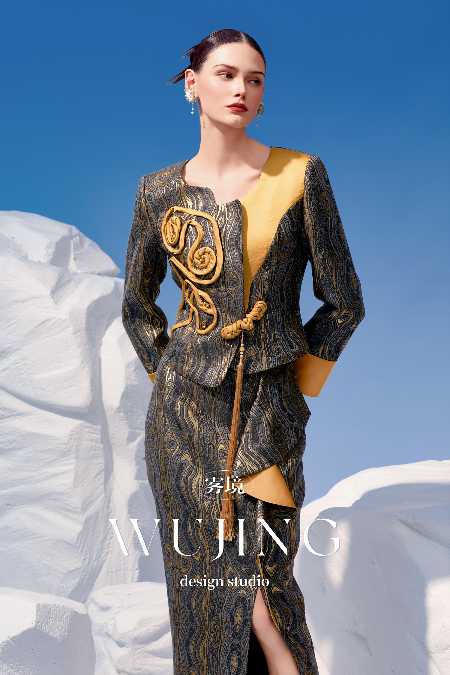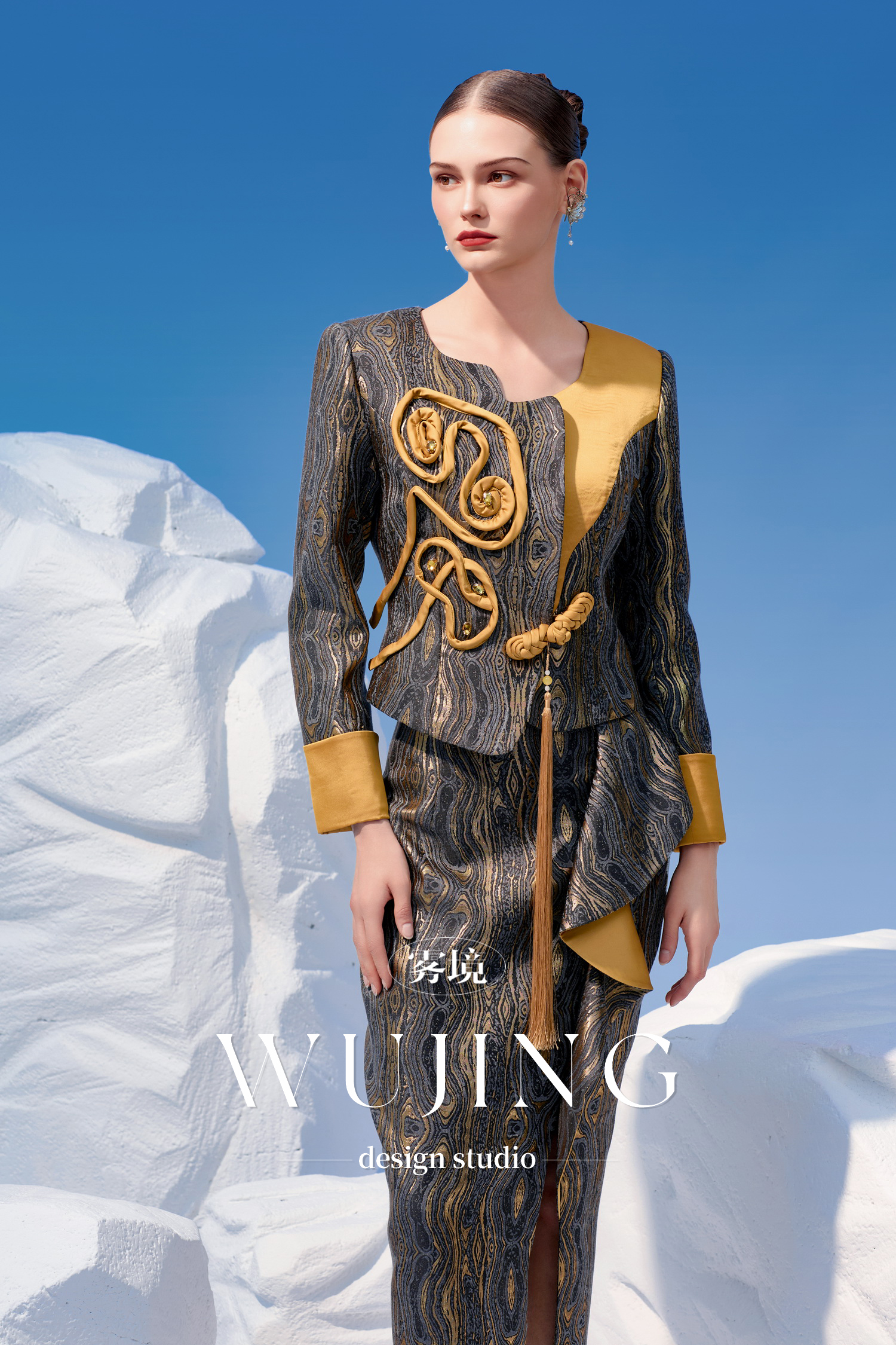 4202035 灰金片羽 高级双色提花外套 雾境