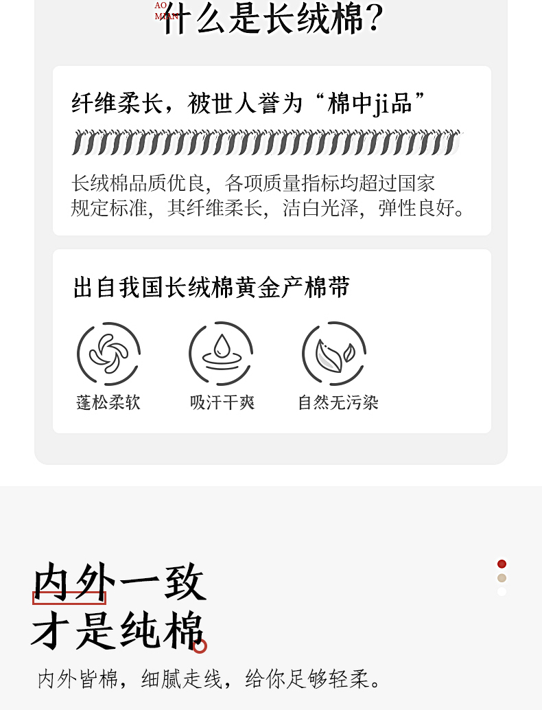 它还有柔软、持久、吸湿快干、手感爽滑等特点。