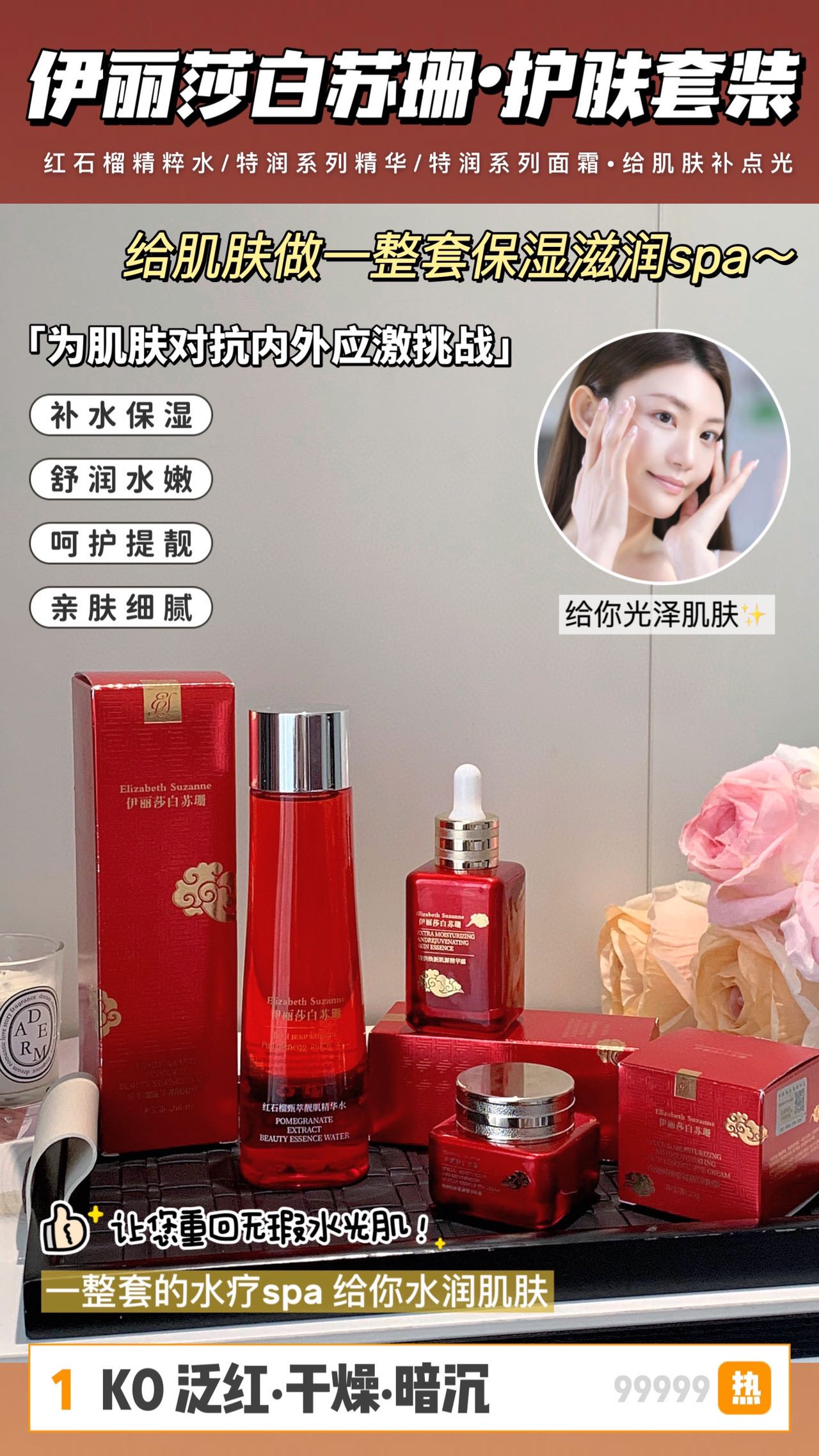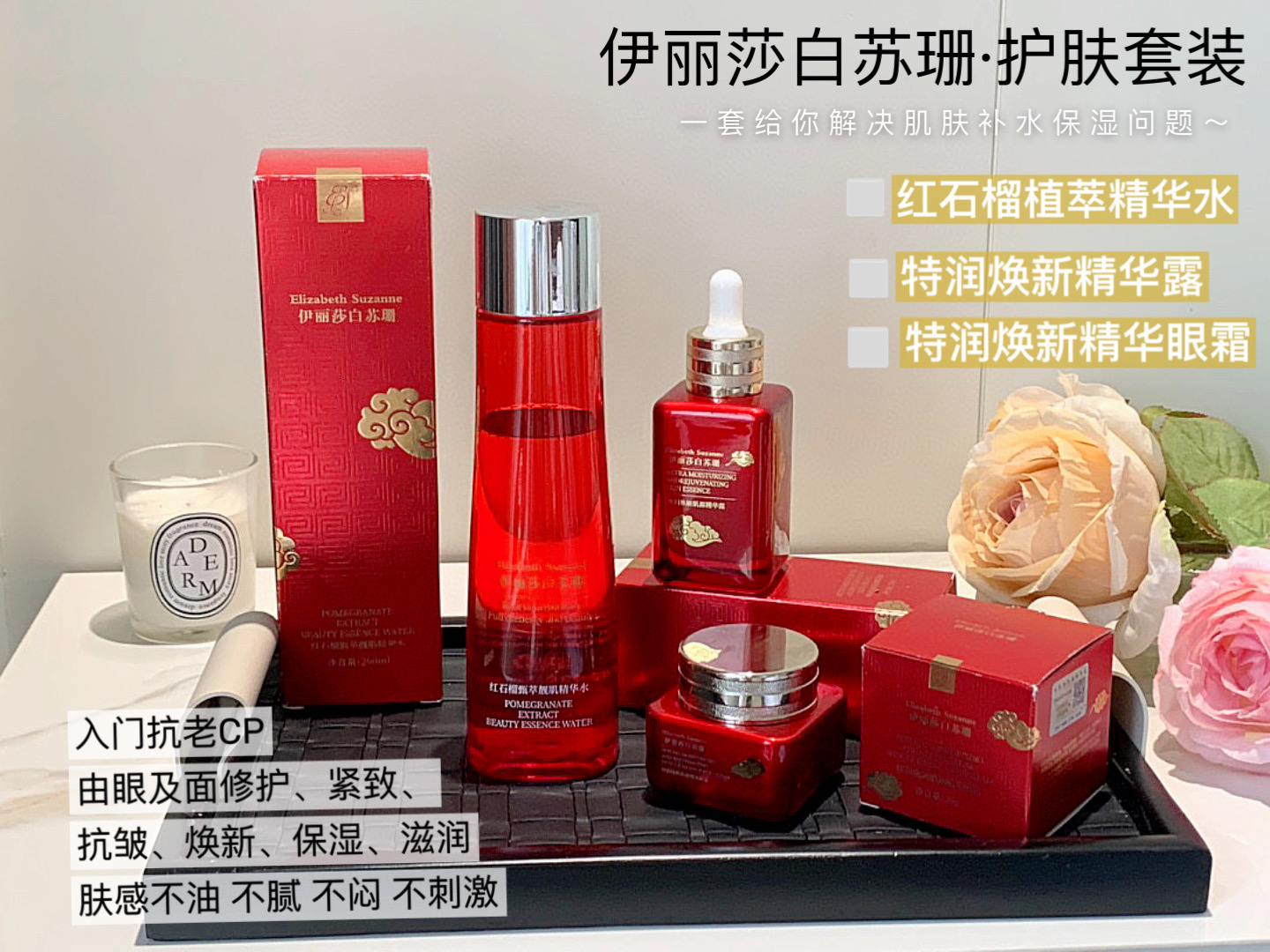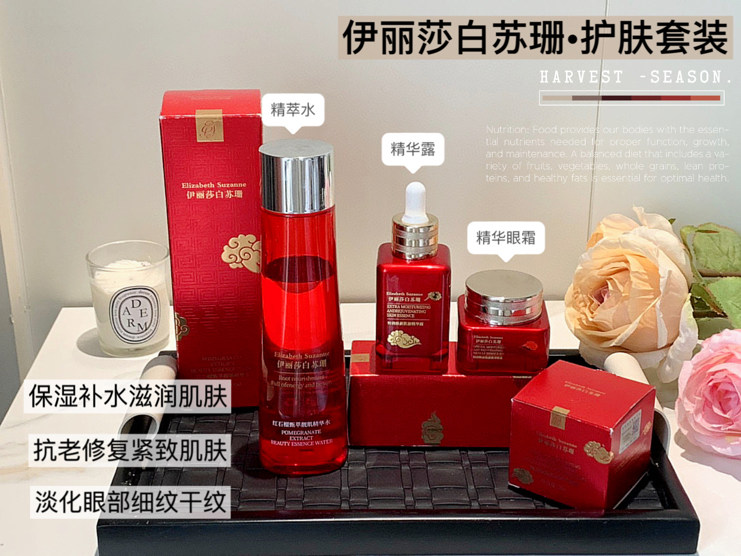 伊丽莎白苏珊·限定款护肤套盒 红石榴臻萃精华水(200ml)焕新肌源精华露(50ml)焕新肌源精华眼霜(30g)