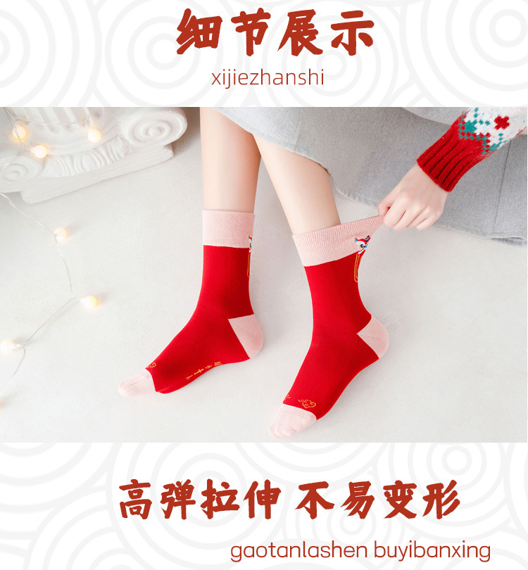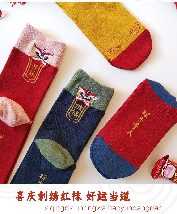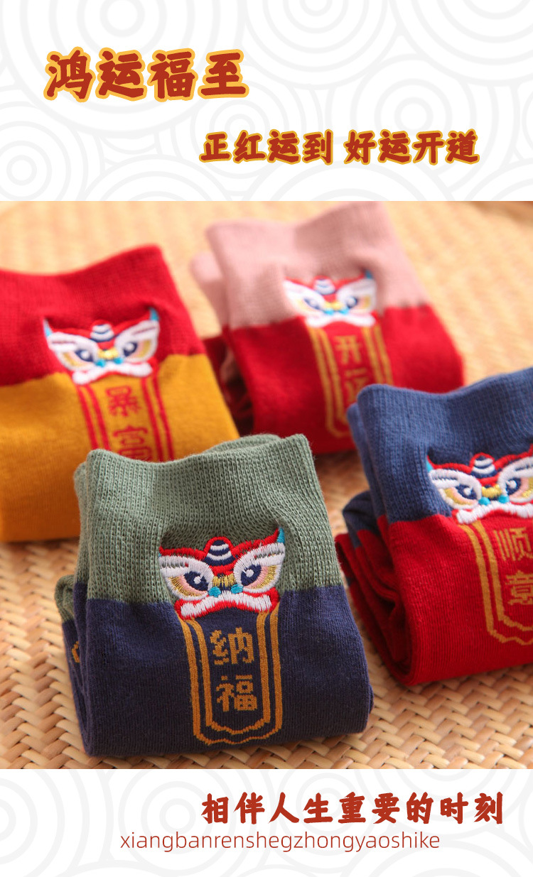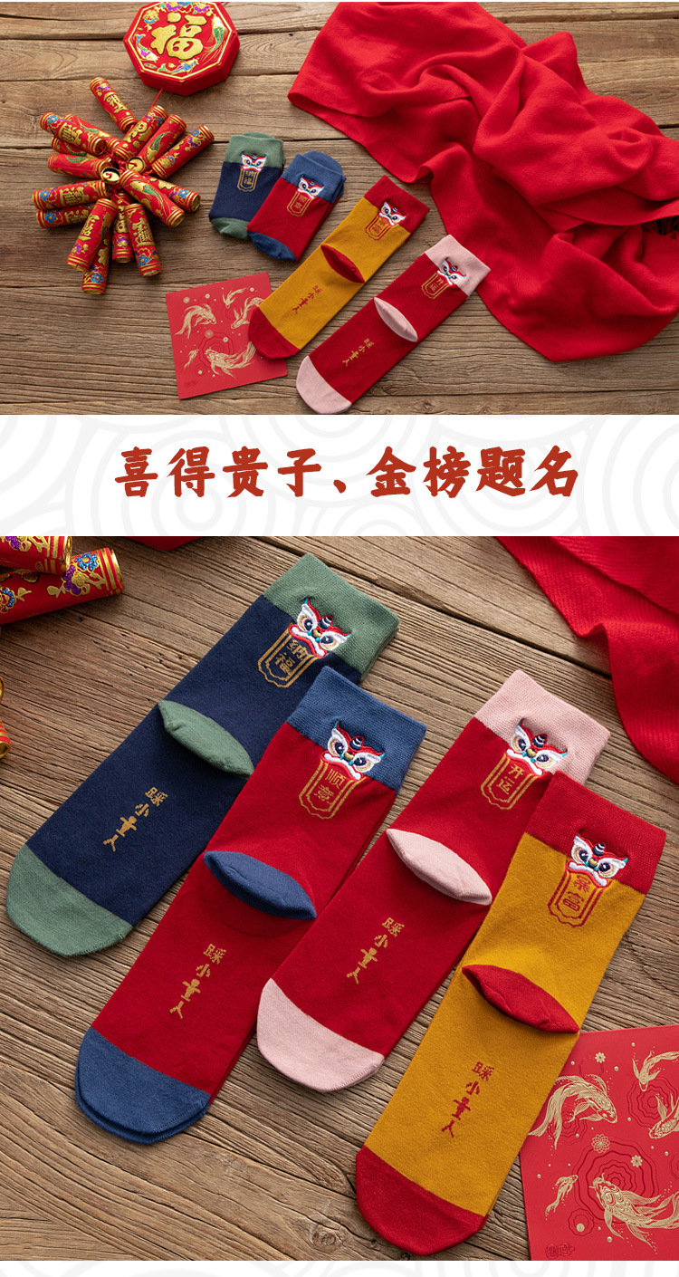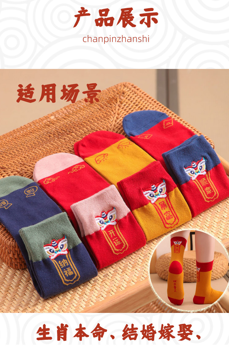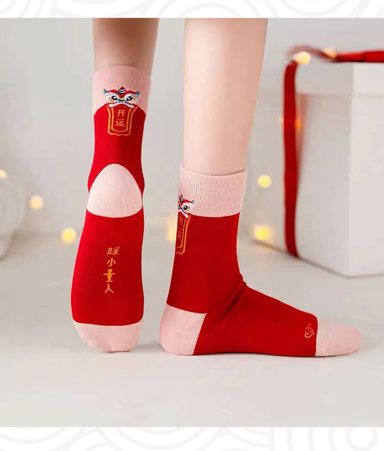 国潮本命年 2024新年虎年大红色袜子本命年刺绣印花礼品盒装国潮中筒棉袜情侣款 本命年中筒袜 幸运袜 礼盒装