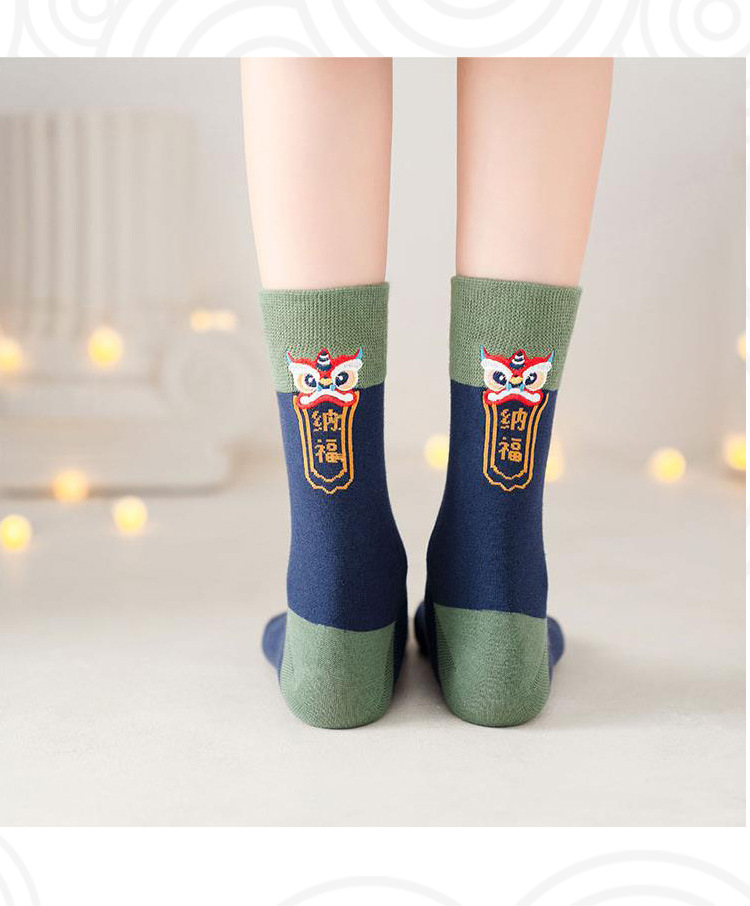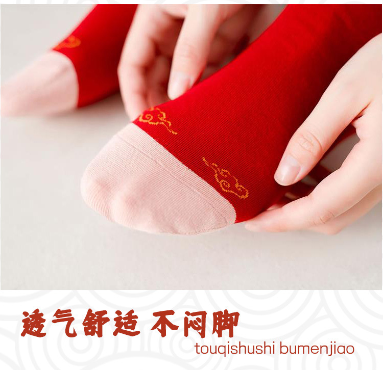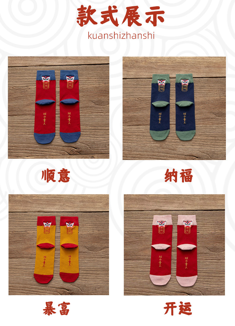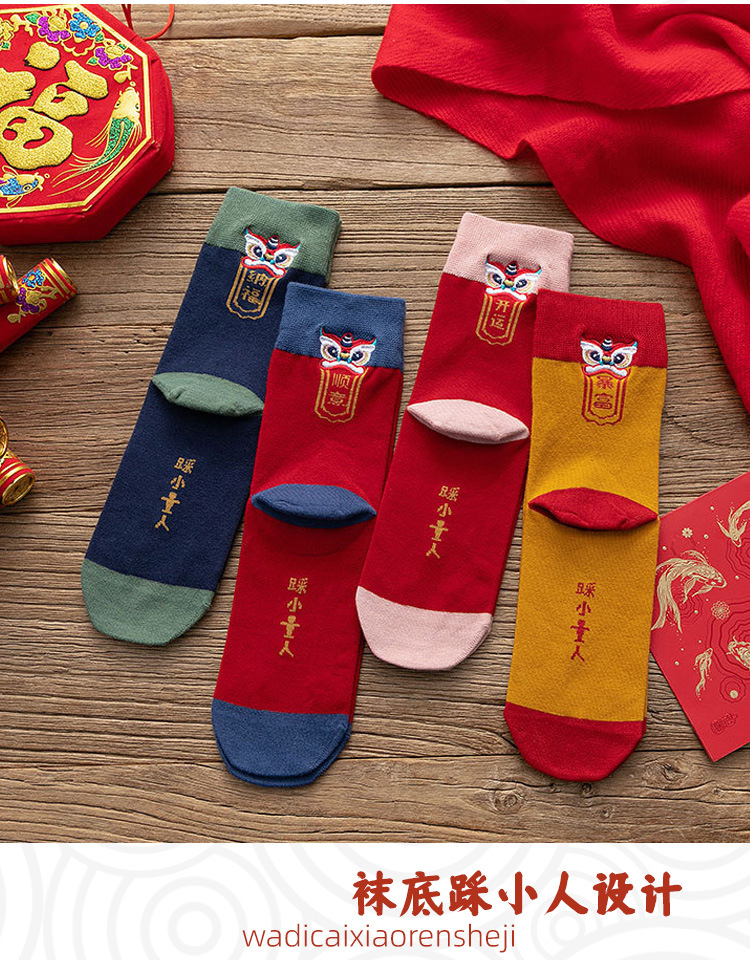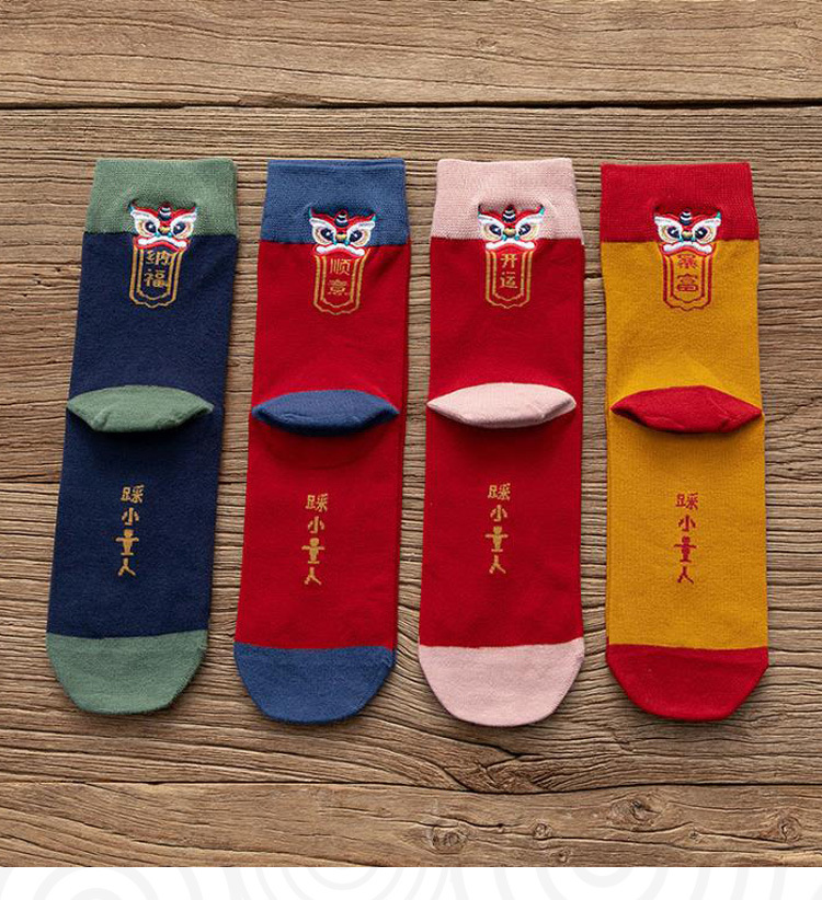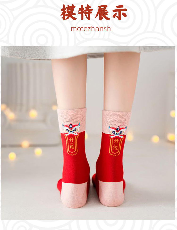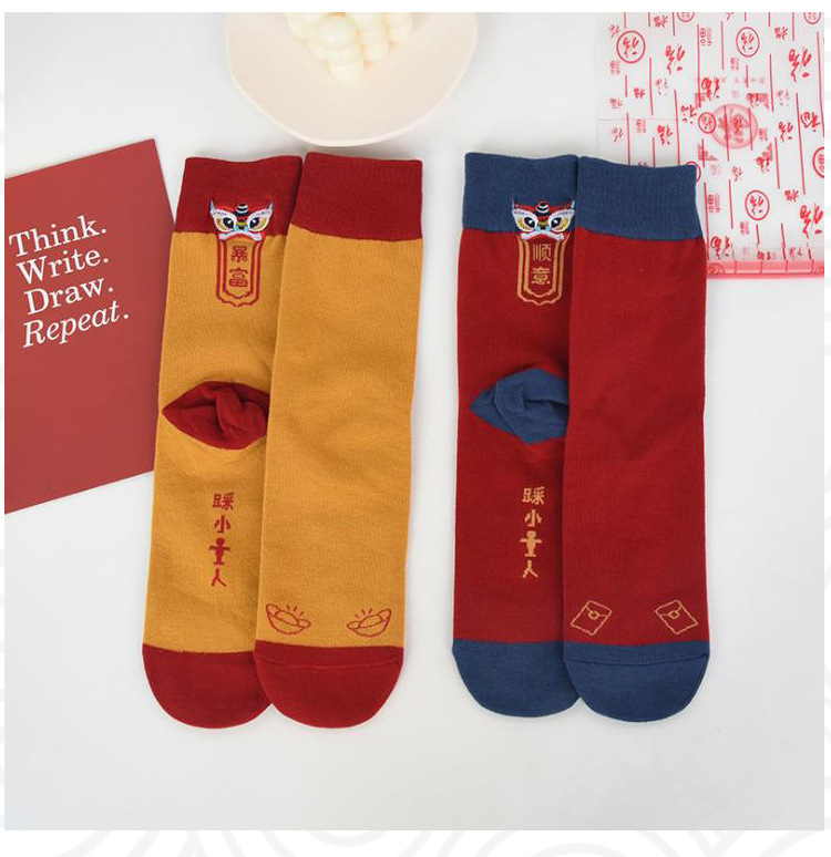 国潮本命年 2024新年虎年大红色袜子本命年刺绣印花礼品盒装国潮中筒棉袜情侣款 本命年中筒袜 幸运袜 礼盒装