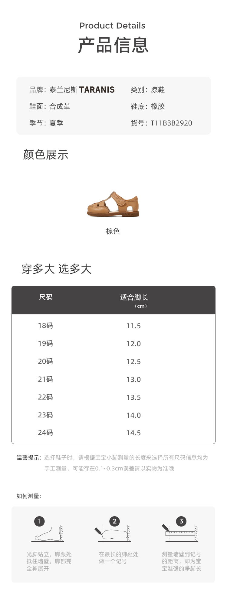 泰兰尼斯夏季婴童段时尚宽楦鞋头学步凉鞋T11B3B2920