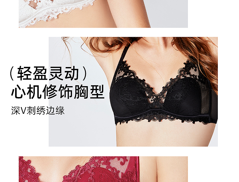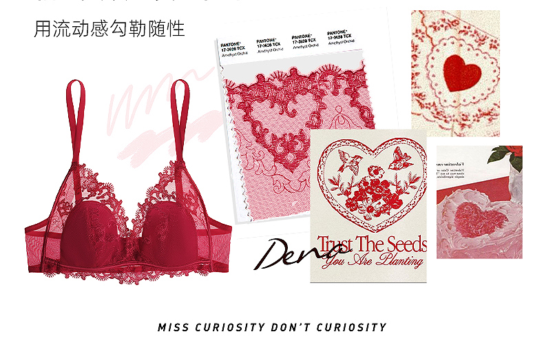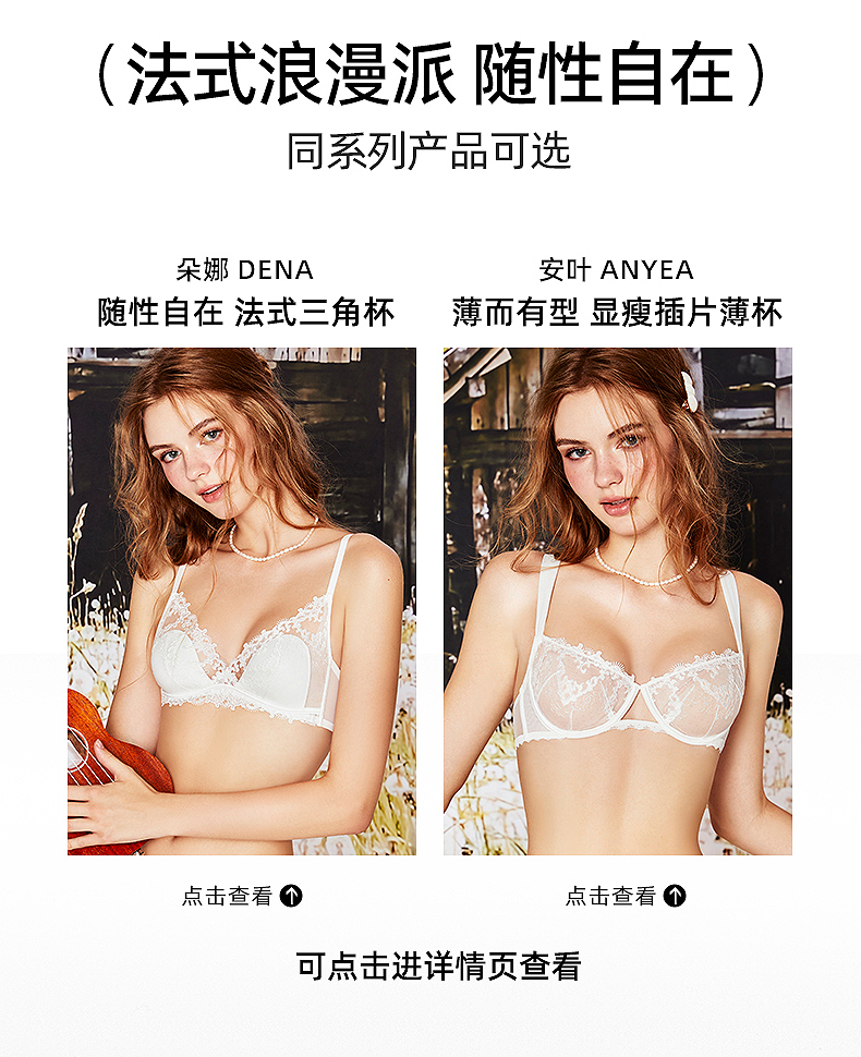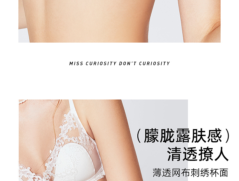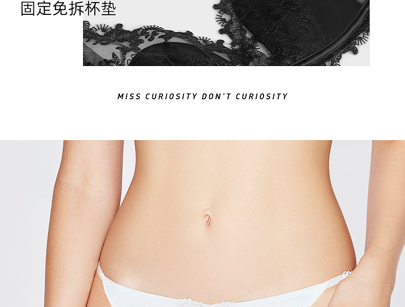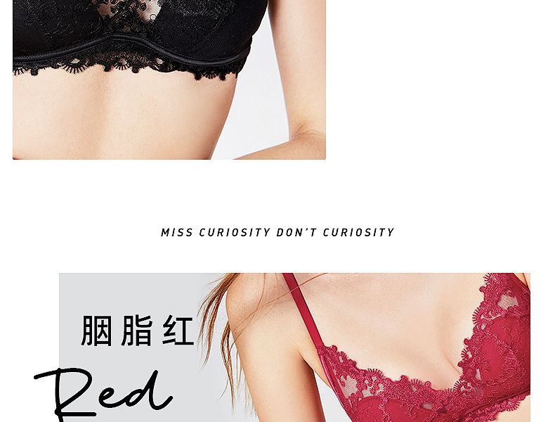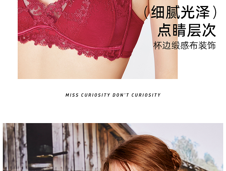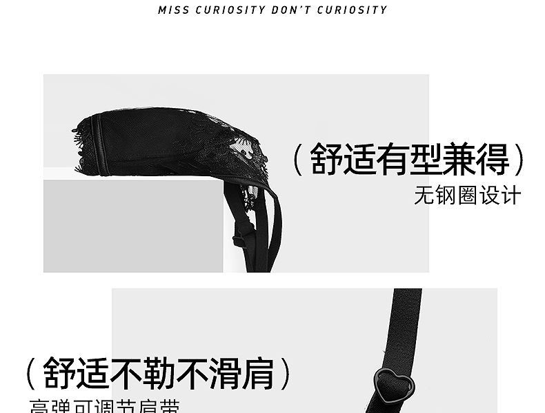 好奇蜜斯蕾丝法式内衣女性感夏薄纯欲小胸文胸罩套装无钢圈三角杯 -Dena 朵娜
