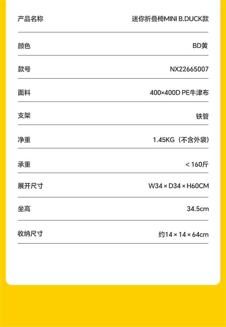 牧高笛(MOBIGARDEN)迷你折叠椅 mini B.Duck款 NX22665007