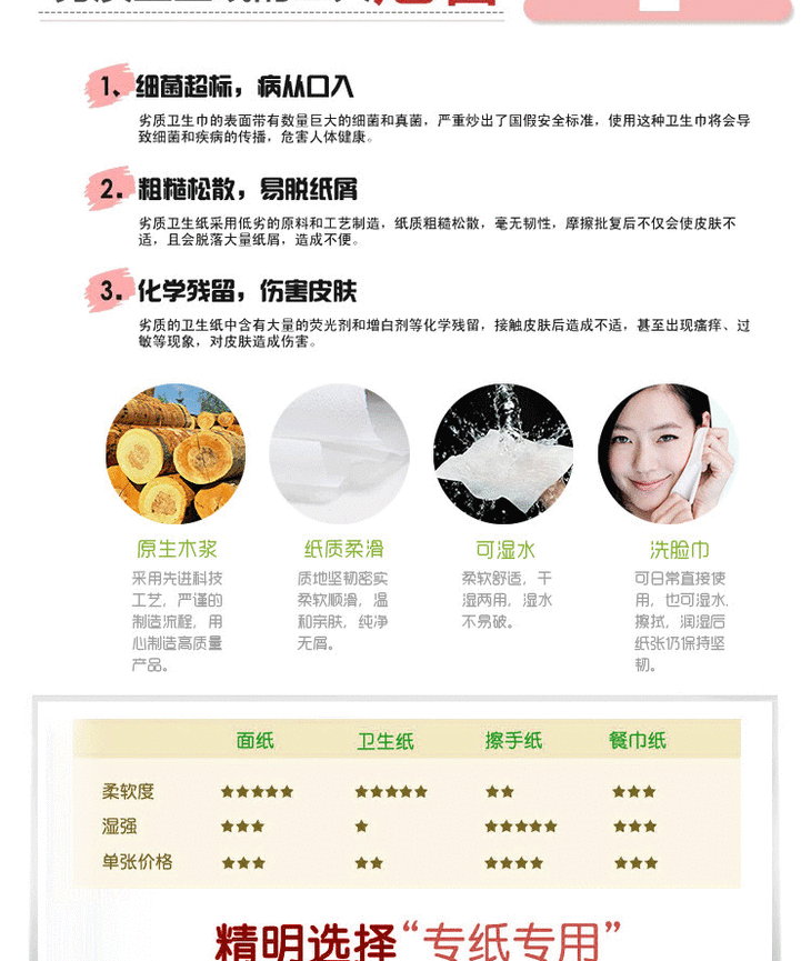 | 产品特点 | 买10送2,柔软舒适好心情,清新香味 |