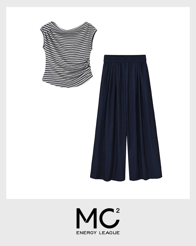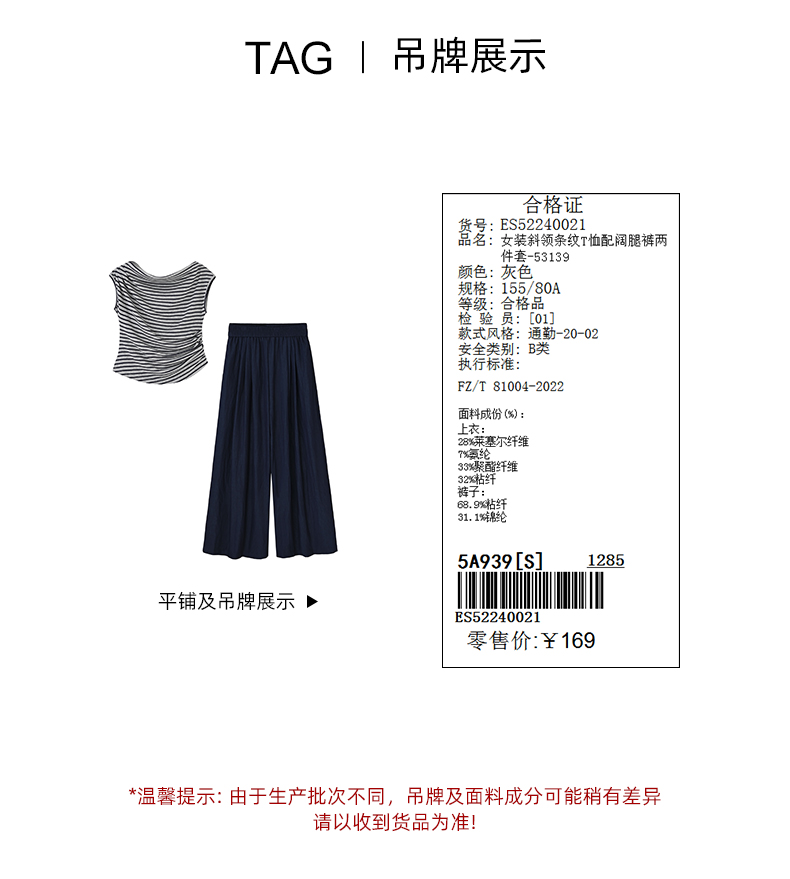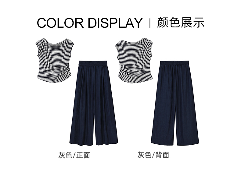 女装斜领条纹T恤配阔腿裤两件套-53139S5224002
