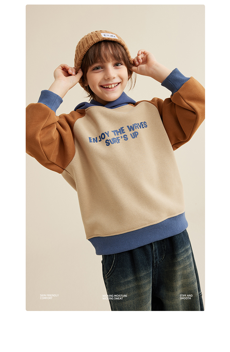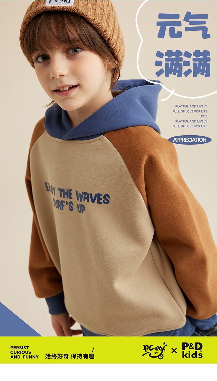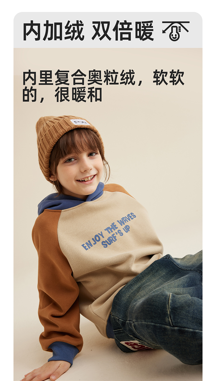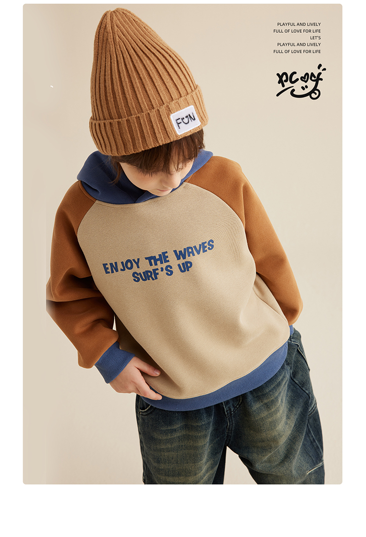 【轻盈有型不软塌 内里复合奥粒绒】儿童字母印花撞色连帽卫衣PQWY2330