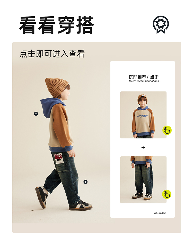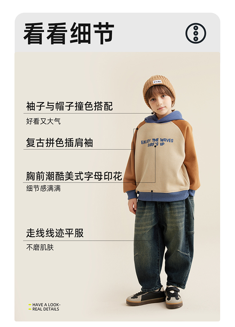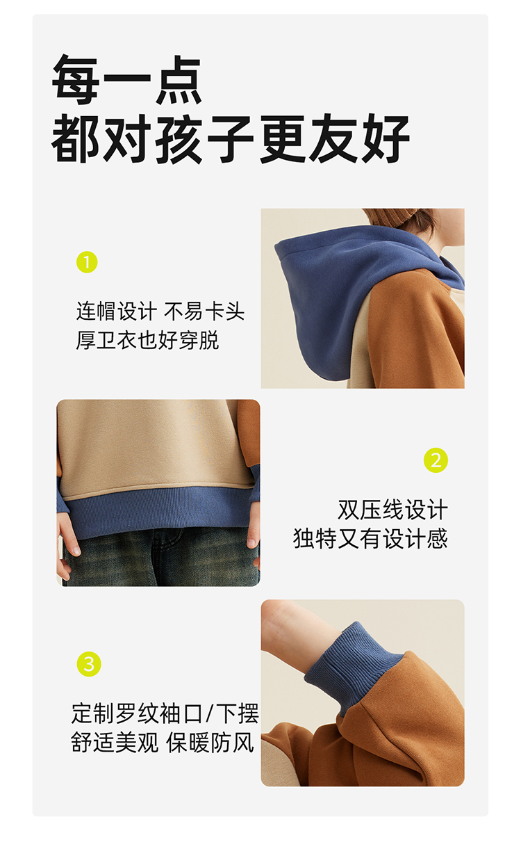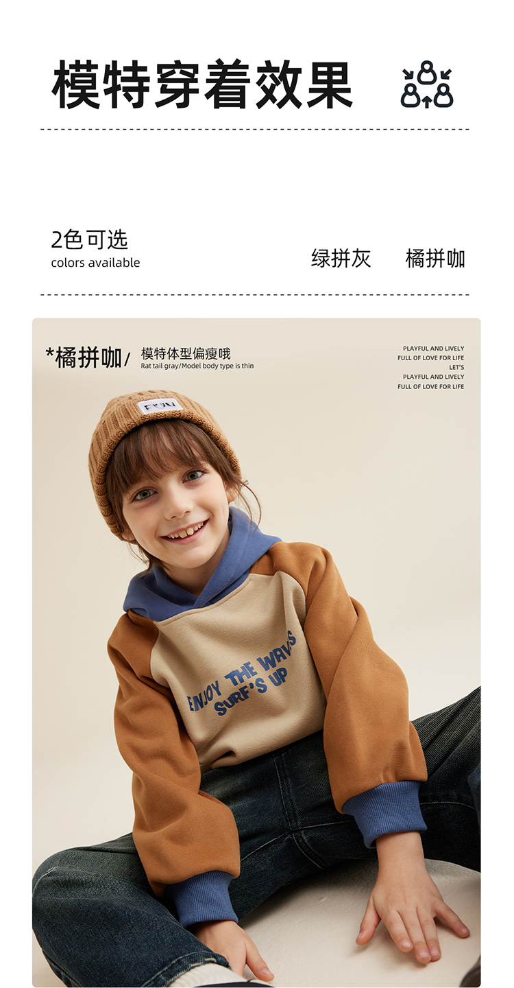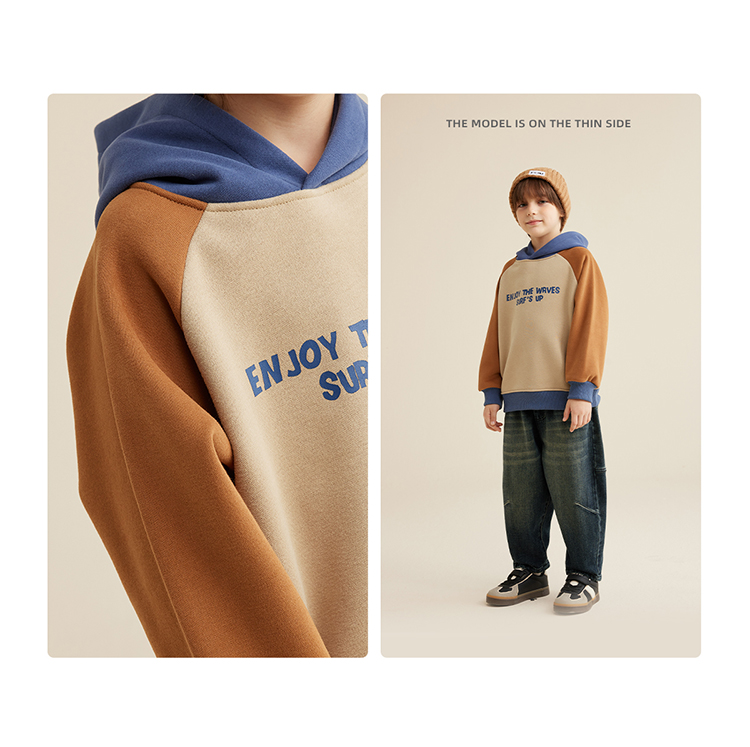 【轻盈有型不软塌 内里复合奥粒绒】儿童字母印花撞色连帽卫衣PQWY2330