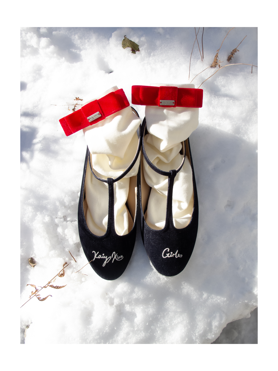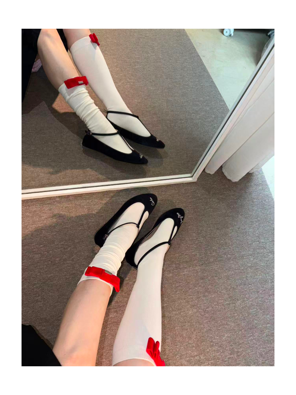Kaiy Xiao 红丝绒蝴蝶结中筒袜