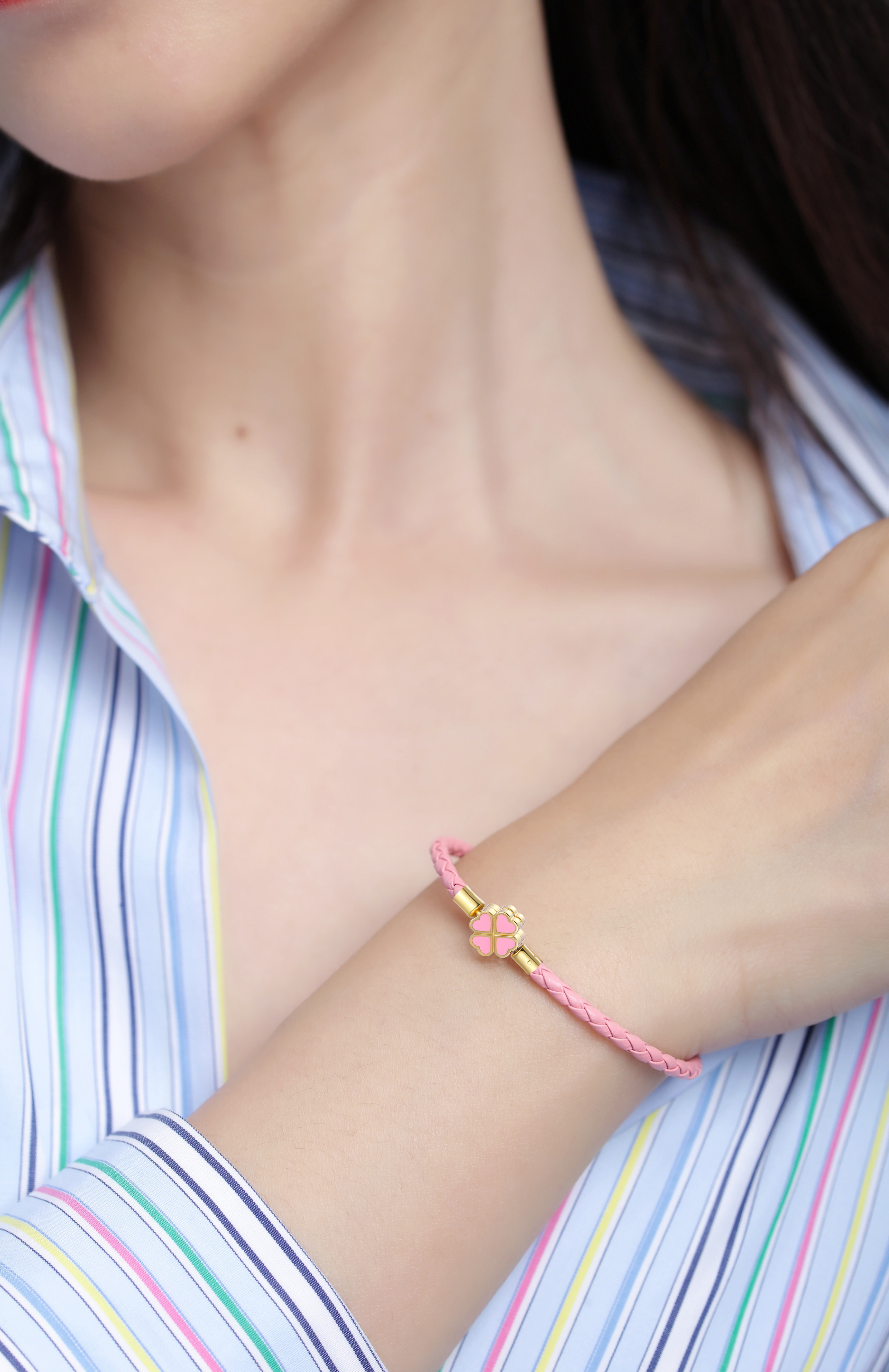 皮绳手链是时尚又百搭的宝藏单品,这次推出的新品【幸运&爱】手绳,设计独特别致,配色清新淡雅,是经典的开合扣。