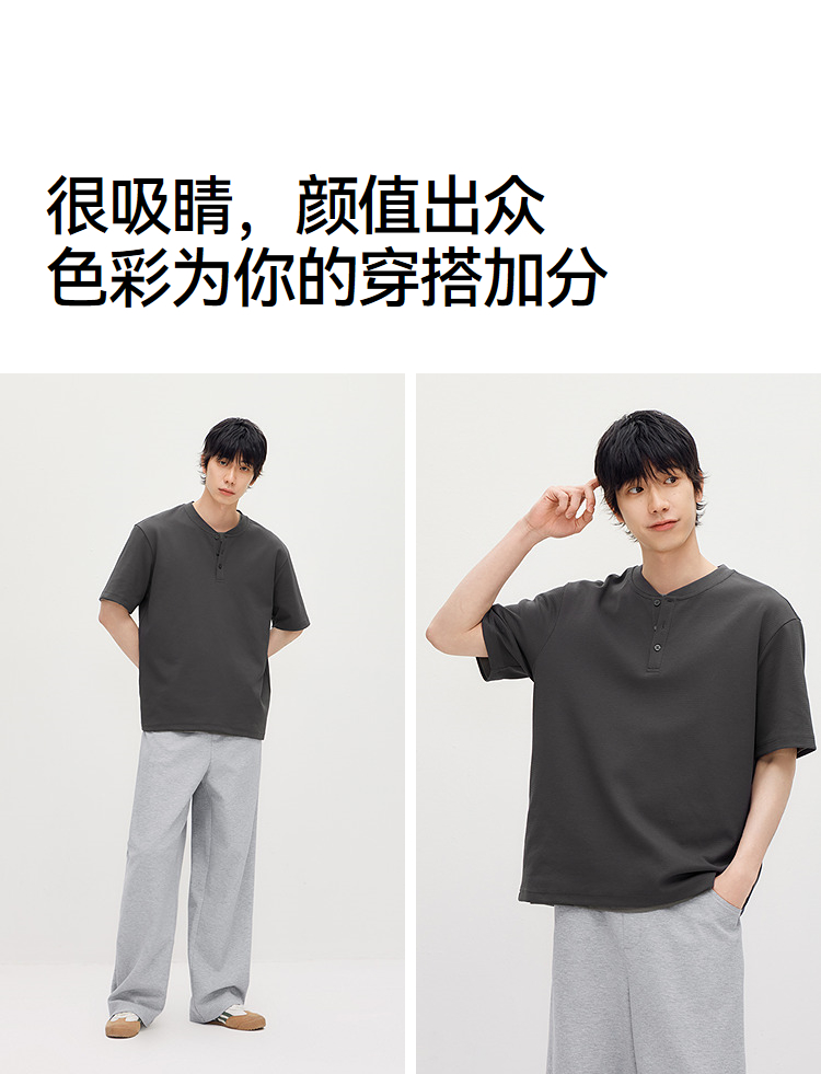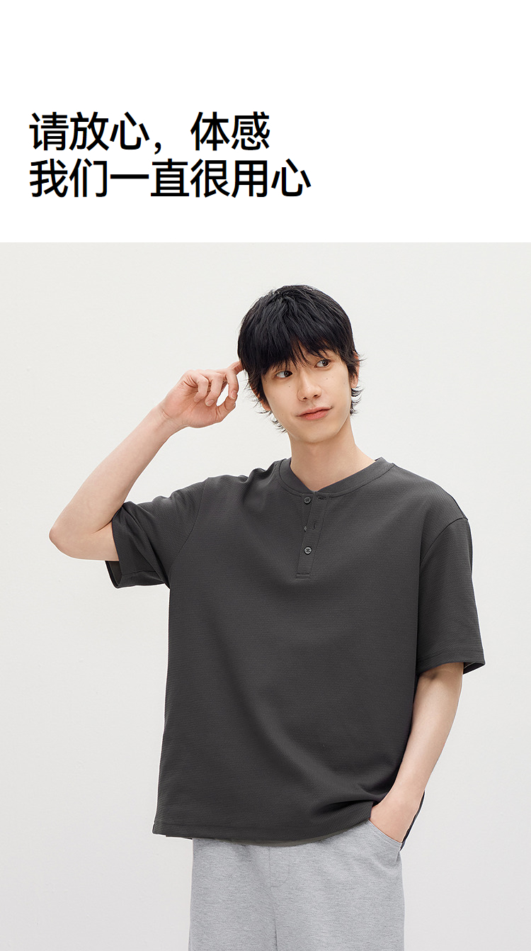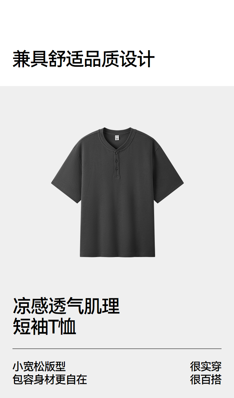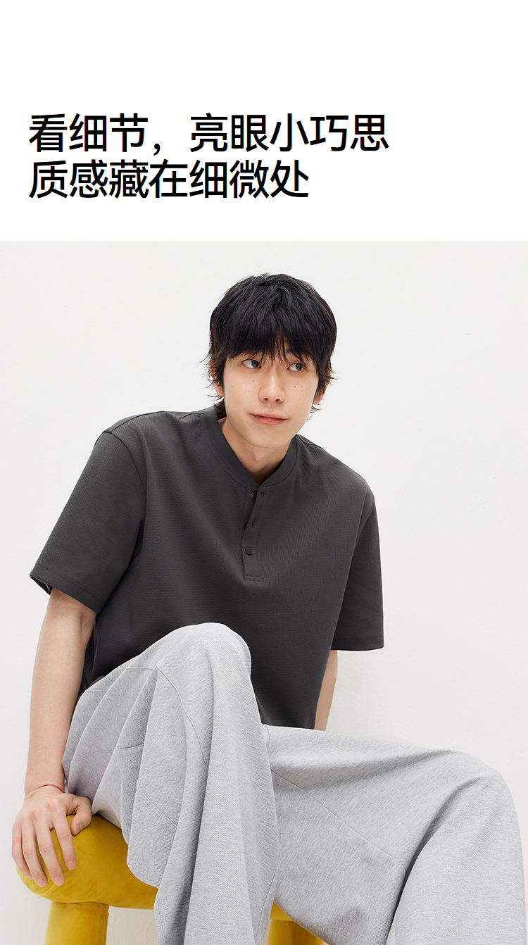 森马短袖T恤男夏季亨利领半开襟上衣2026新款凉感透气纯色针织衫