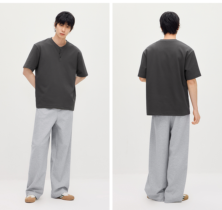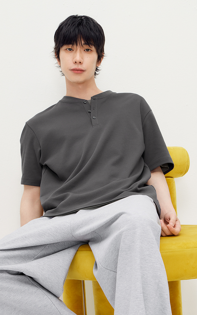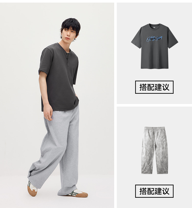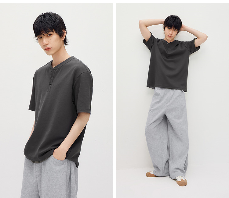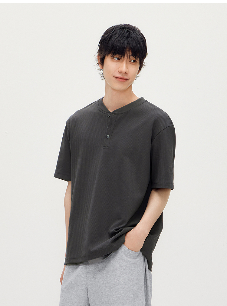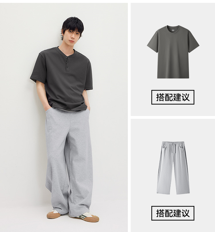 森马短袖T恤男夏季亨利领半开襟上衣2026新款凉感透气纯色针织衫