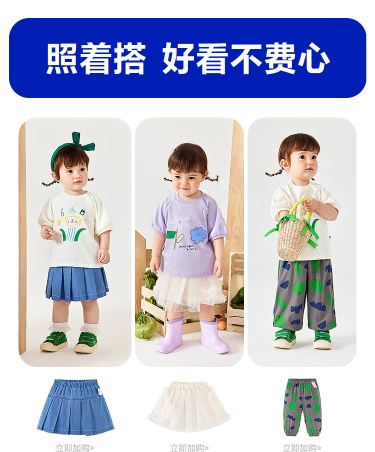 【纯棉】迷你巴拉女童短袖T亲肤宝宝不闷汗纯棉甜美T恤