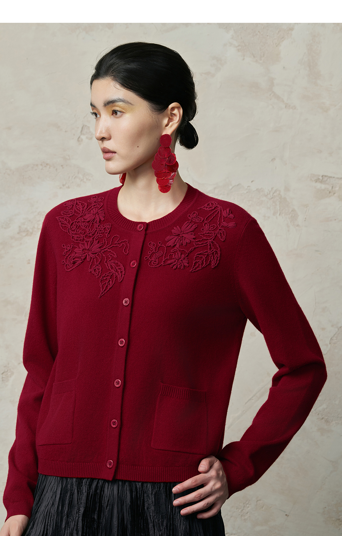 【林栖设计小店】【现货】全羊毛毛织上衣盘绳绣开衫气质新中式2025秋季新款多色毛衣1953045