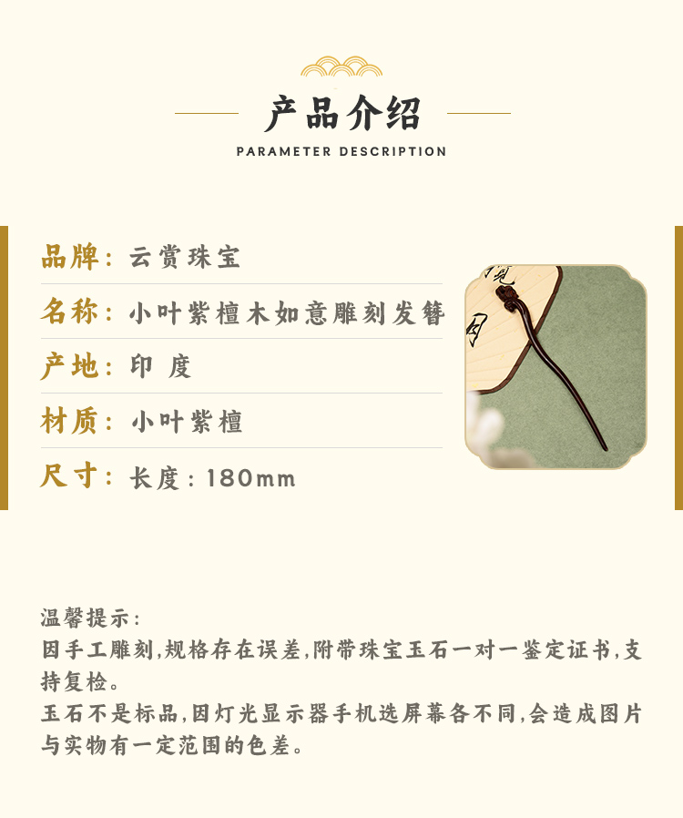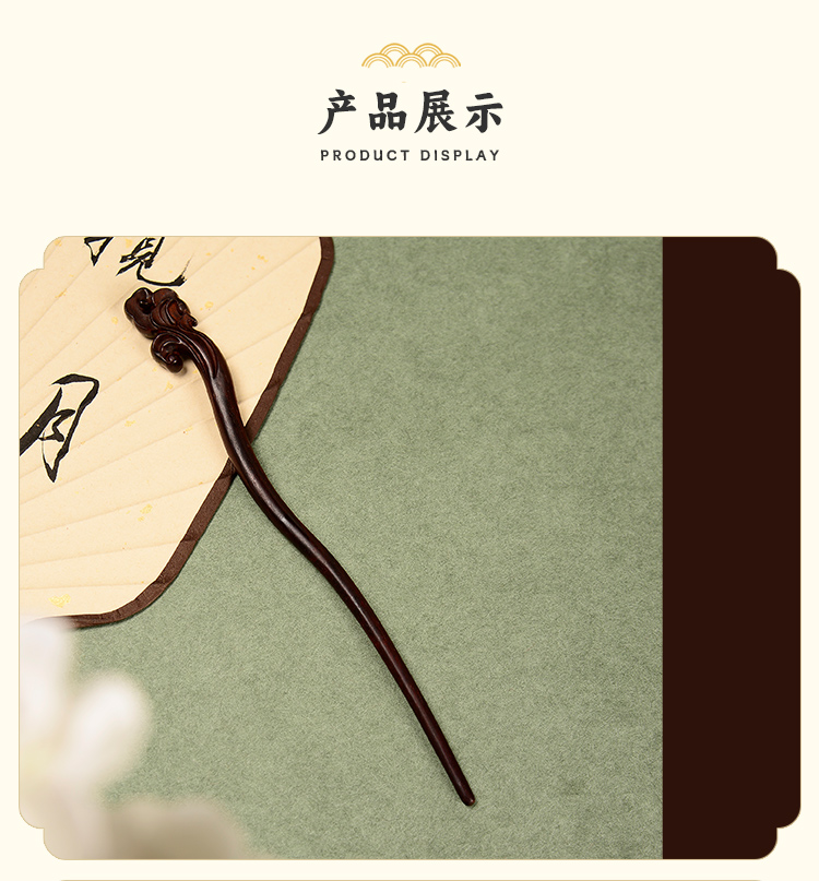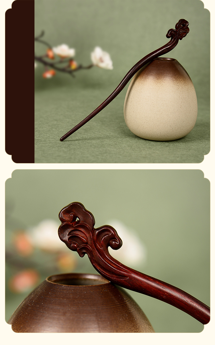 ysfz-03001【云赏珠宝】新中式小叶紫檀木如意雕刻发簪