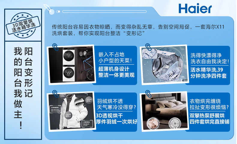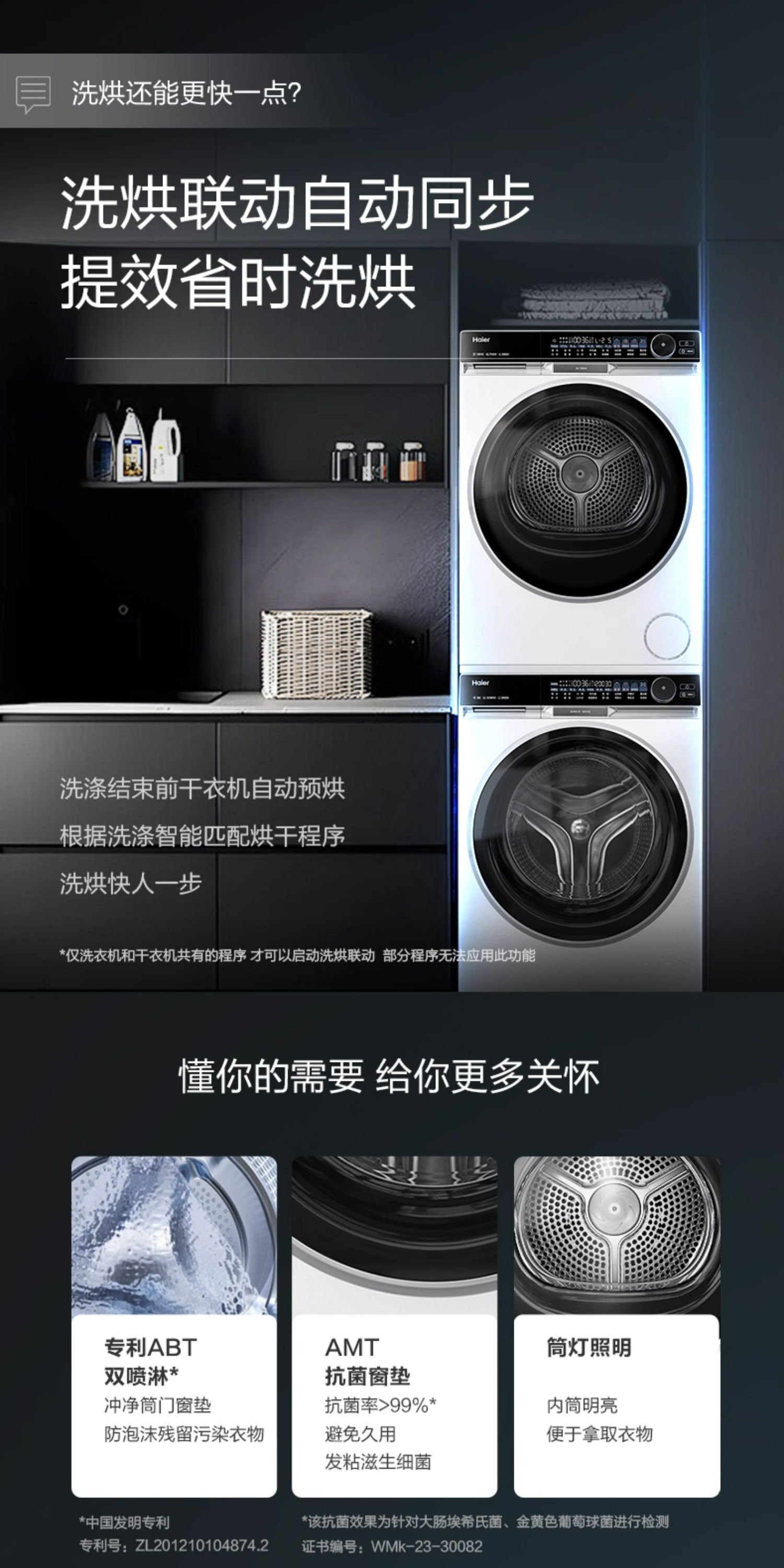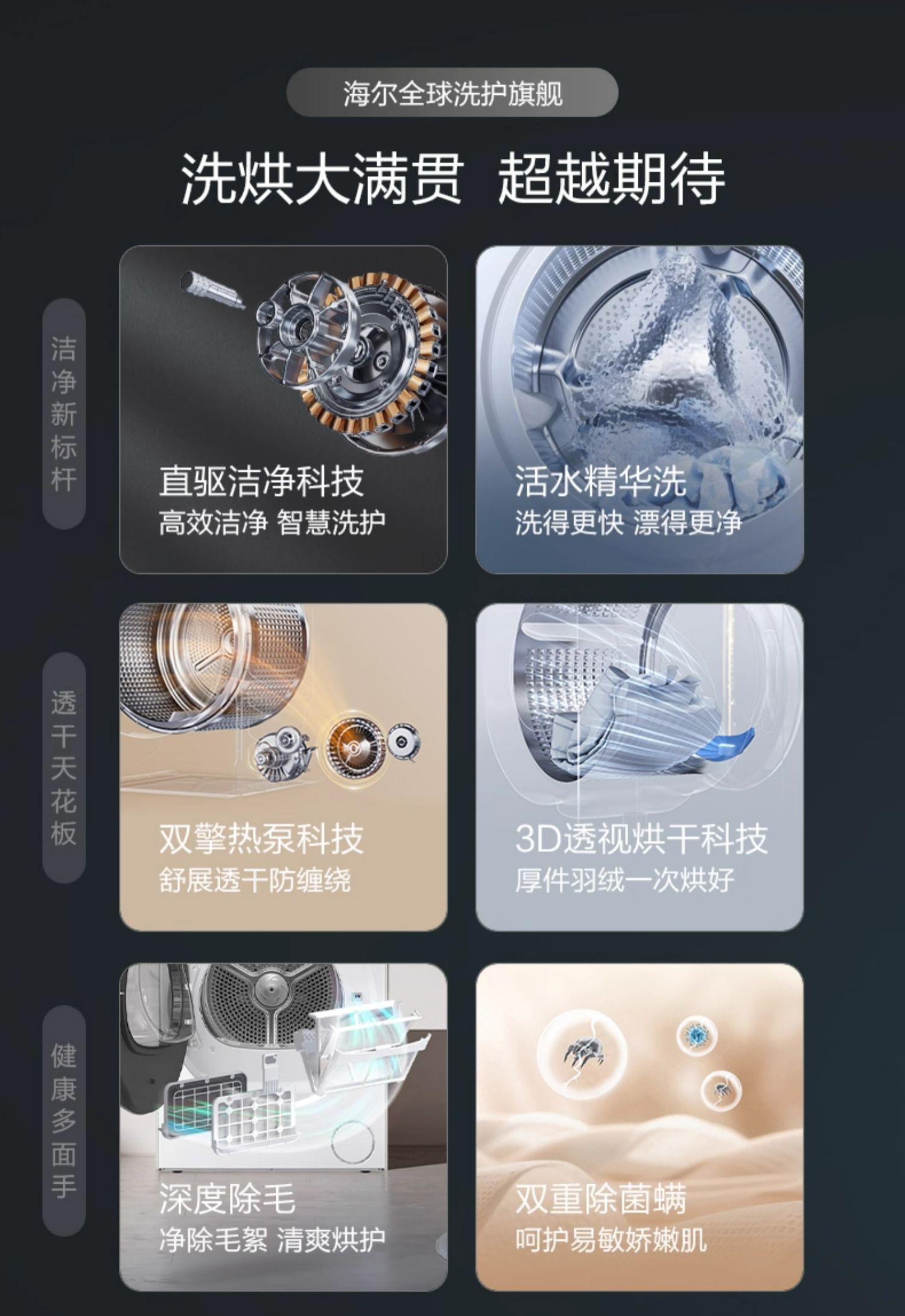 海尔麦浪X11洗烘套装536白精华洗滚筒洗衣机3D双擎热泵烘干机