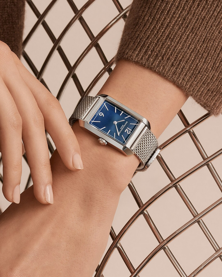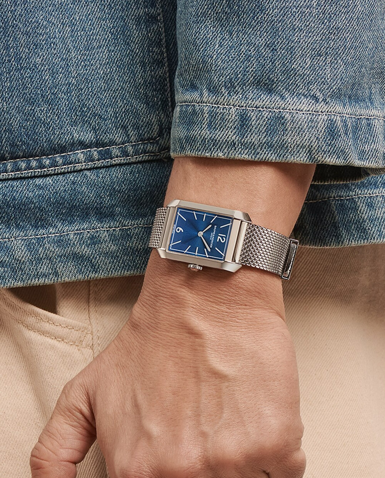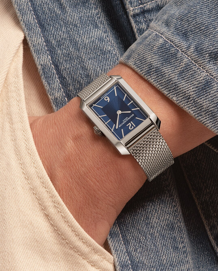 镜面材质 | 蓝宝石水晶玻璃 | 表盘 | 精钢表壳 蓝色表盘,铆钉式镀铑阿拉伯数字与表刻,镀铑剑形指针,灰色分钟刻度 以4颗螺钉固定的密闭表背 |