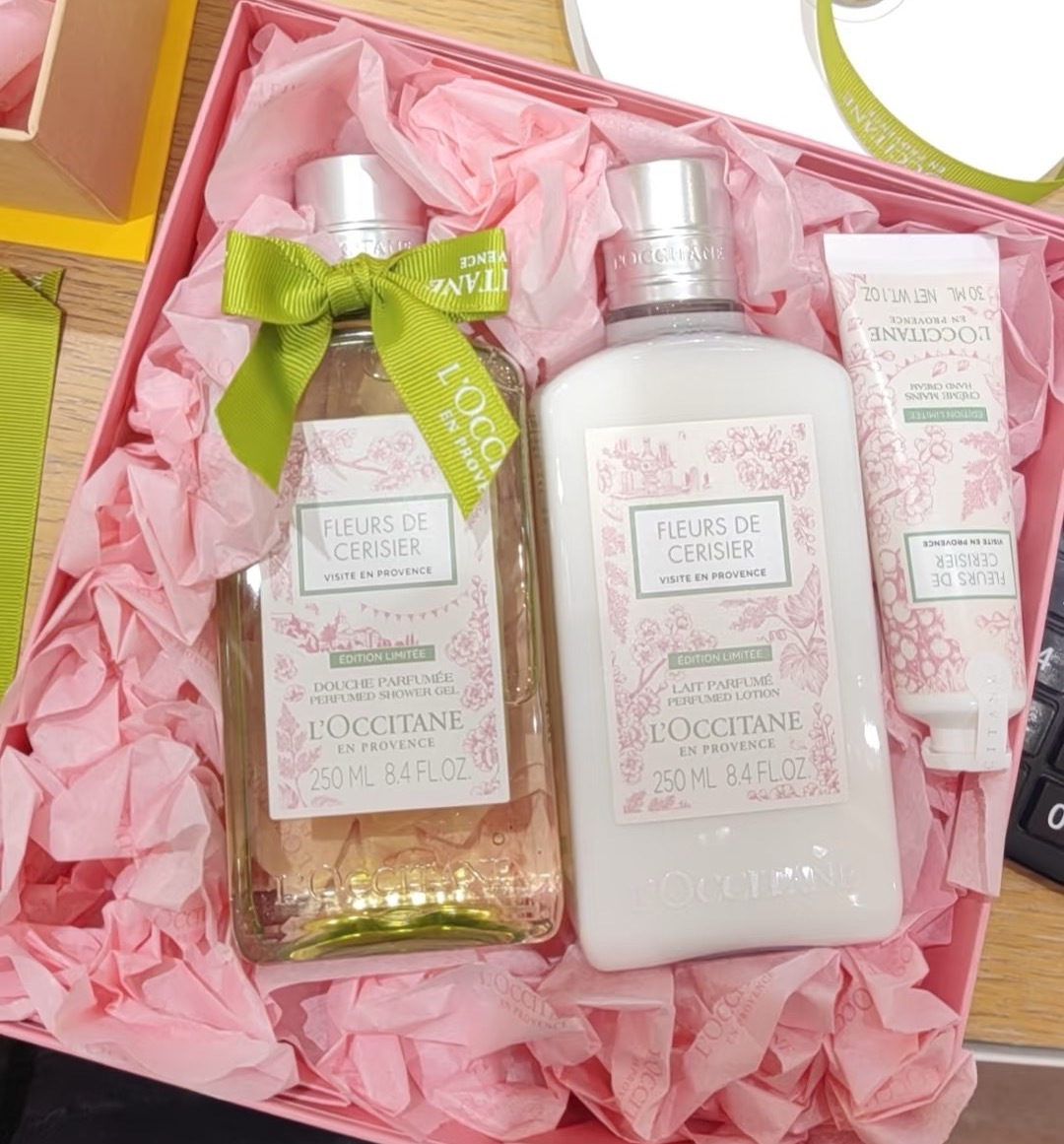 欧舒丹青提恋樱‼️青提沐浴露250ml+青提身体乳250ml+青提护手霜30ml带礼盒礼品袋