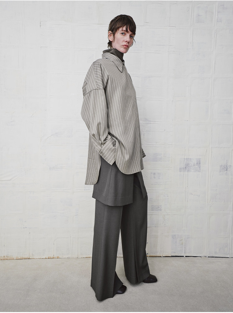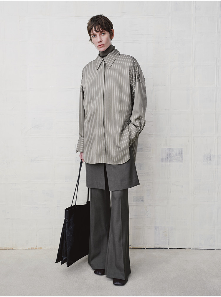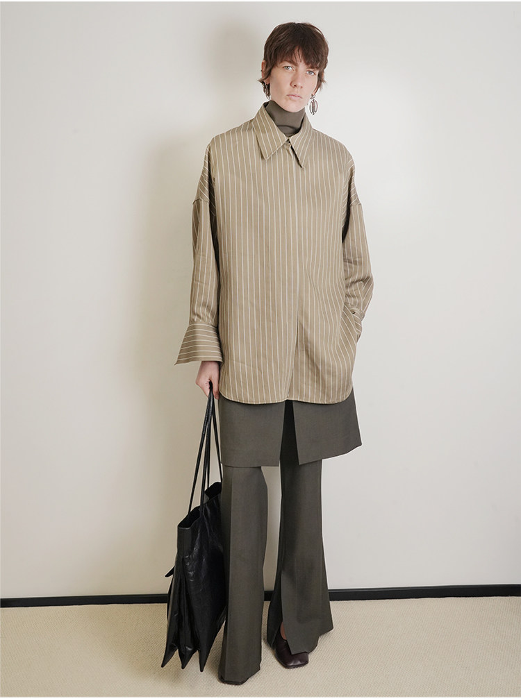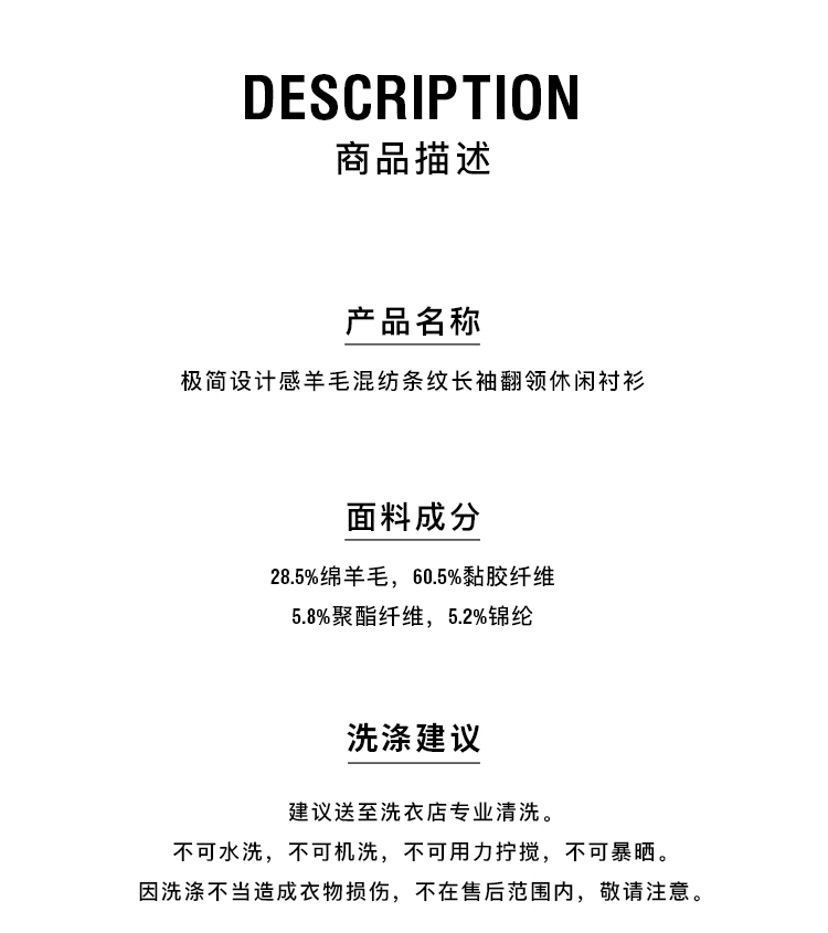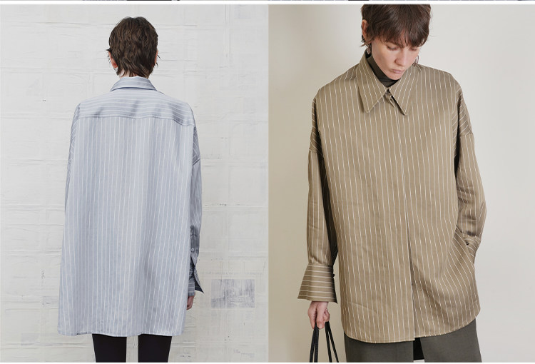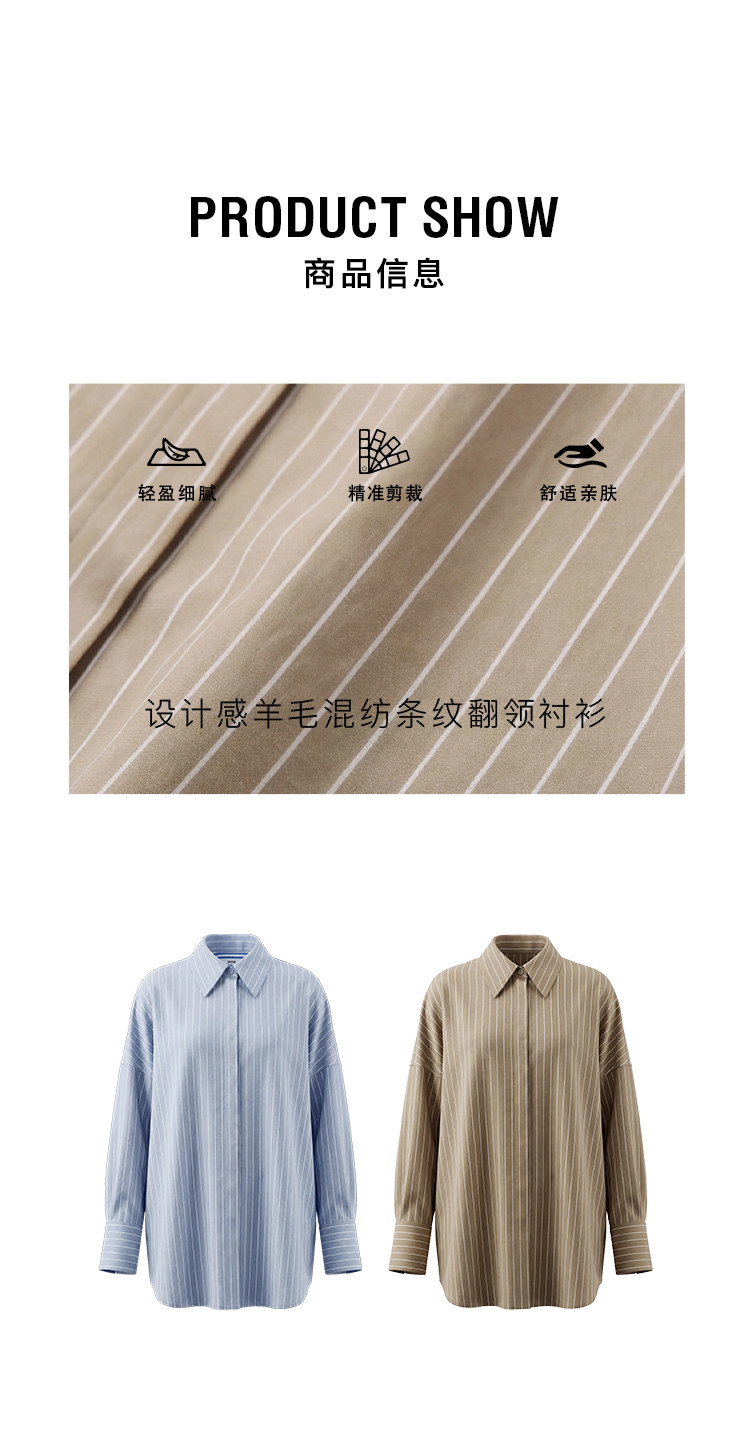 HIDEMI 极简设计感羊毛混纺条纹长袖翻领休闲衬衫