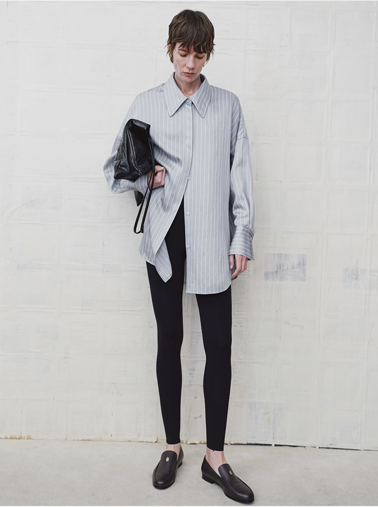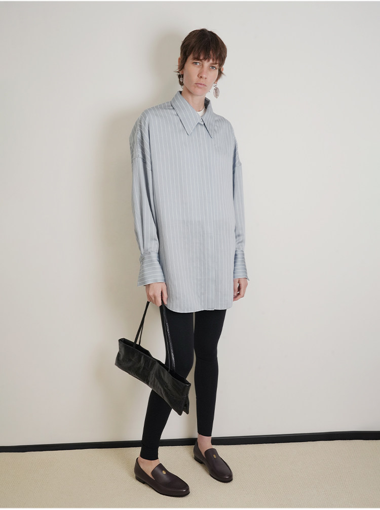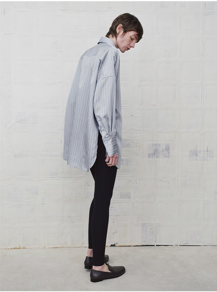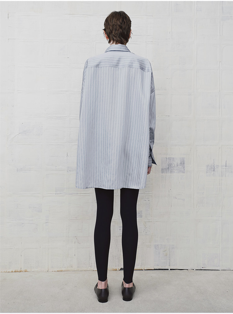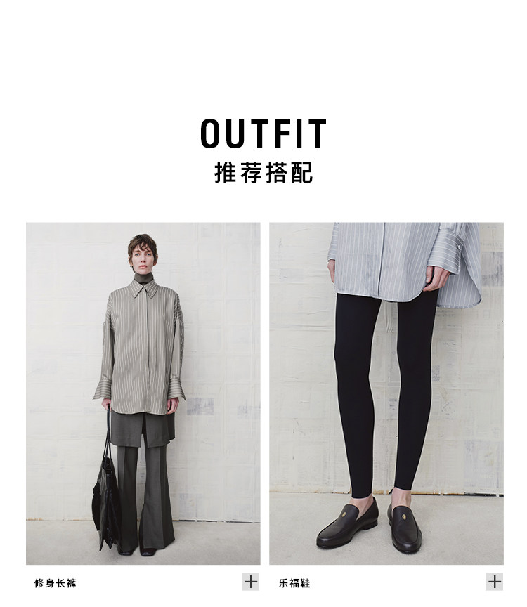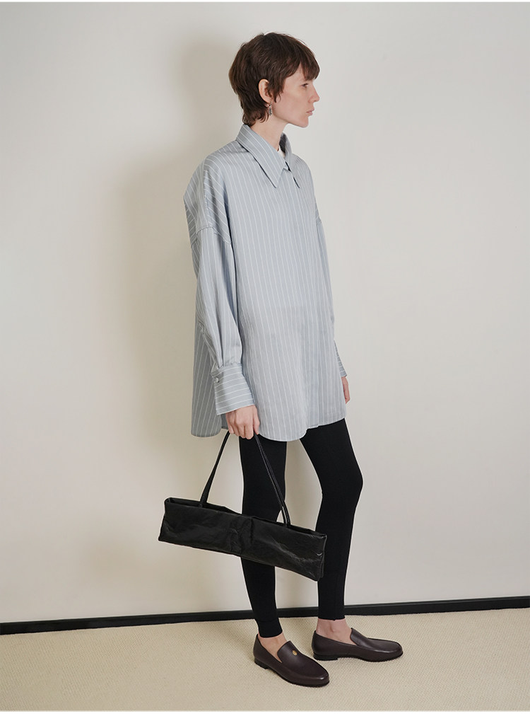 HIDEMI 极简设计感羊毛混纺条纹长袖翻领休闲衬衫