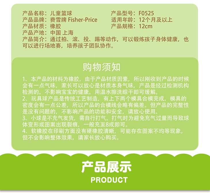 费雪 儿童篮球 宝宝健身球 儿童玩具 颜色混发 F0525JPY带授权招加盟代理