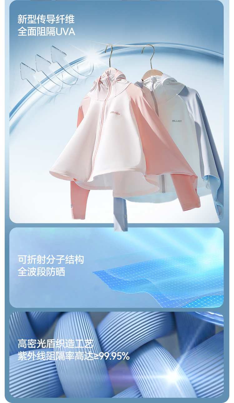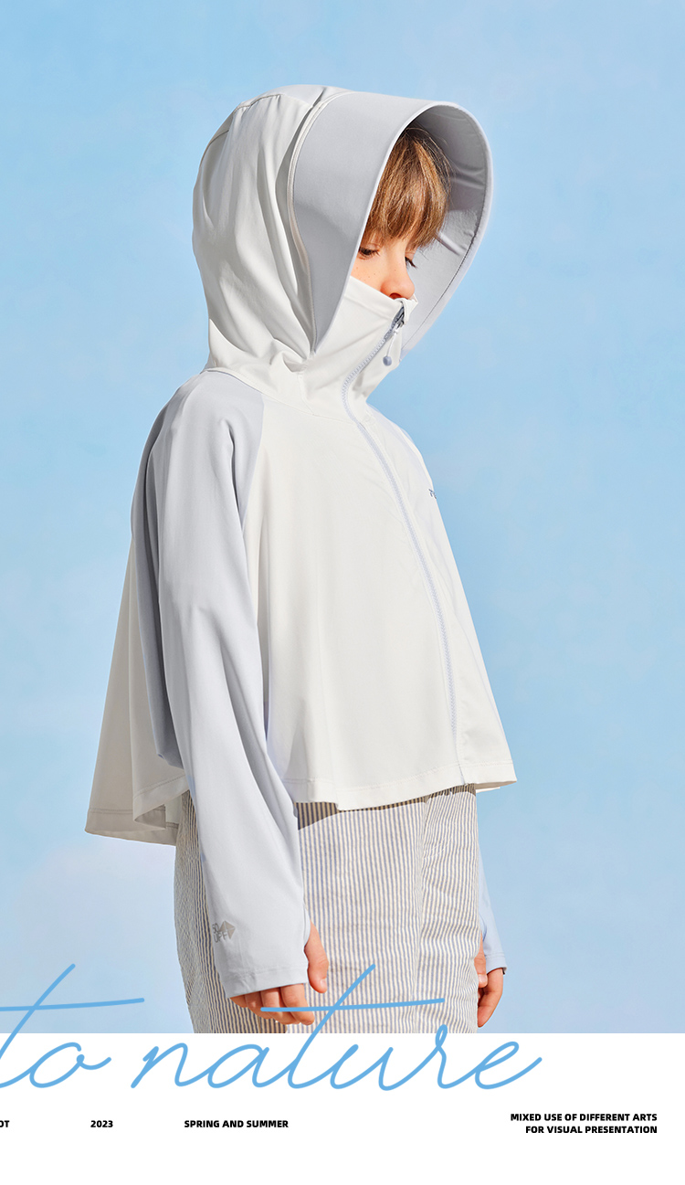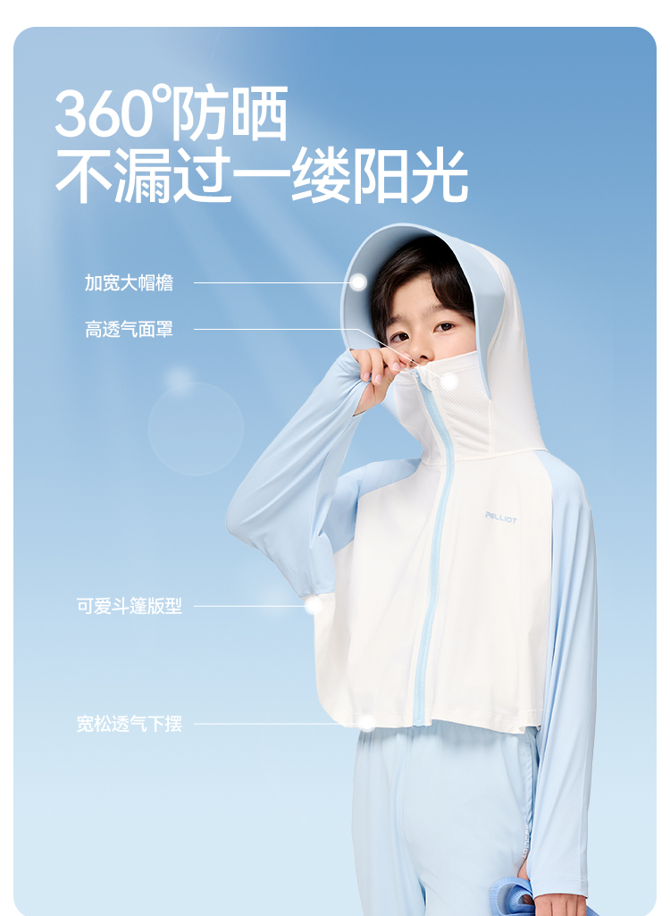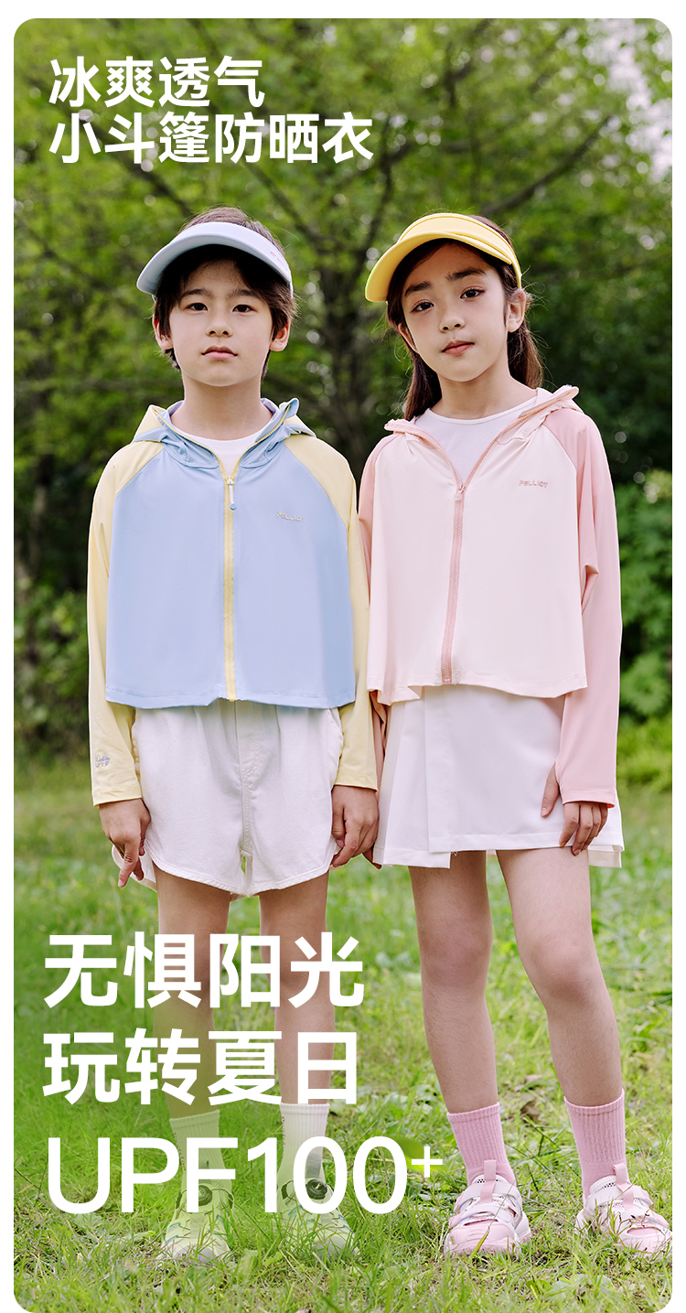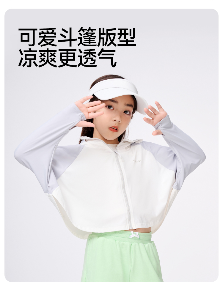 伯希和户外新款短款儿童防晒衣女透气宽松轻薄男童冰感斗篷皮肤衣13221245