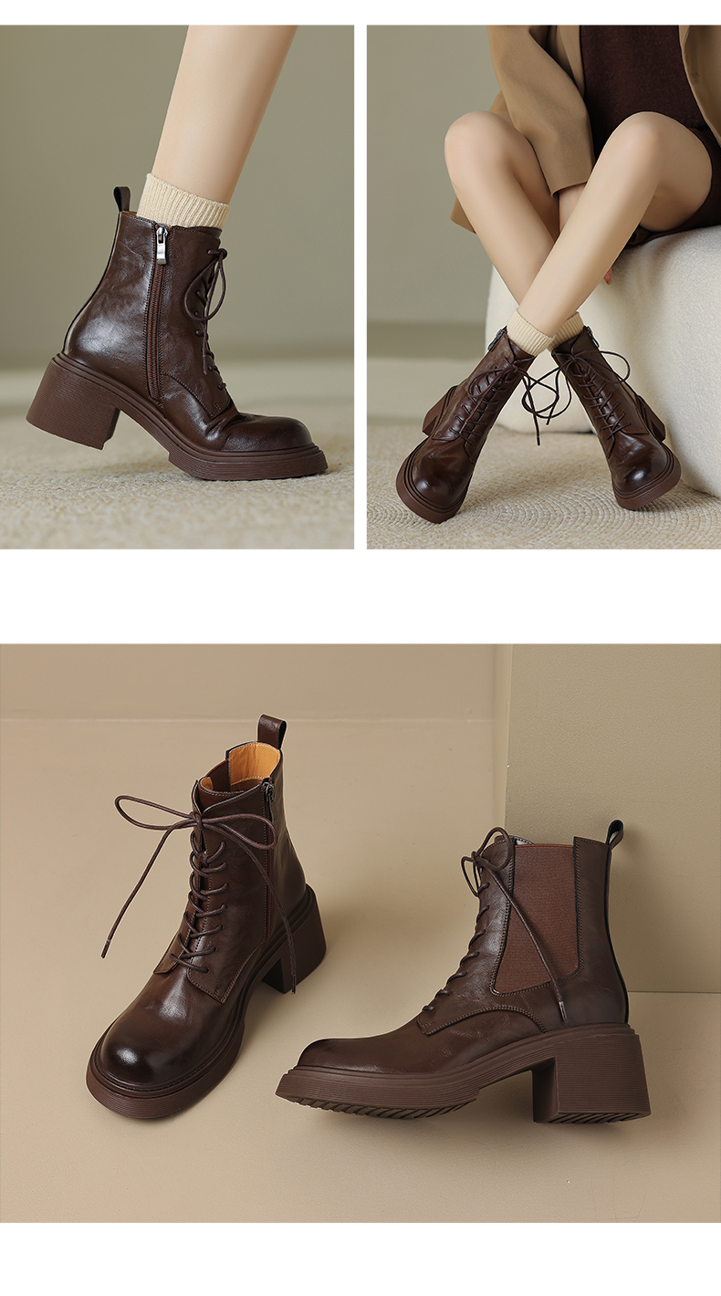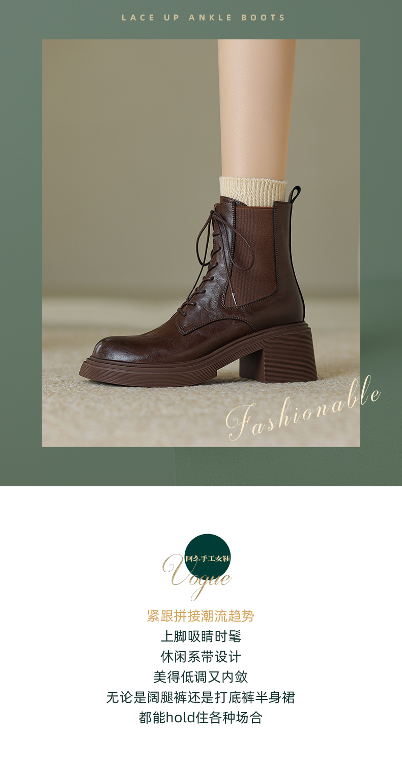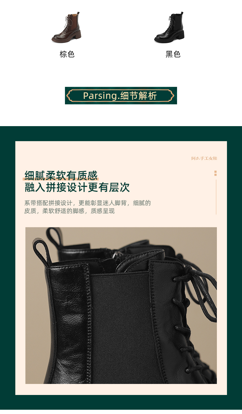 阿么手工女鞋冬季真皮新款马丁靴厚底6CM英伦风复古短靴透气百搭