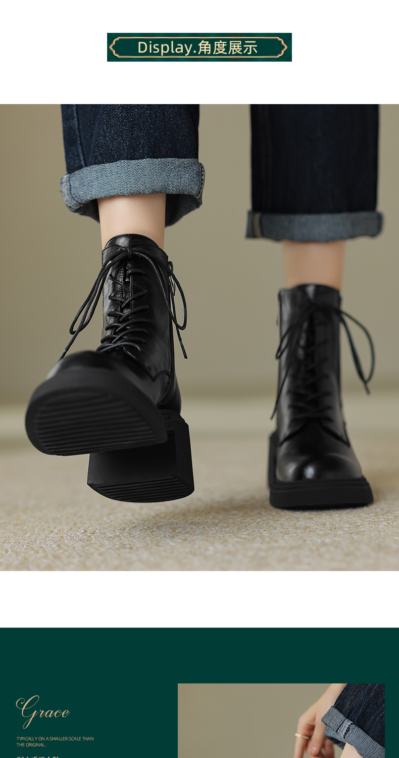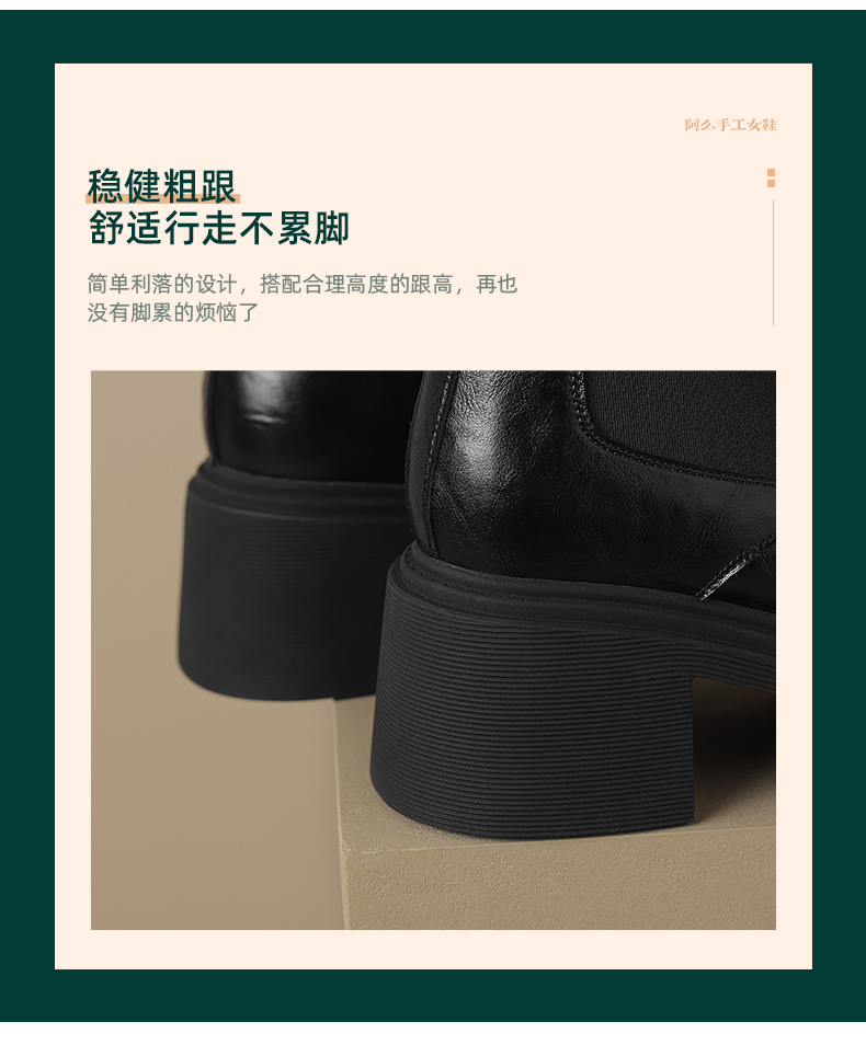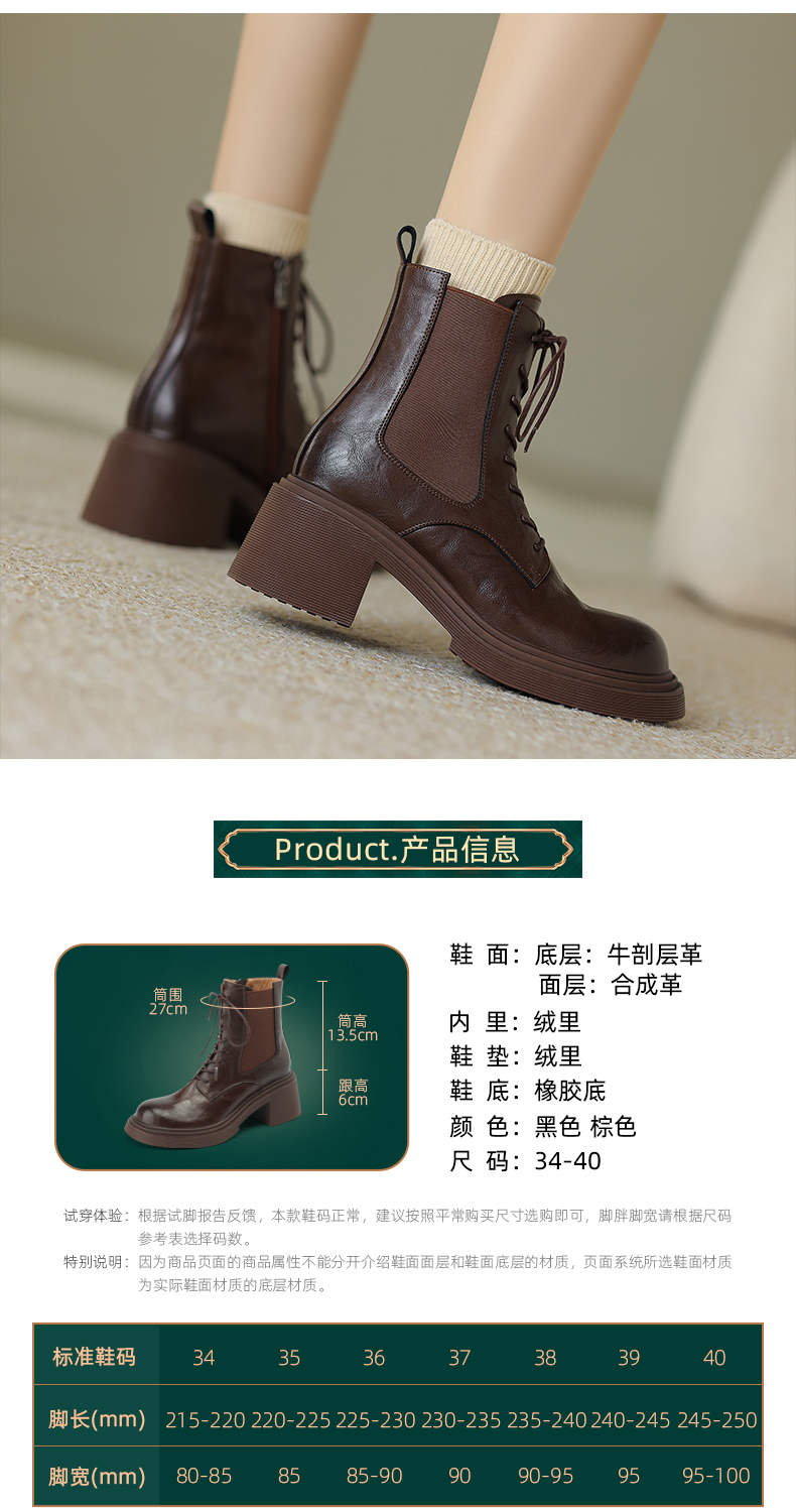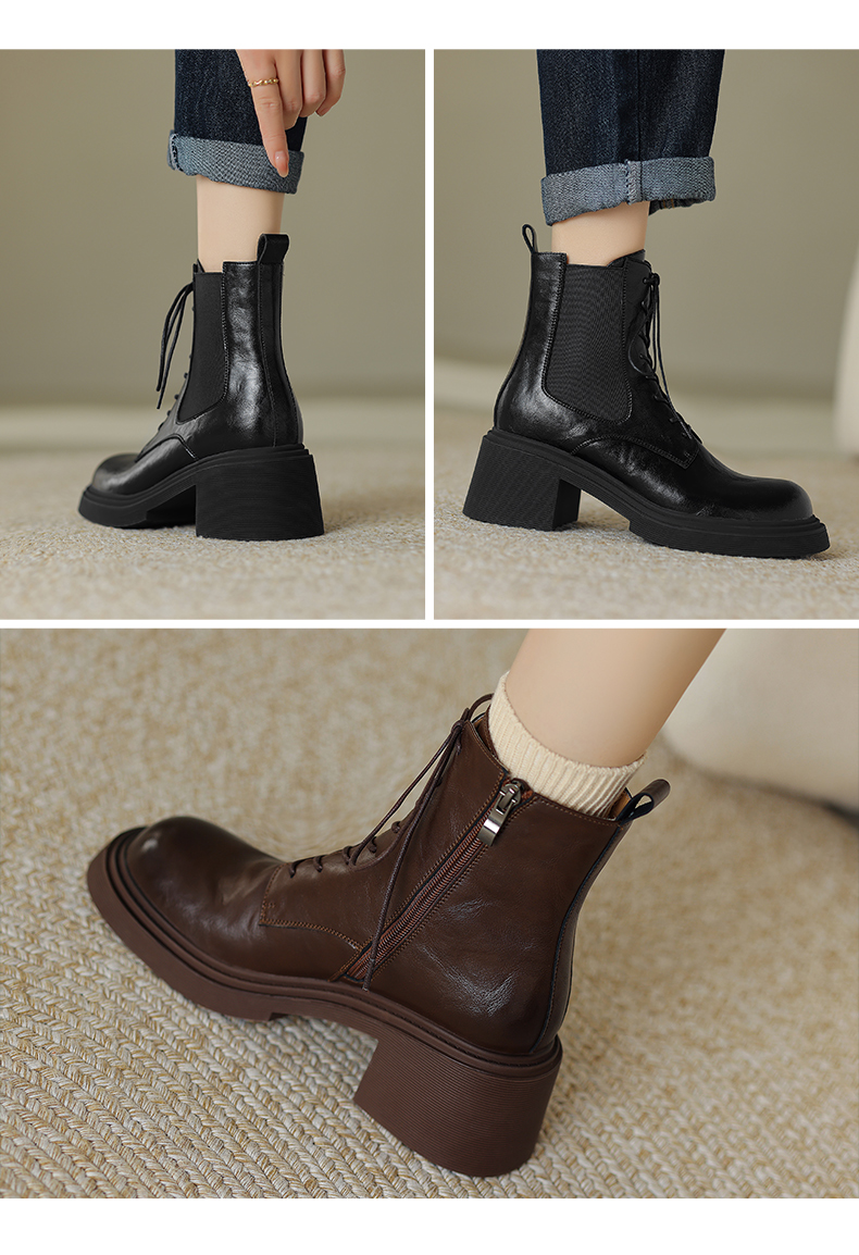 阿么手工女鞋冬季真皮新款马丁靴厚底6CM英伦风复古短靴透气百搭
