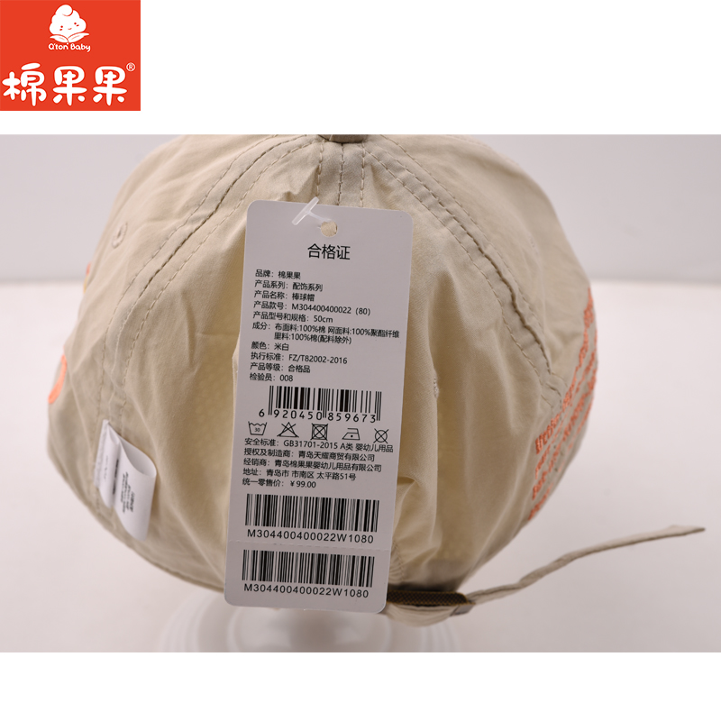 棉果果春秋新品男童女童白色百搭棒球帽M304400400022