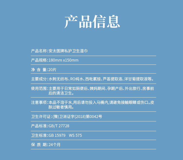 安太医 洁爱湿巾,事前事后来一片,干净卫生20片装