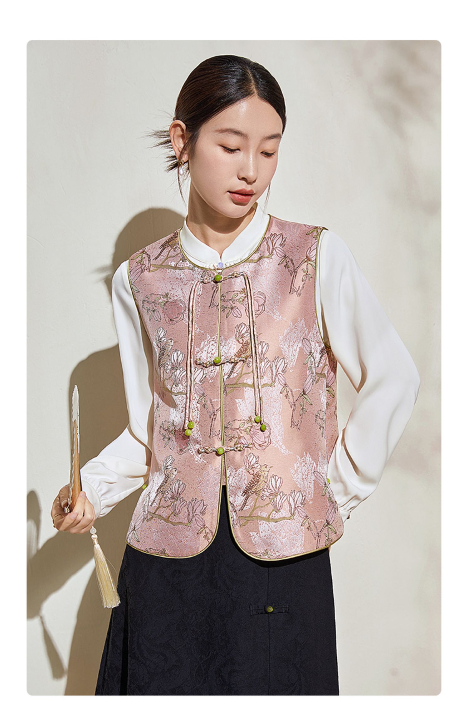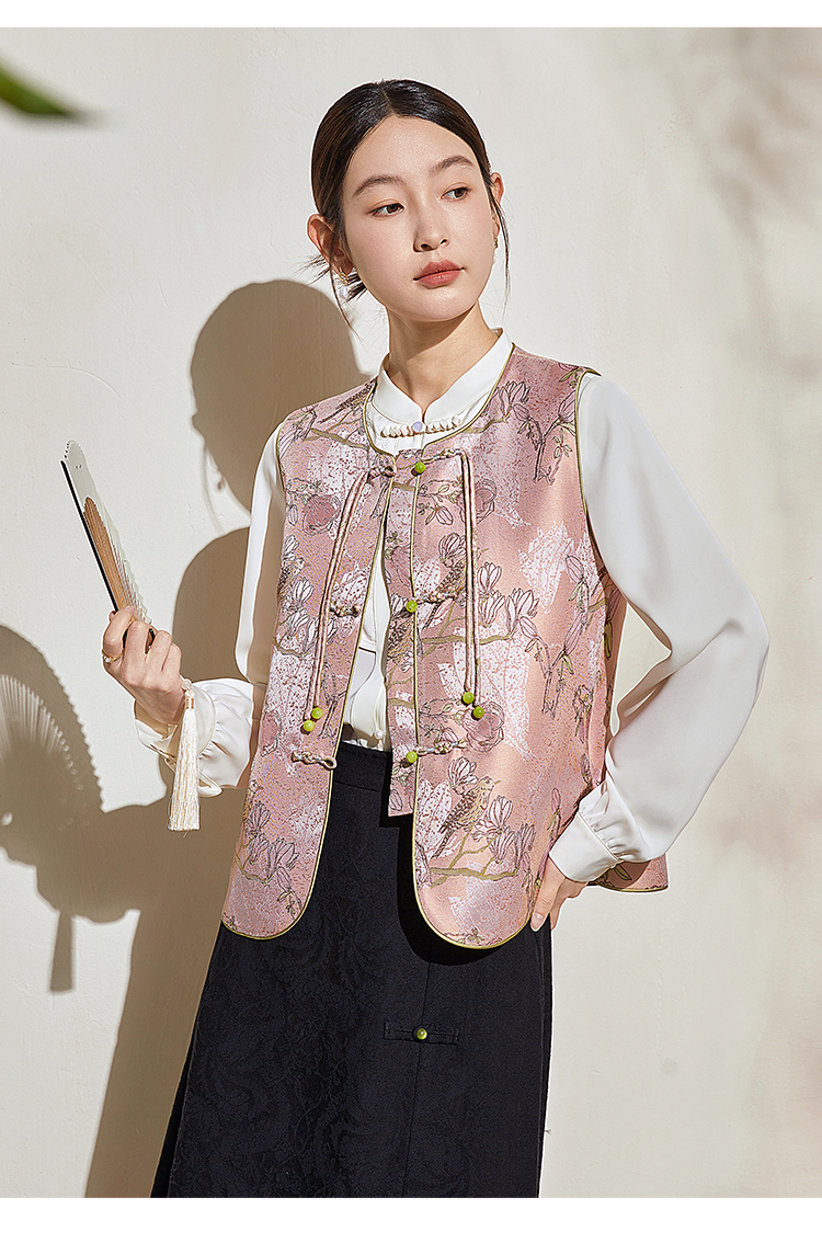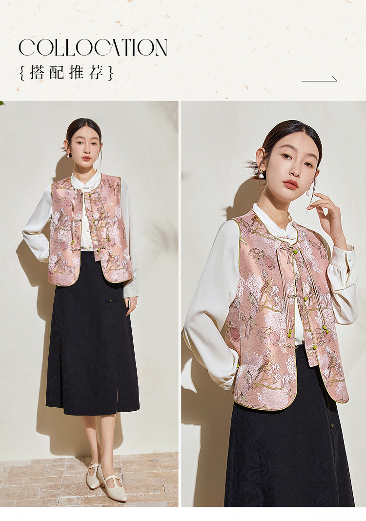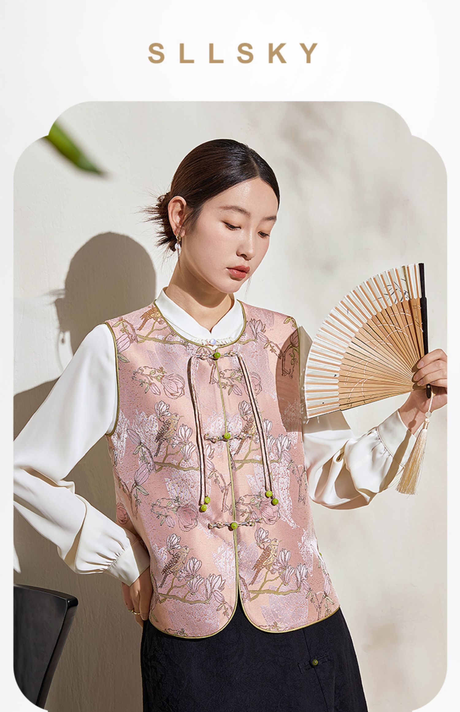 【年货节】熙世界国风花鸟提花马甲高级感流苏玉石盘扣新中式无袖坎肩背心