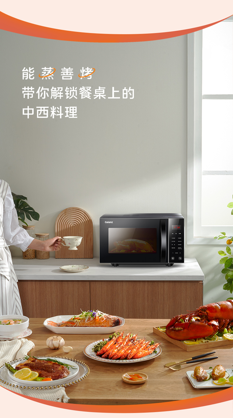【秒杀】格兰仕微波炉25升大容量光波烧烤 900W速热 C2S0-GF5
