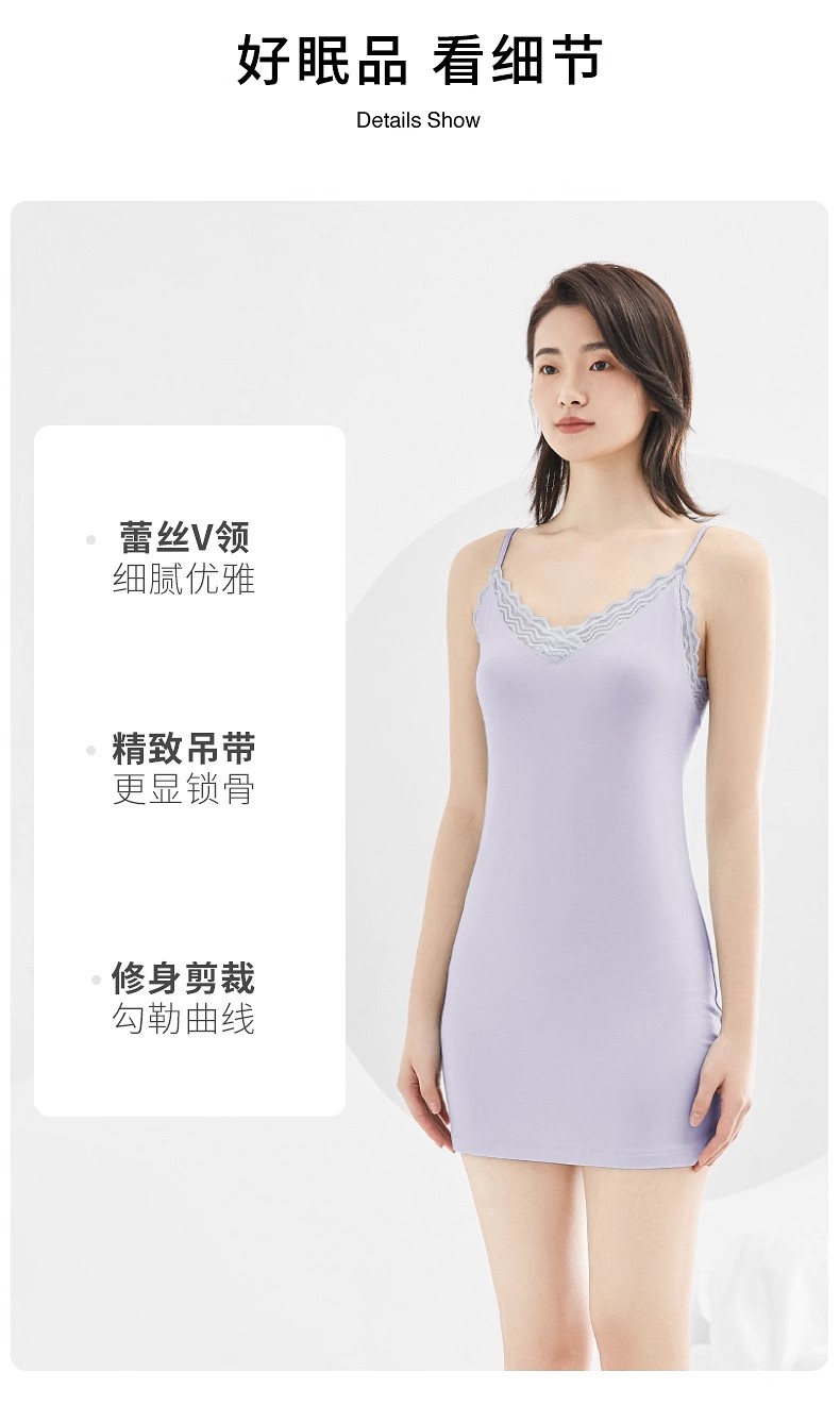 【60元秒杀】谷梦 领性感吊带睡裙女舒适亲肤抗菌睡衣新款家居服