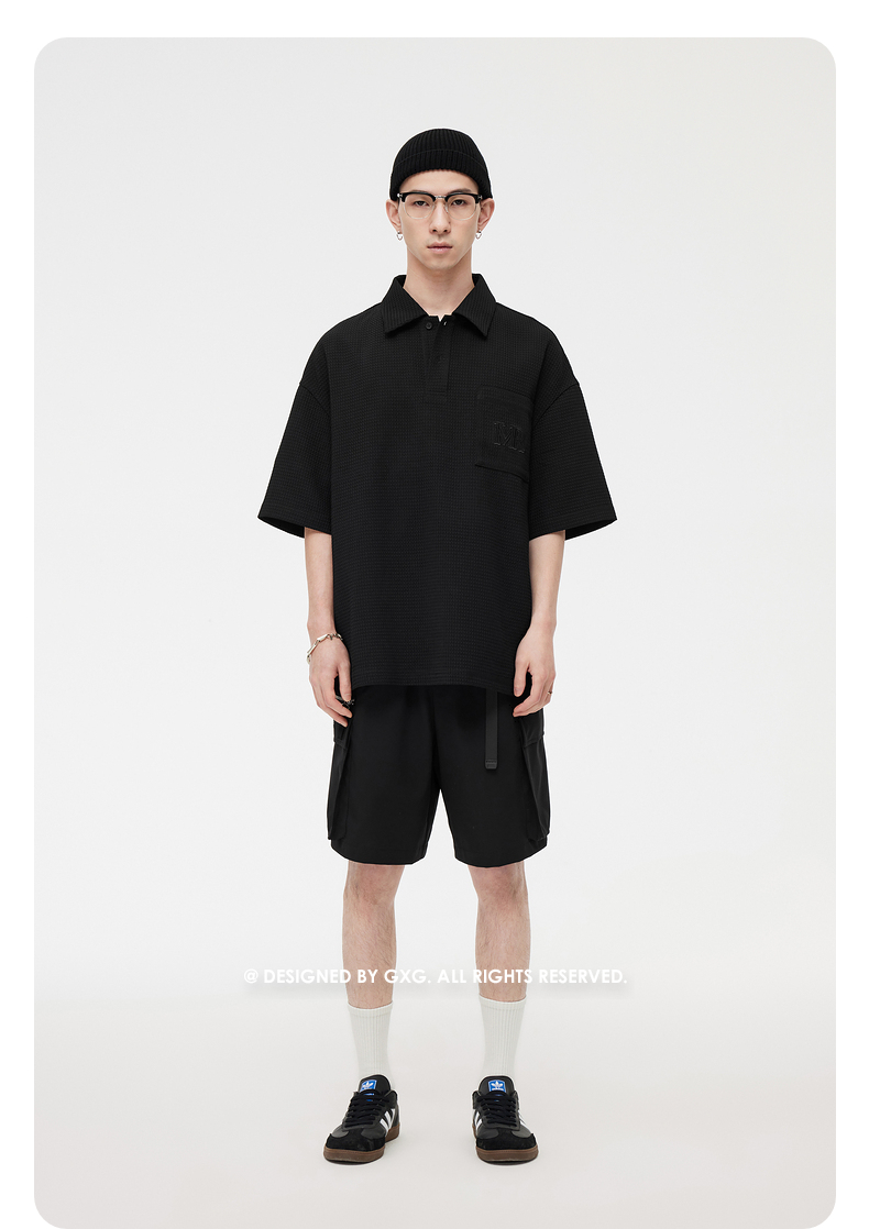 GXG男装 翻领卫衣撞色拼接肌理上衣polo领长袖内搭 2025秋季新品