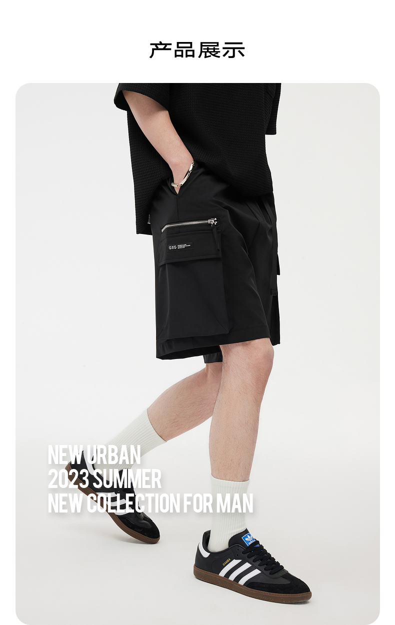 GXG男装 短裤五分裤宽松大口袋腰带印花点缀时尚 夏季热卖