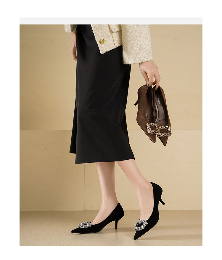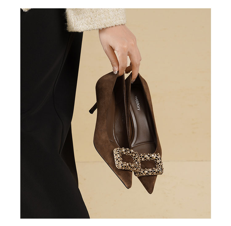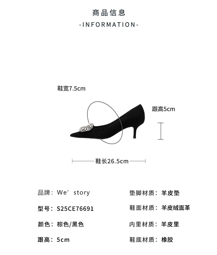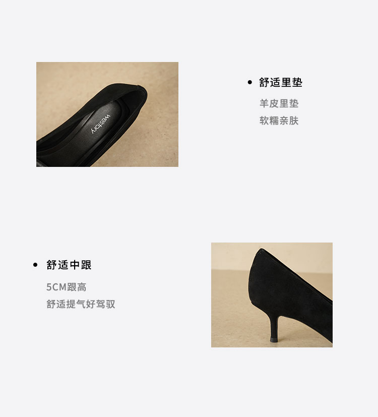 Westory2025年秋季绒面羊皮尖头中跟通勤百搭浅口单鞋76691-76771