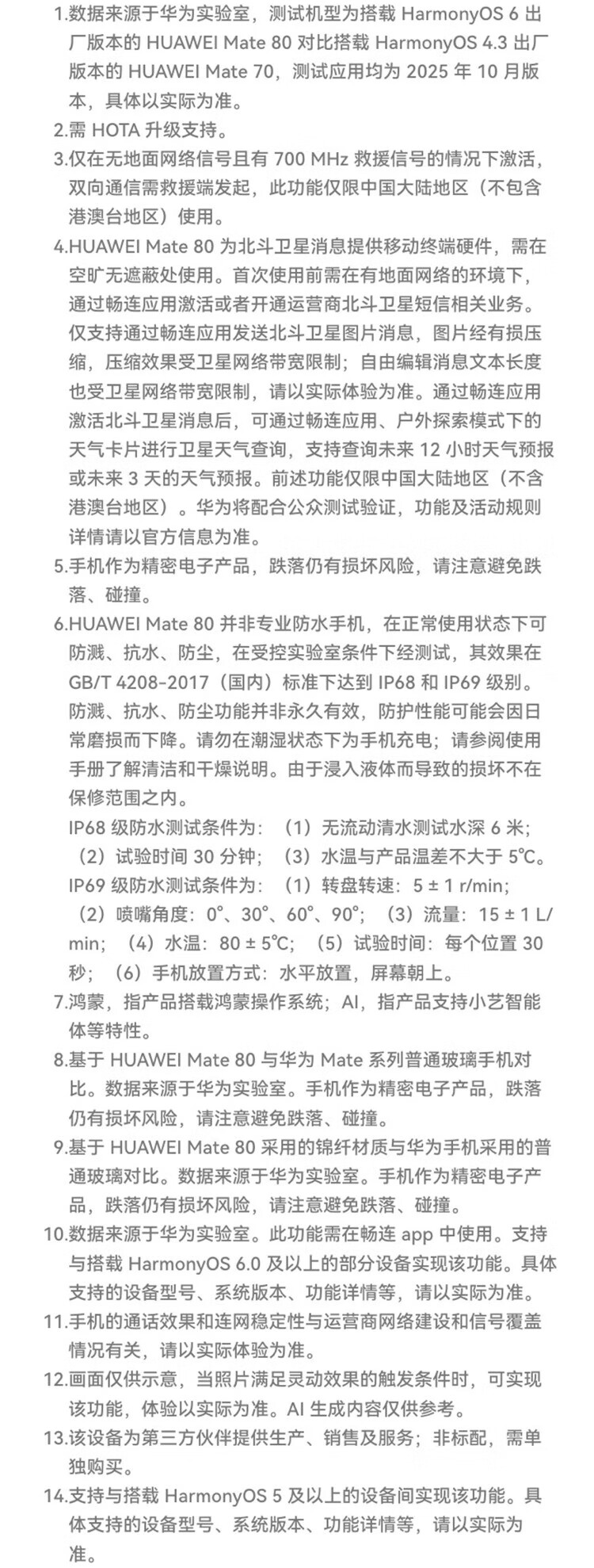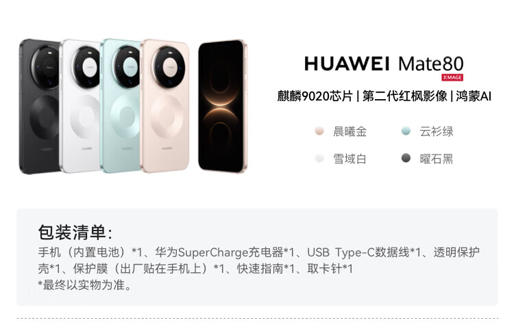 华为(HUAWEI)Mate 80 12GB+512GB 麒麟9020 第二代红枫影像鸿蒙AI 华为直屏鸿蒙手机
