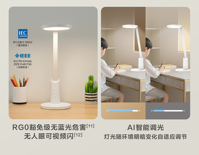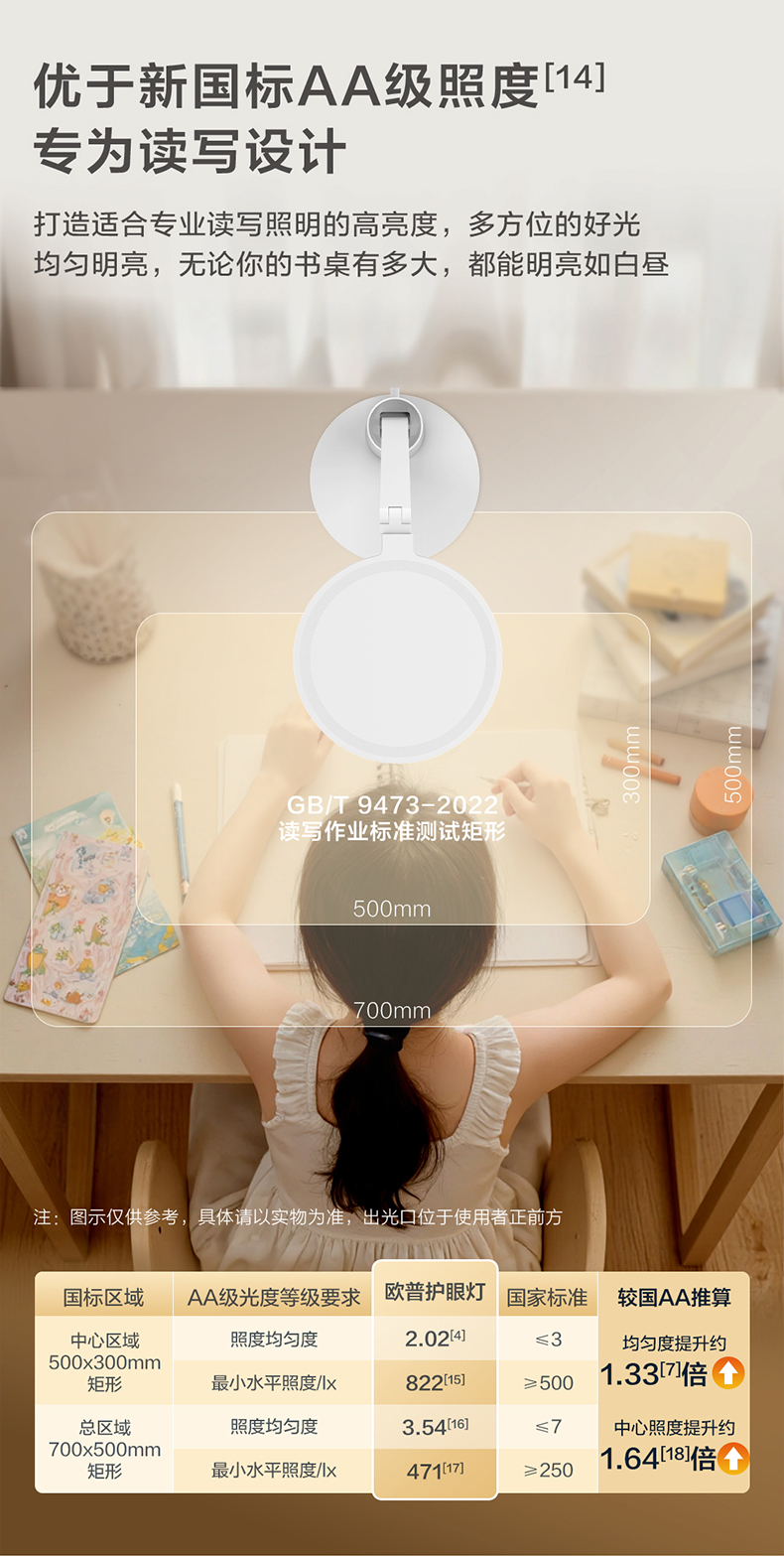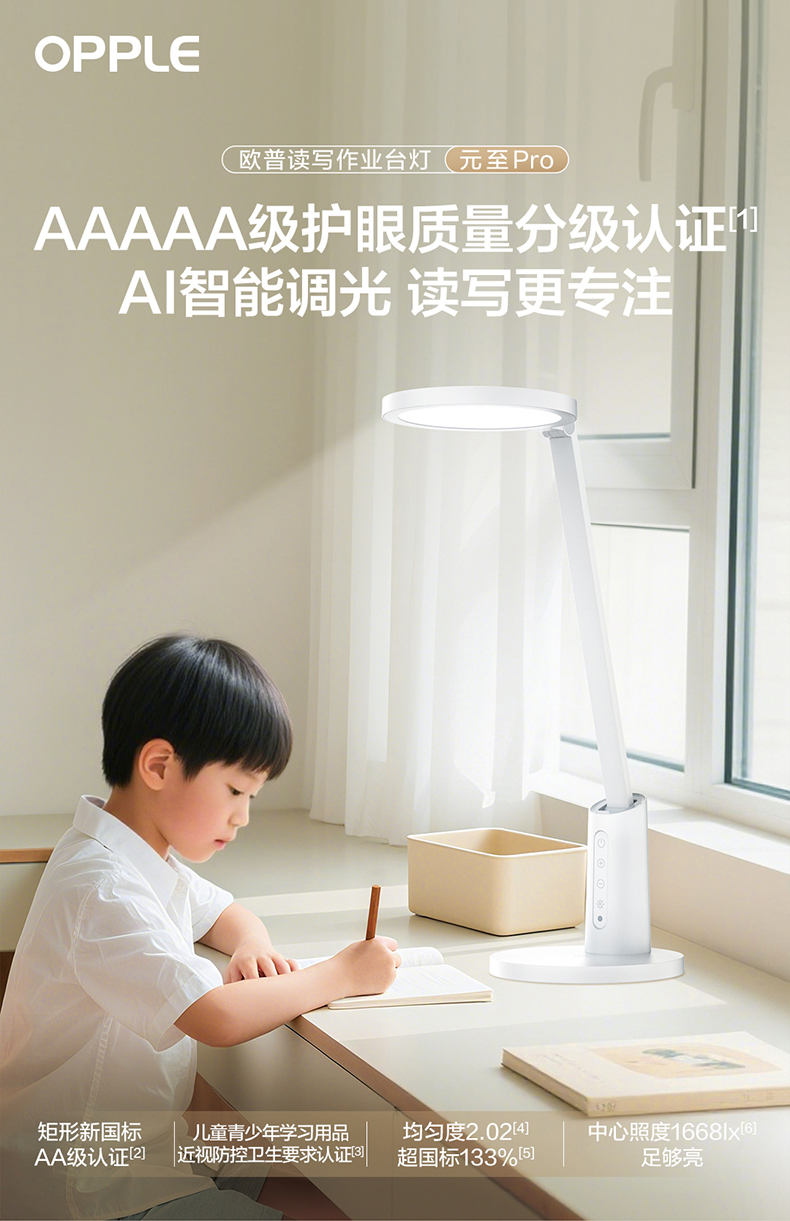 欧普(OPPLE)AAAAA级儿童书桌学生阅读学生学习专用触摸开关护眼台灯圆形元至